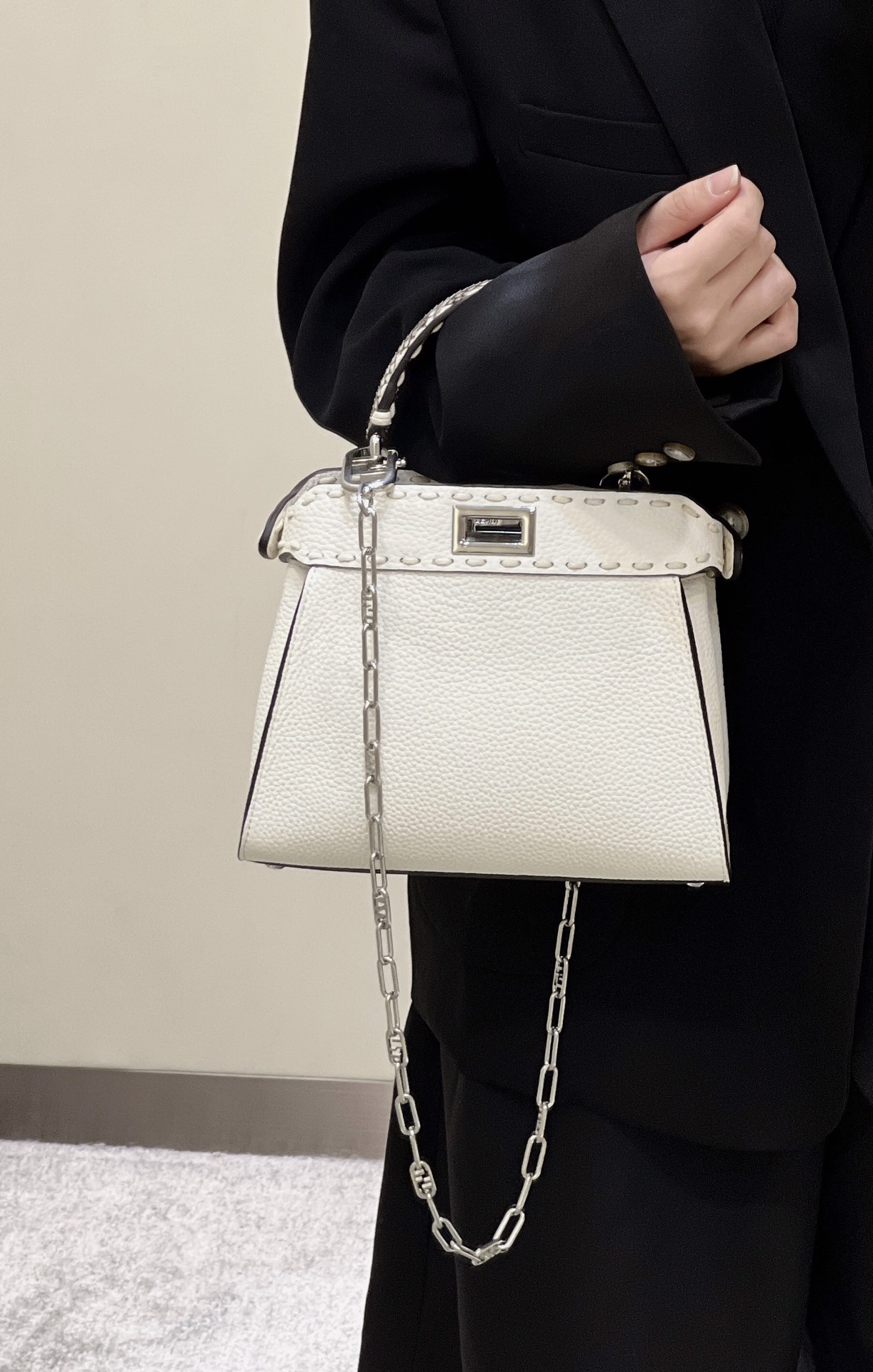 Fendi Peekaboo ISeeU Small Camellia Selleria bag with oversized topstitching