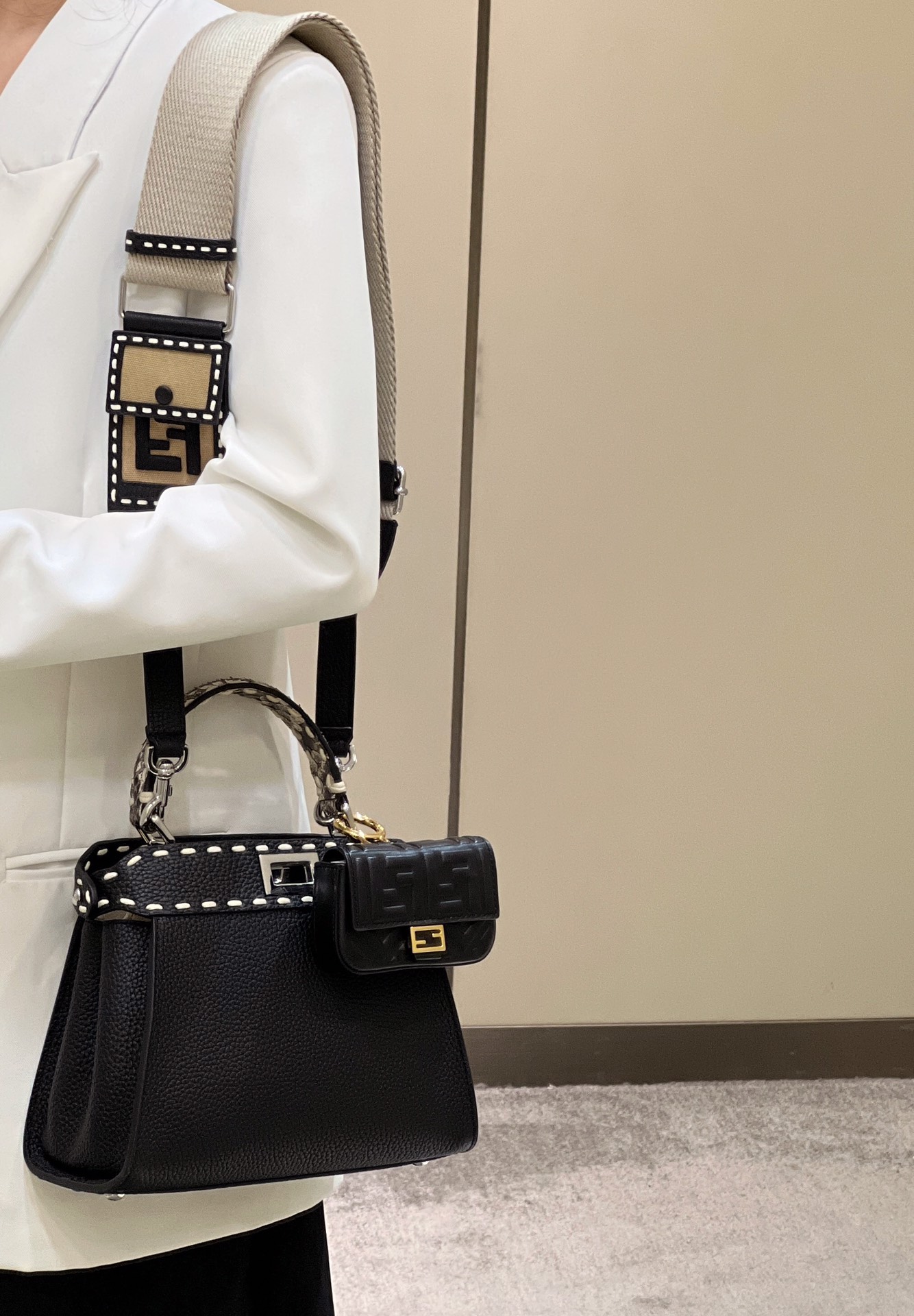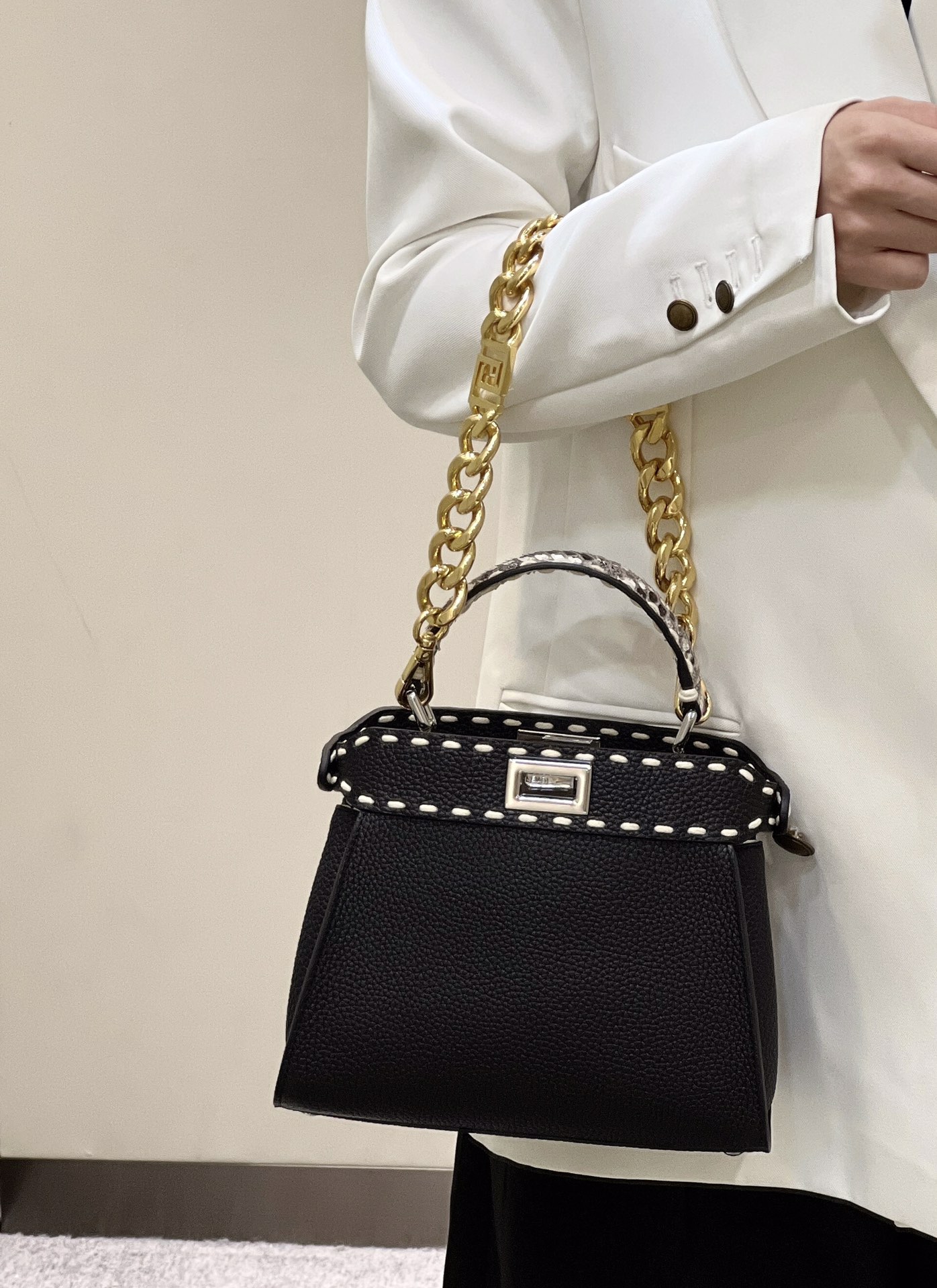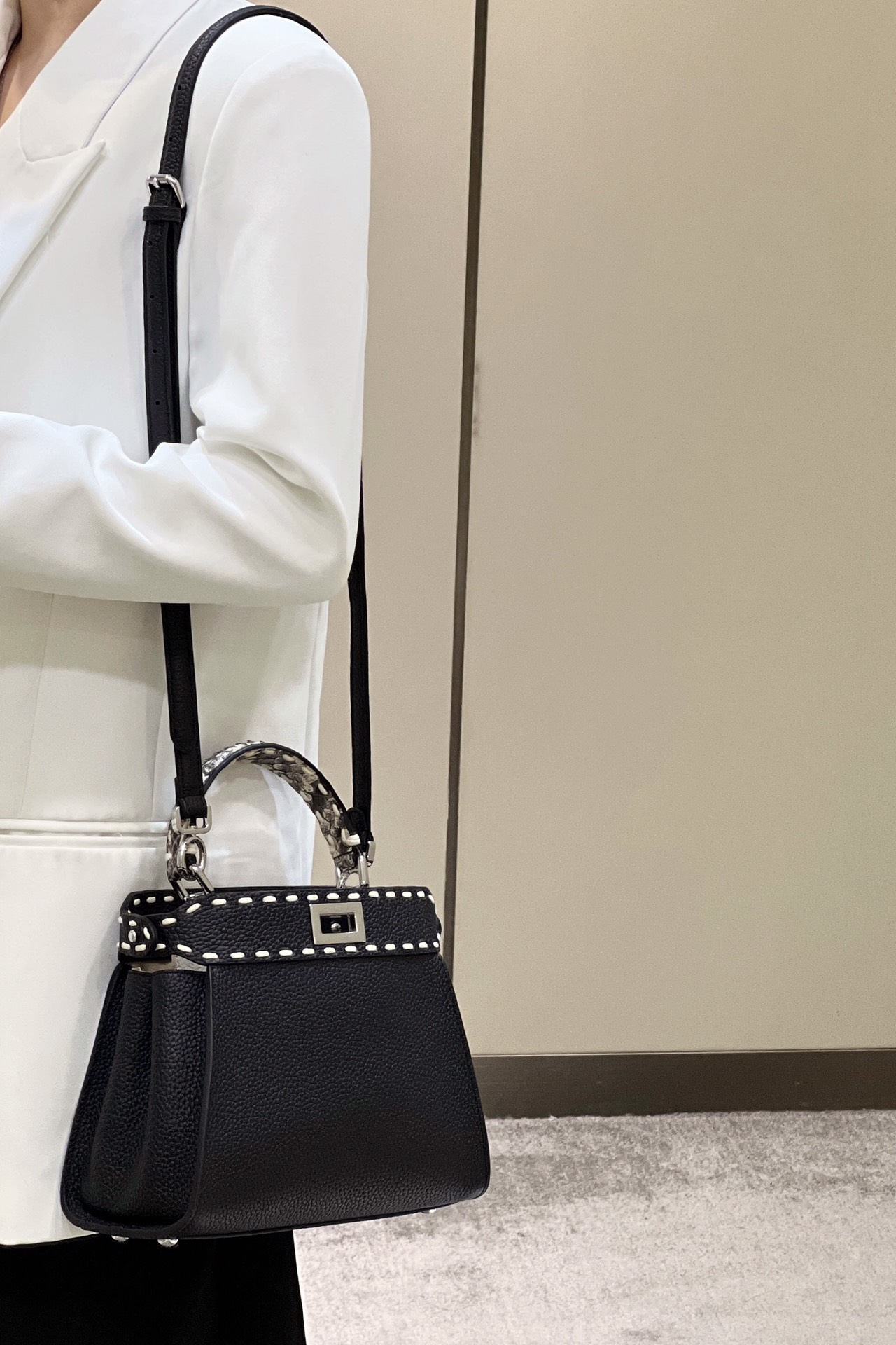 Fendi Peekaboo ISeeU Small Camellia Selleria bag with oversized topstitching black