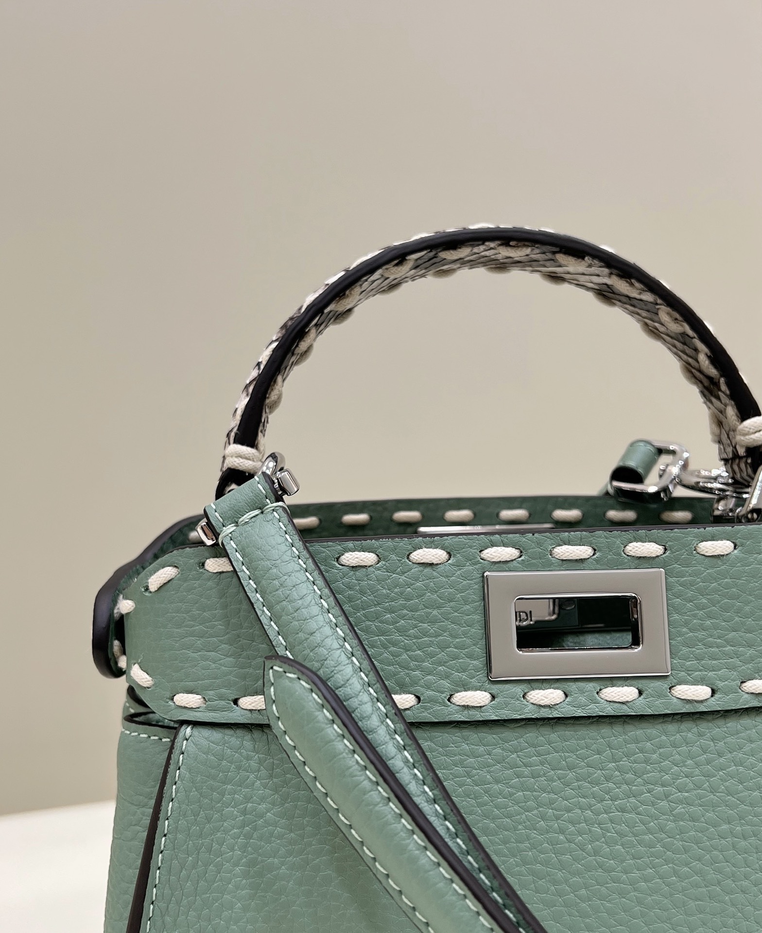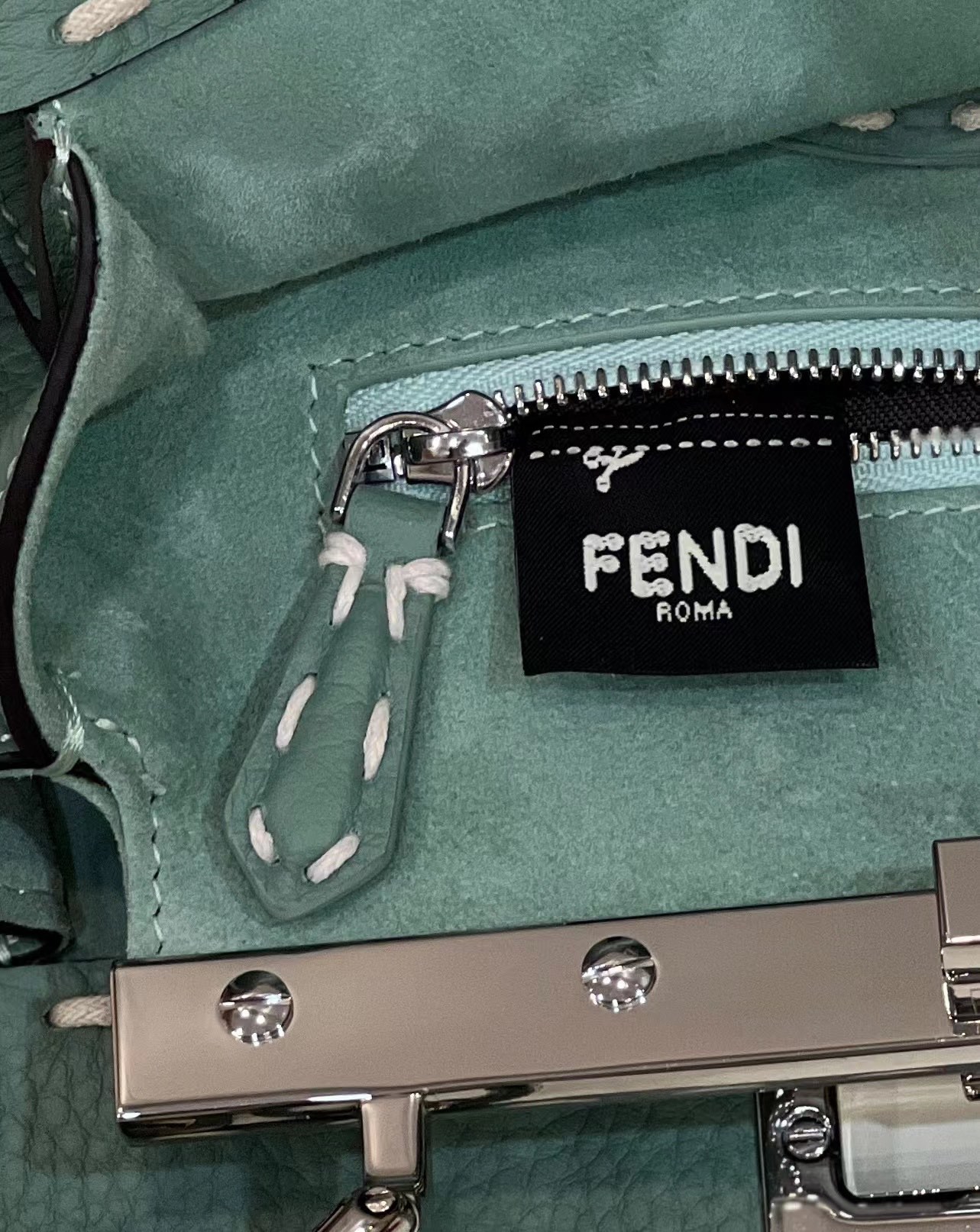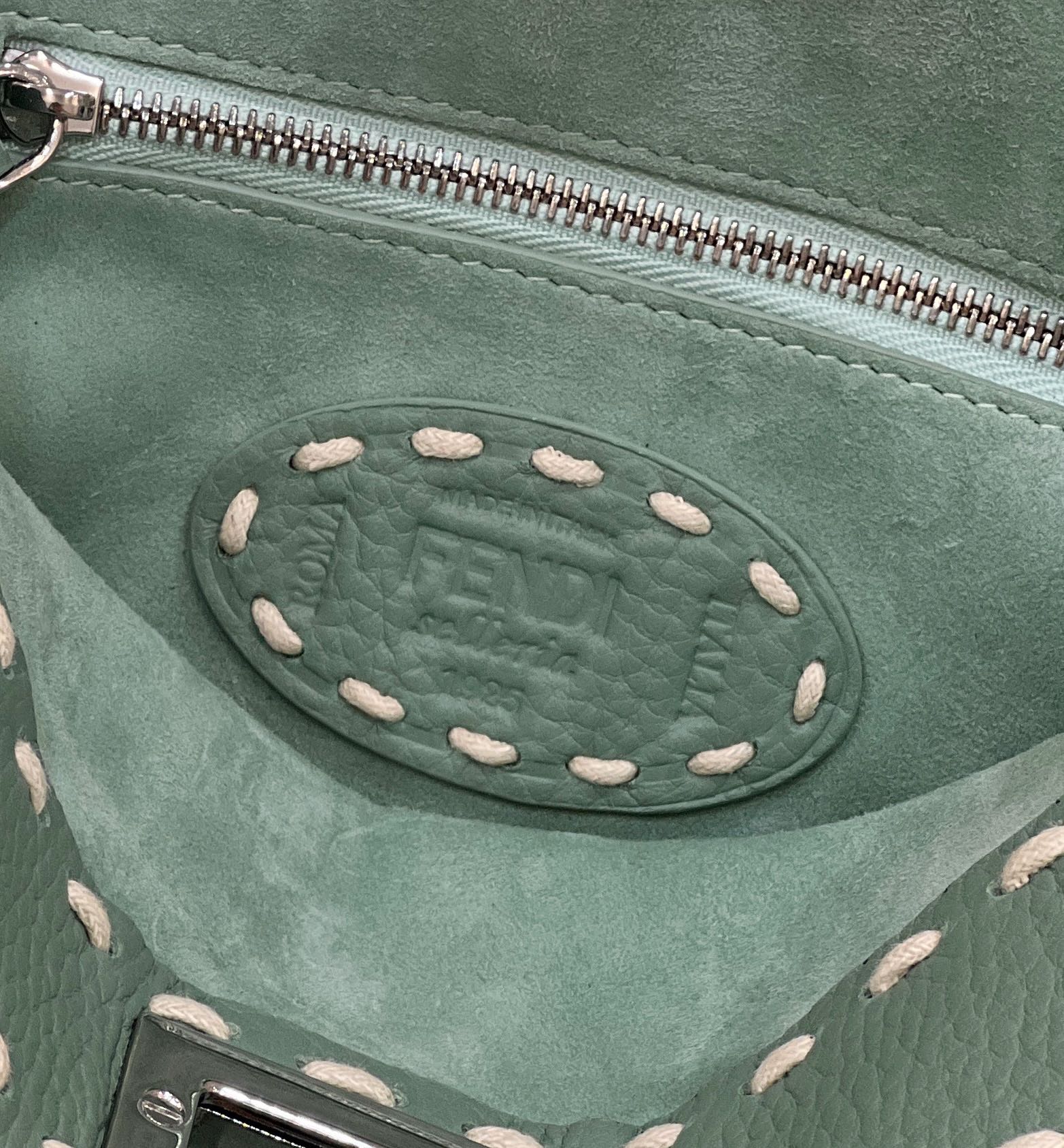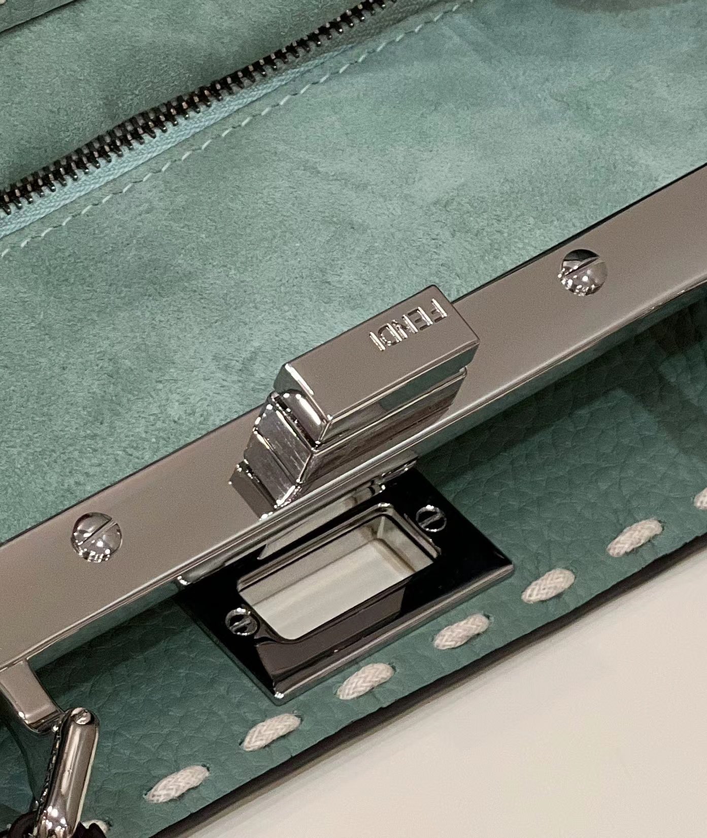 • Fendi Peekaboo ISeeU Small Camellia Selleria bag with oversized topstitching haze blue