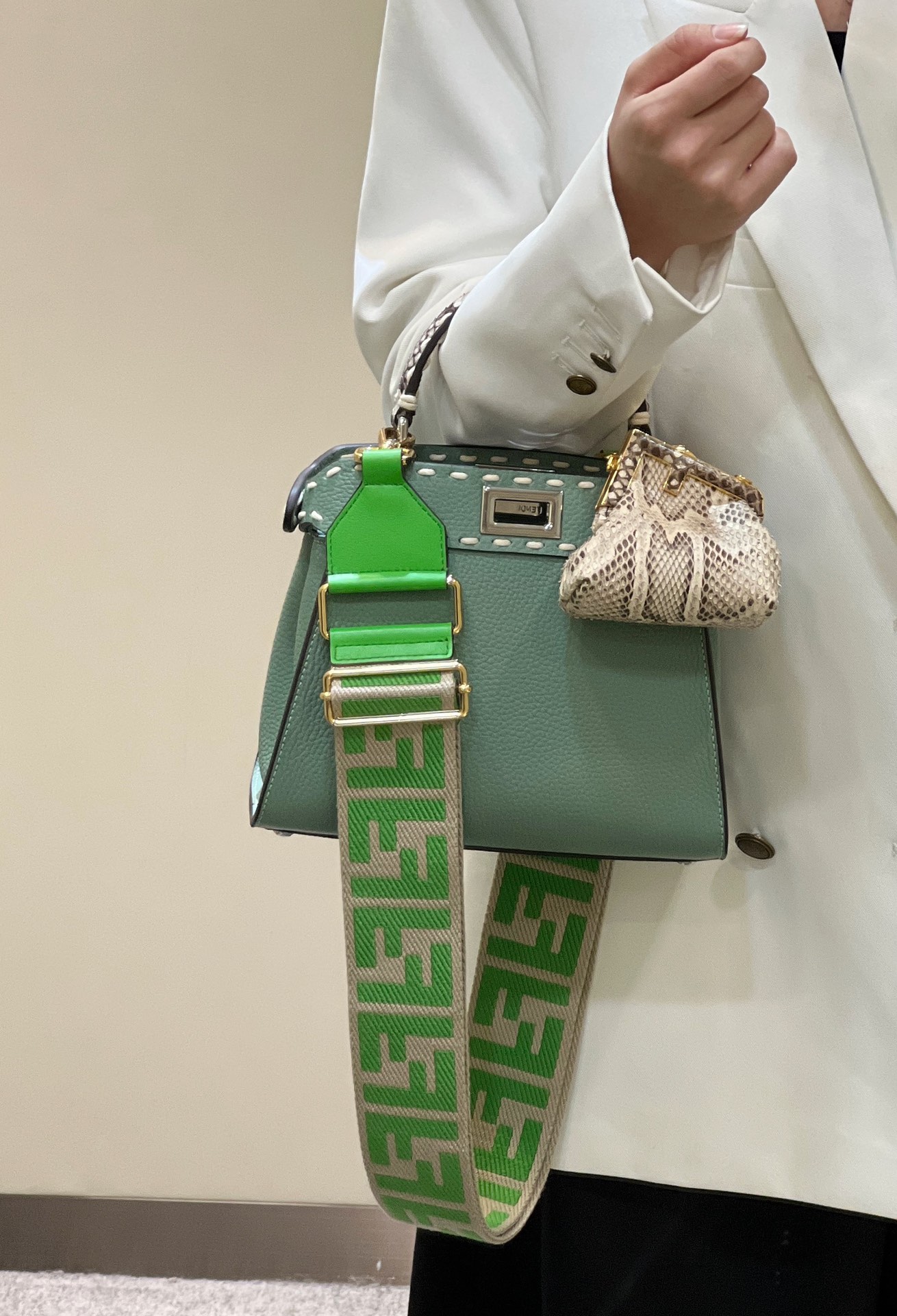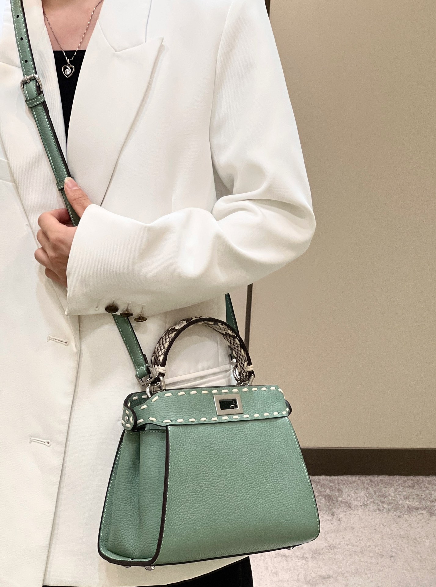 A super suitable commuter bag, Peekaboo, with hand-stitched exterior seams, made of genuine leather and snake skin wrist strap for a unique touch. It exudes an elegant and timeless sense of style when worn, showcasing a refined sense of sophistication.
