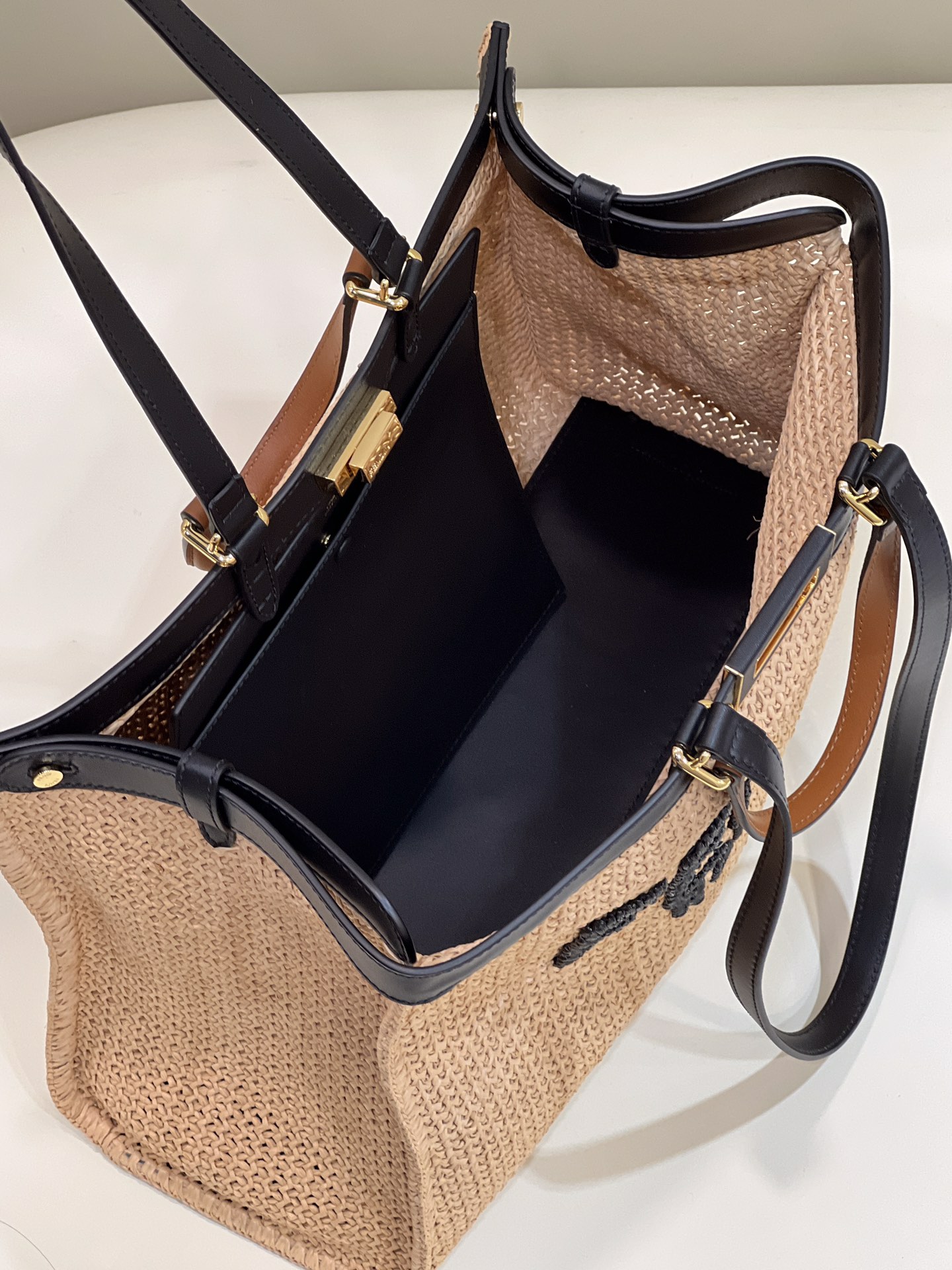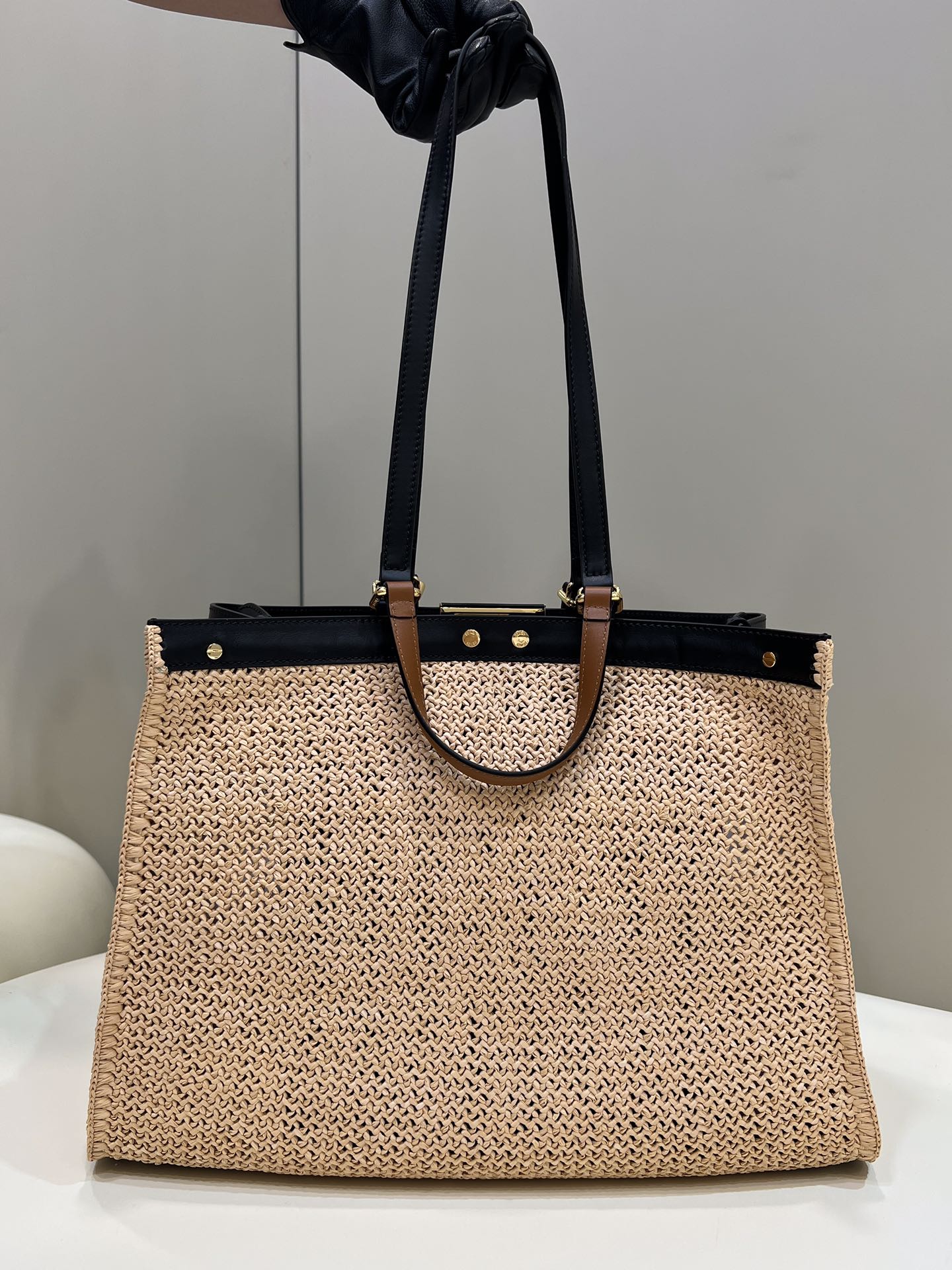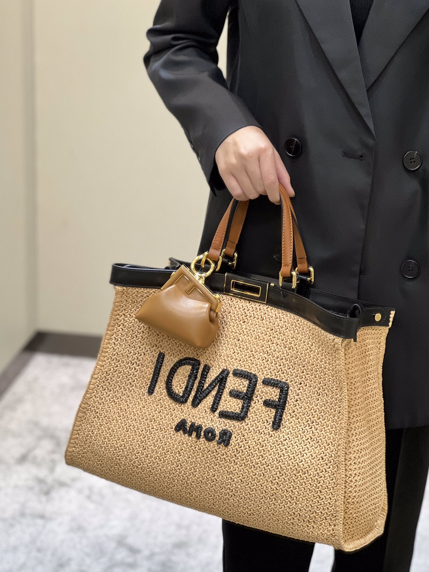 The highly anticipated PeekabooX-Tote raffia shopping bag is finally finished and available for sale. It is crafted with exquisite hand weaving techniques, can be carried by hand or worn on the shoulder, and does not have a lining, making it super lightweight and convenient for travel.