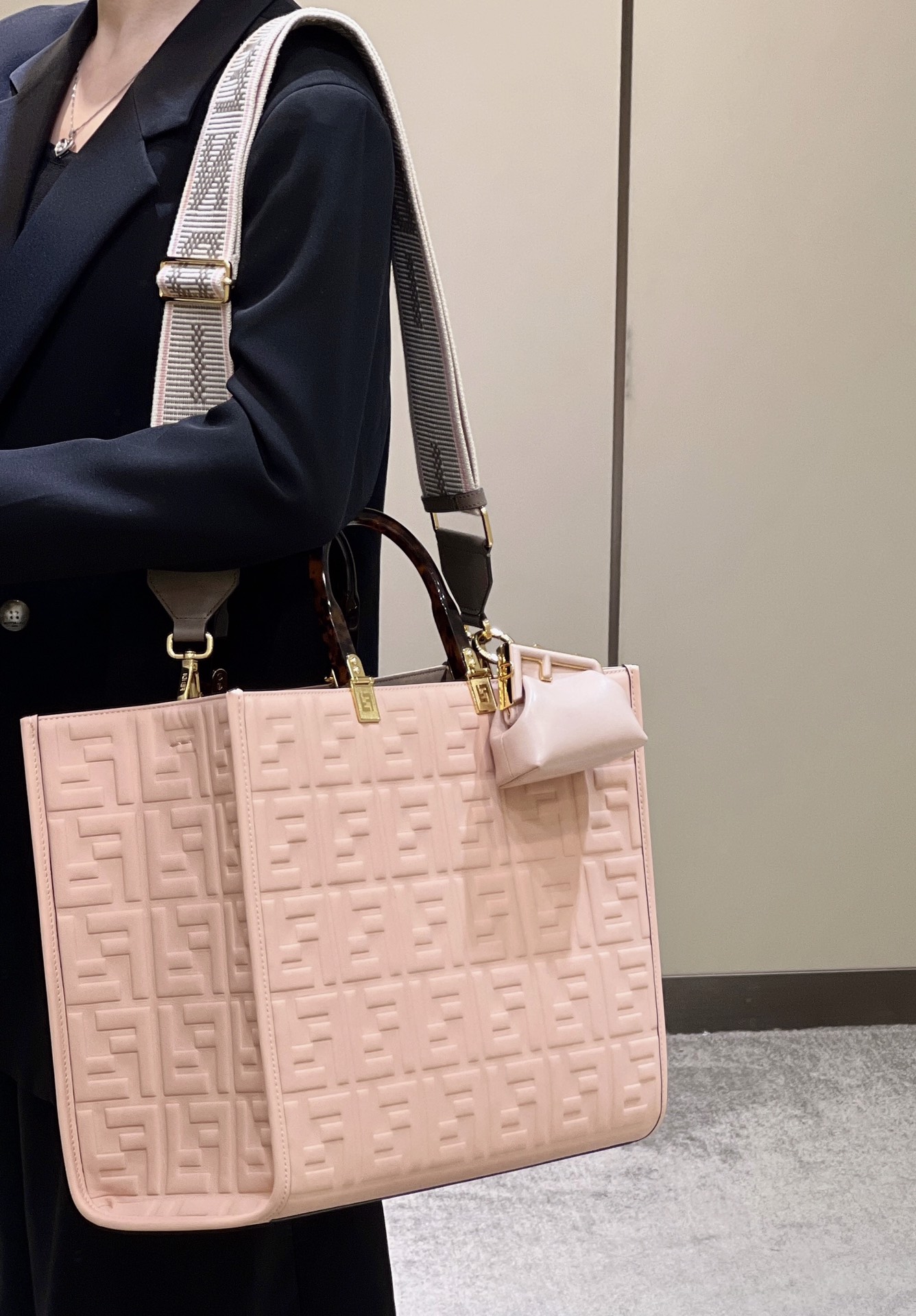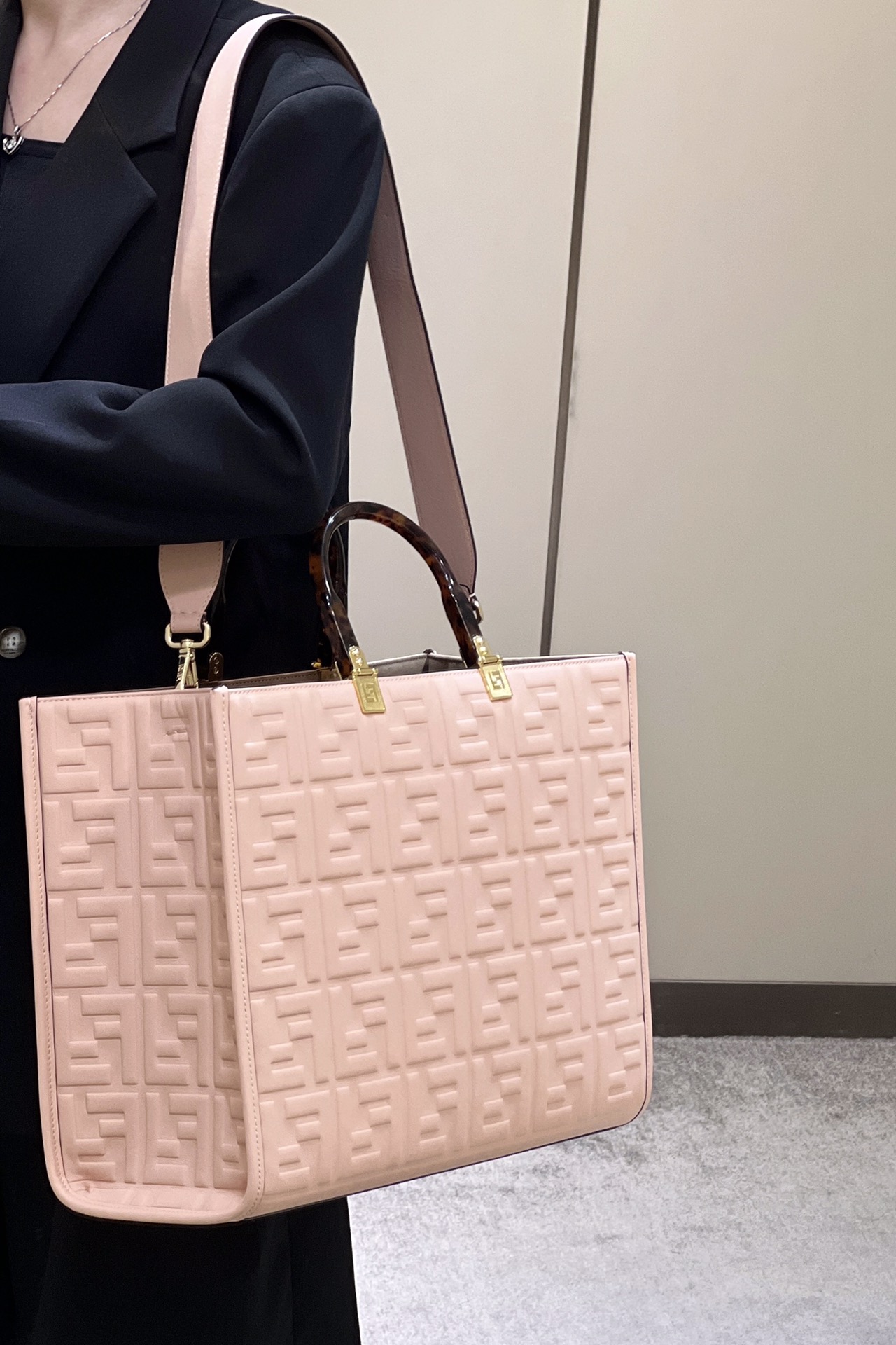 Fendi Sunshine Medium Pink leather shopper