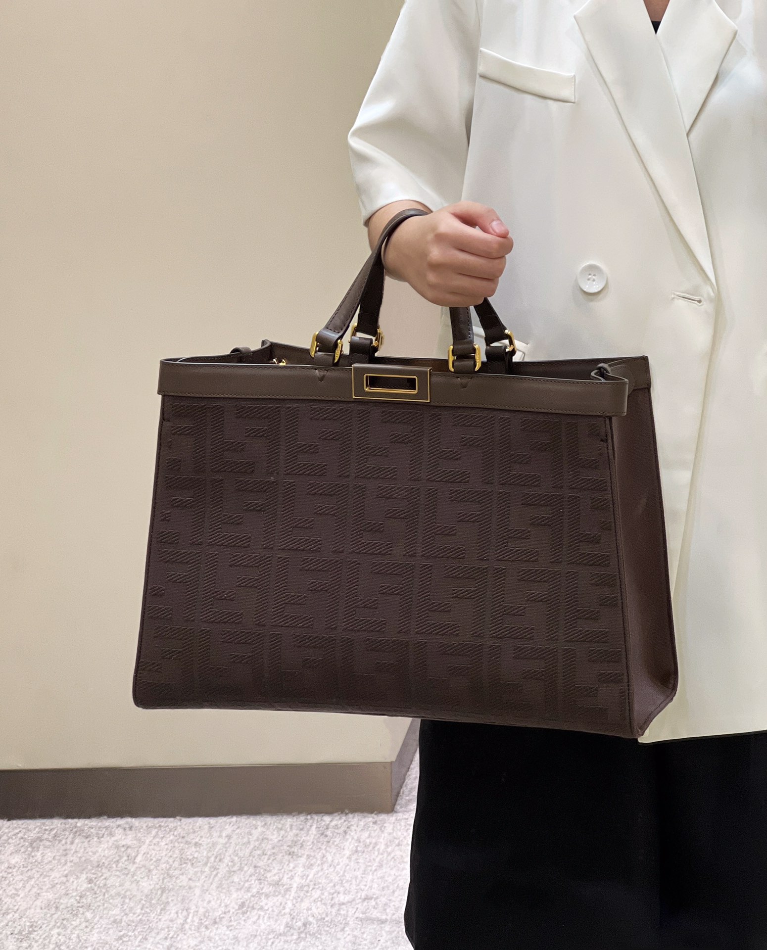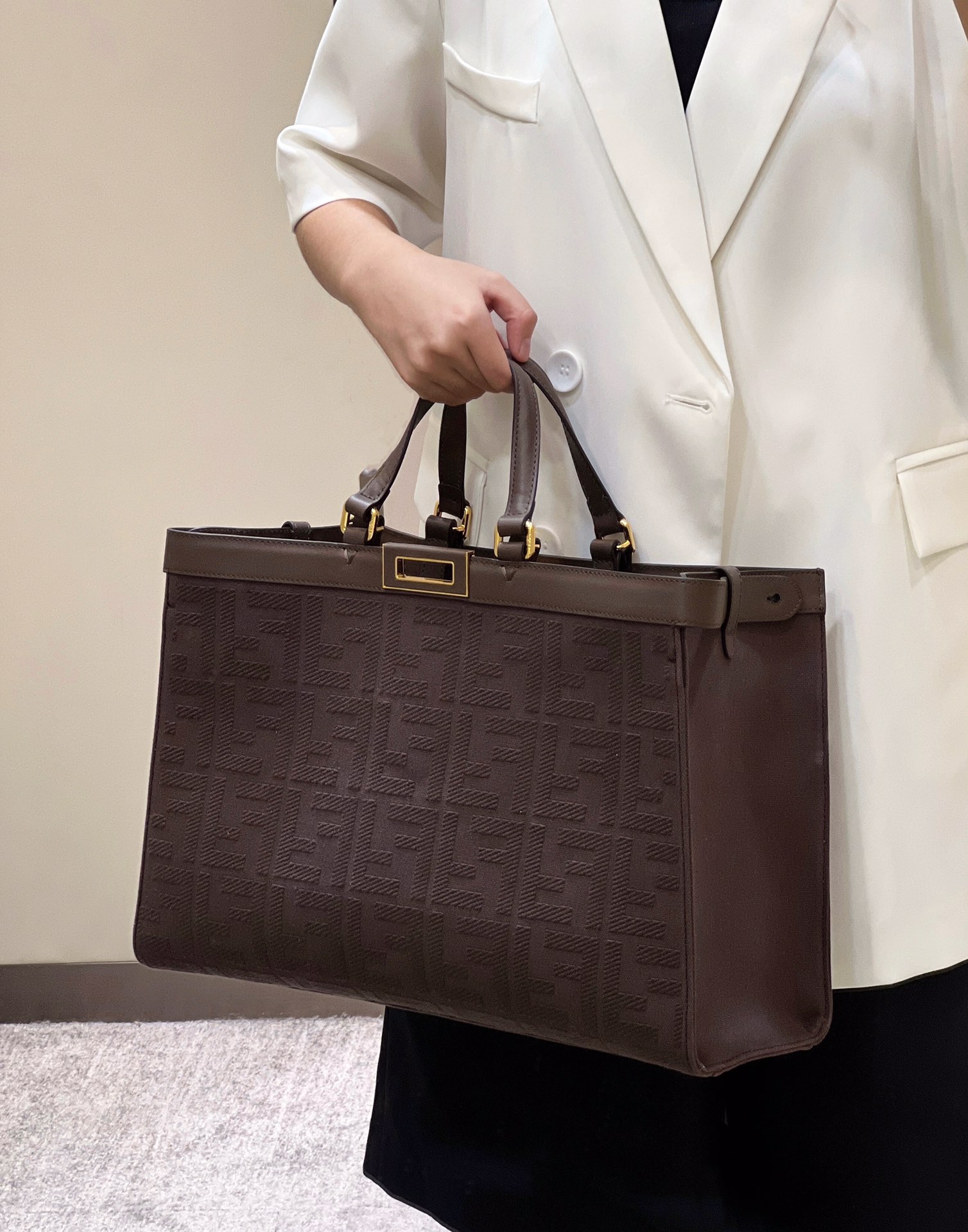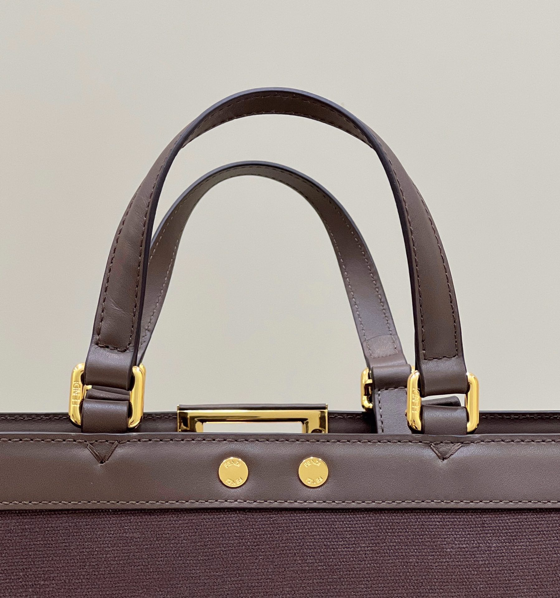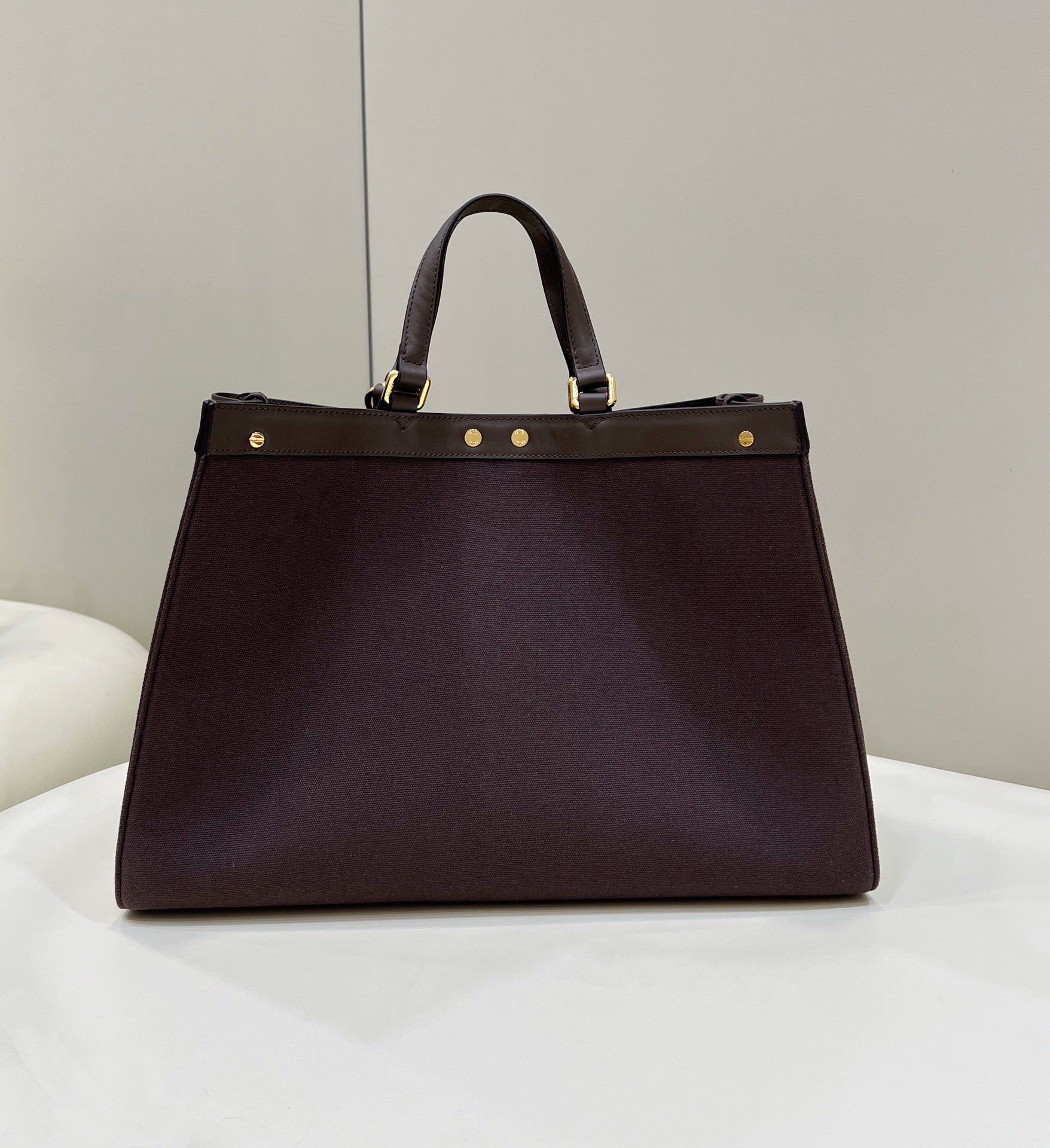 • Fendi X-Tote Dark brown canvas shopper with FF embroidery