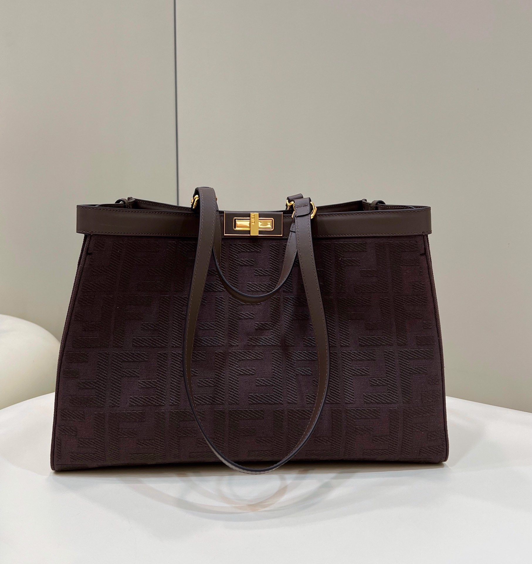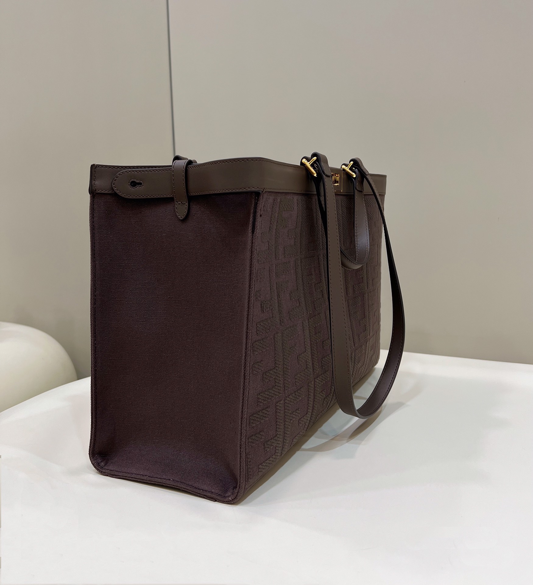 Fendi X-Tote Dark brown canvas shopper with FF embroidery