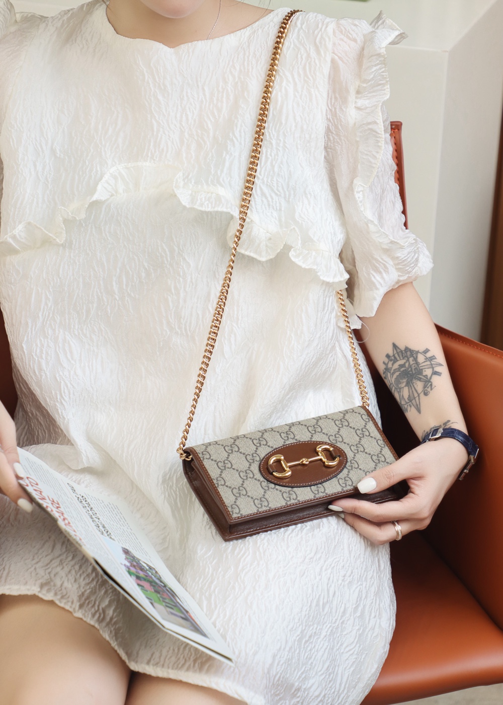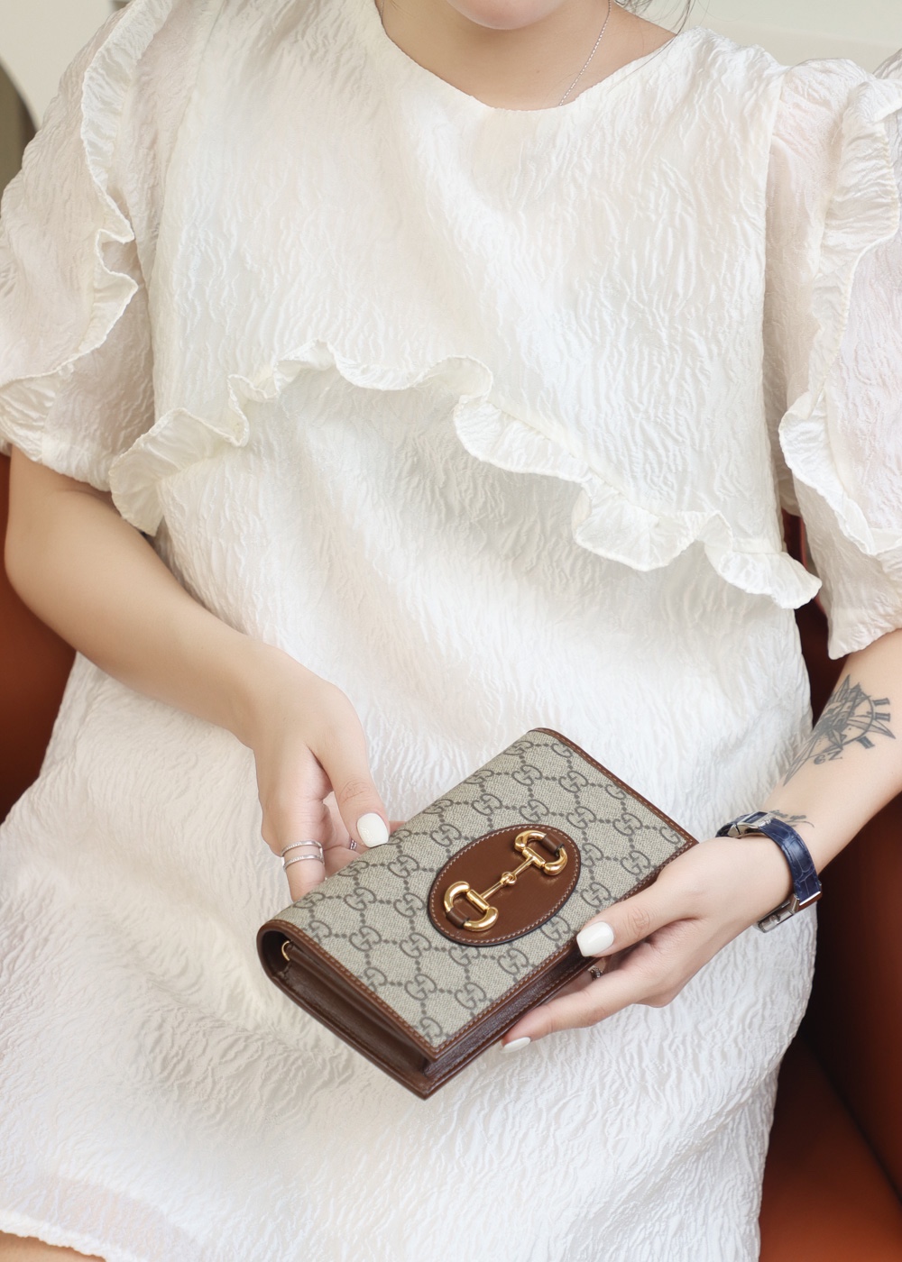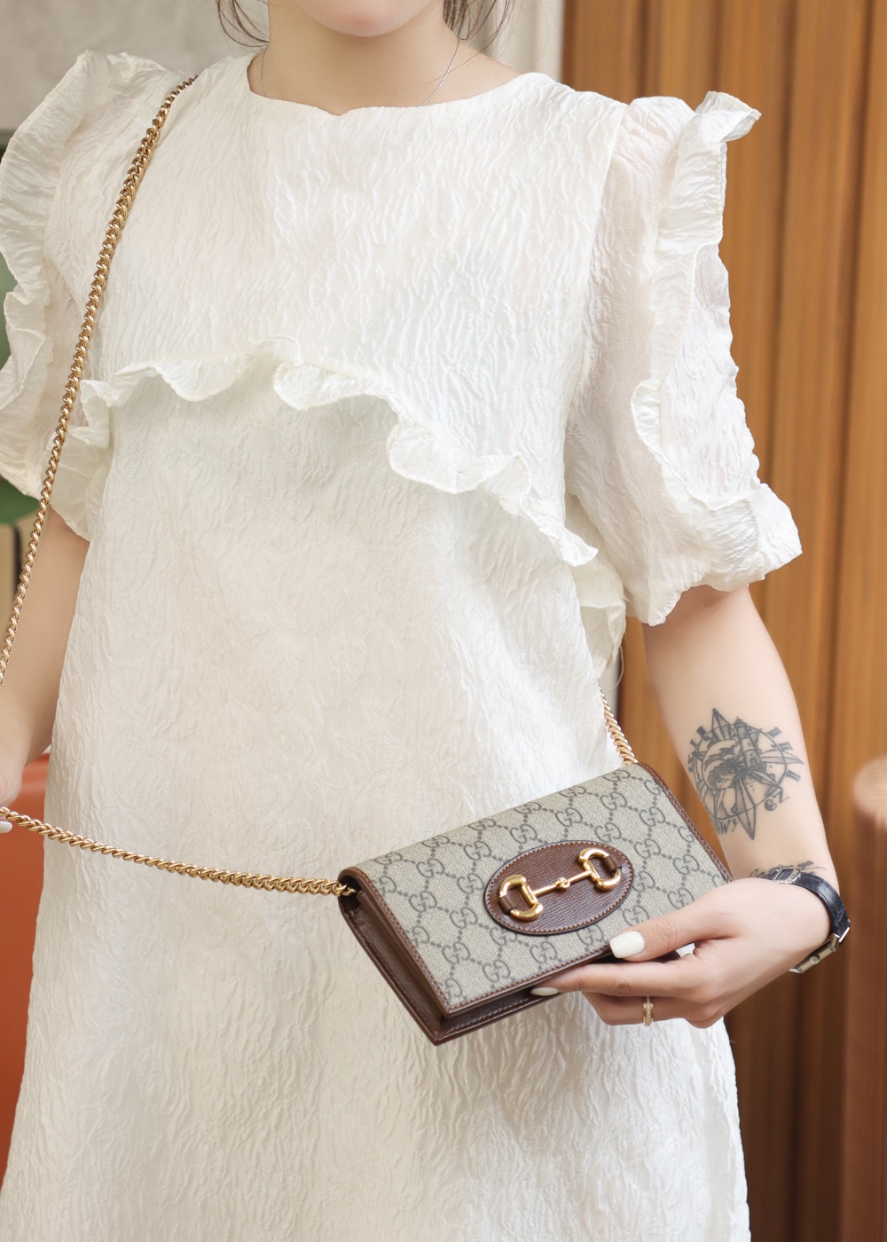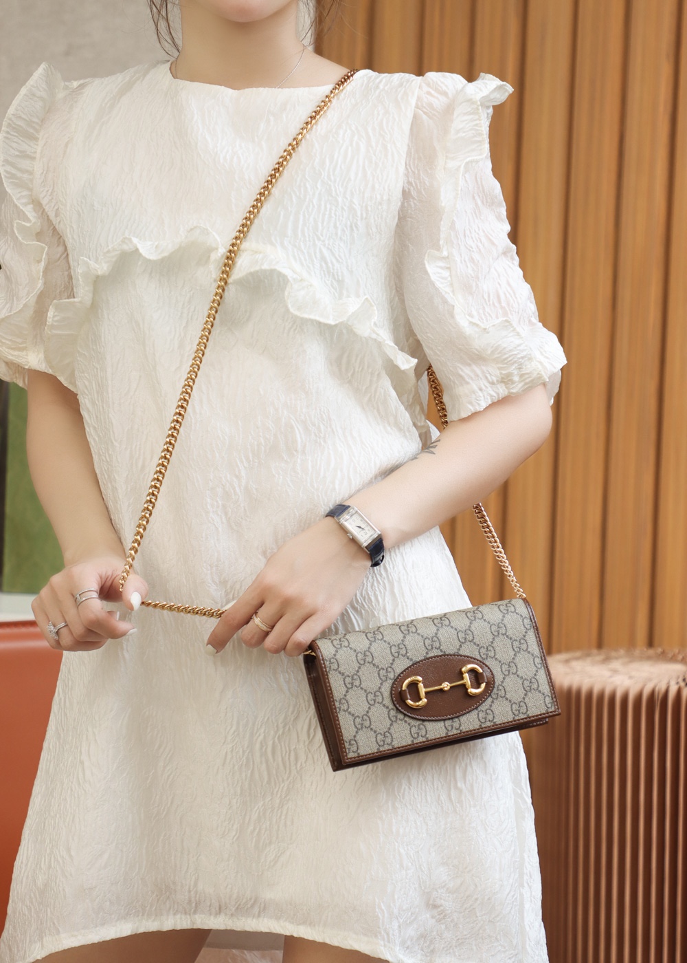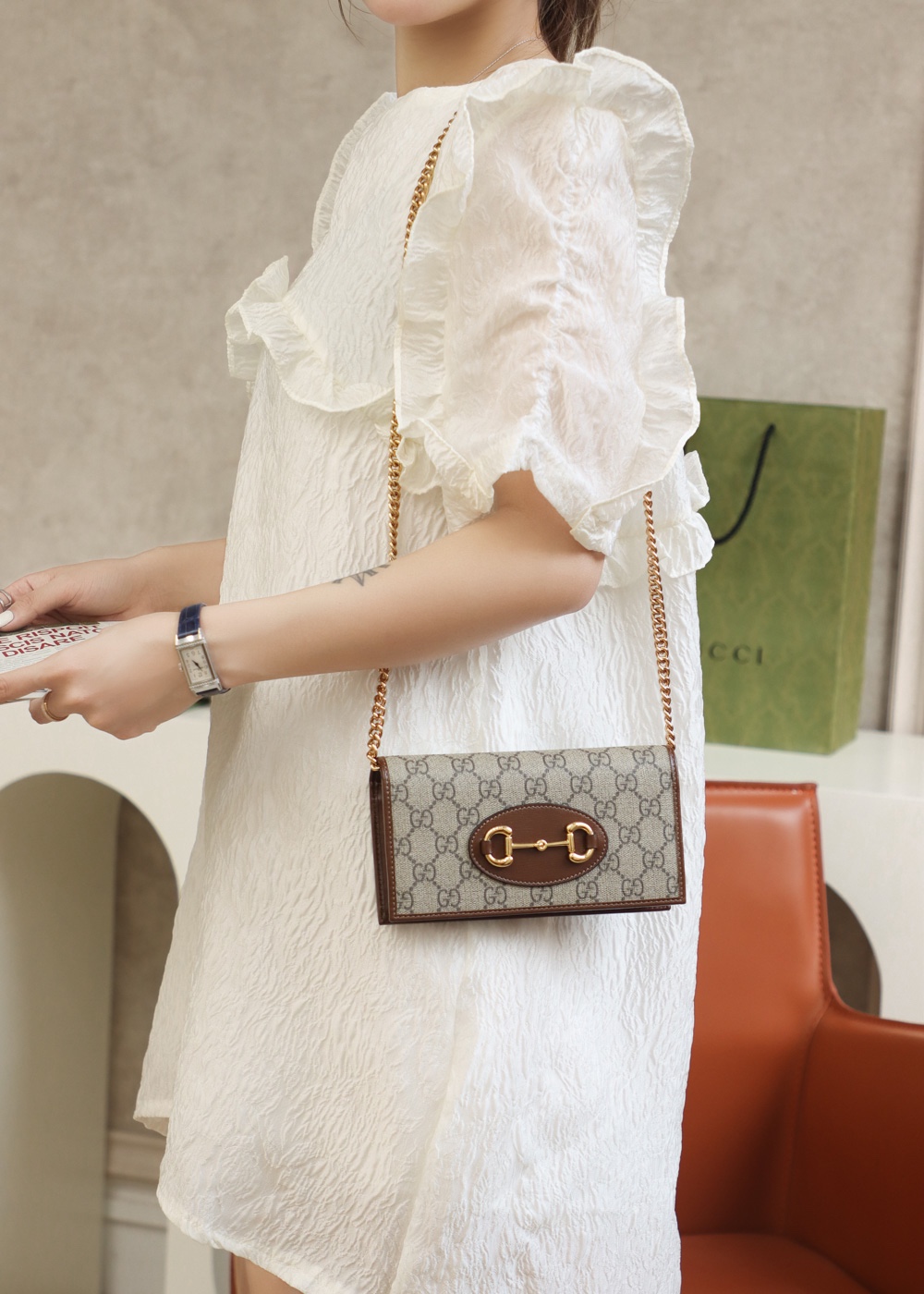 • GUCCI 1955 Horsebit wallet with chain GG Supreme