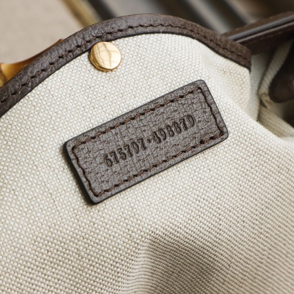 • Gucci Bamboo 1947 jumbo GG small top handle bag camel and ebony