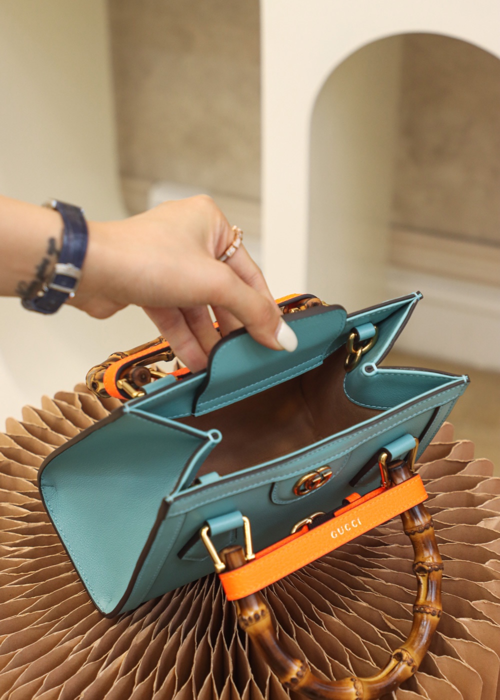 • Gucci Diana Mini tote bag light blue leather