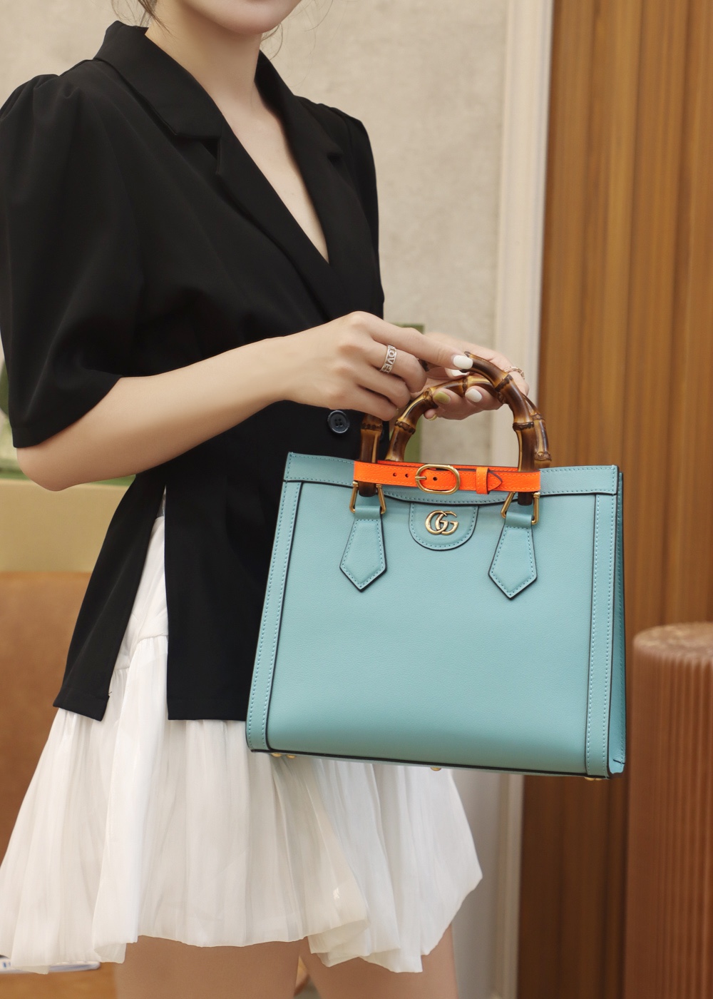 • Gucci Diana small tote bag light blue leather