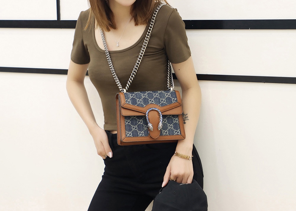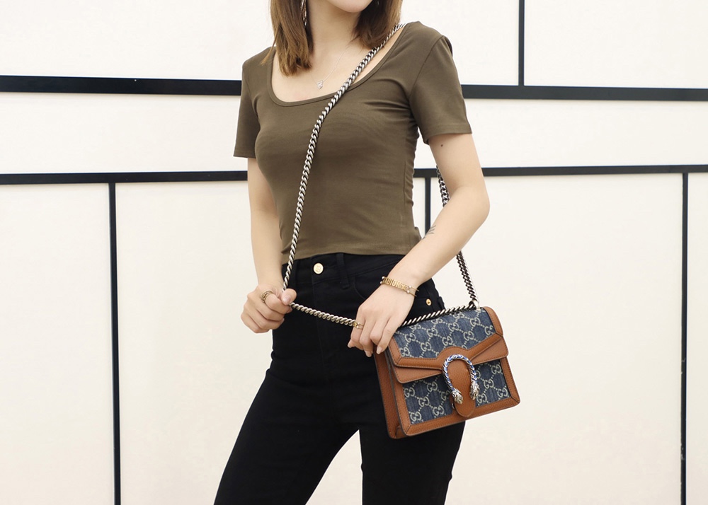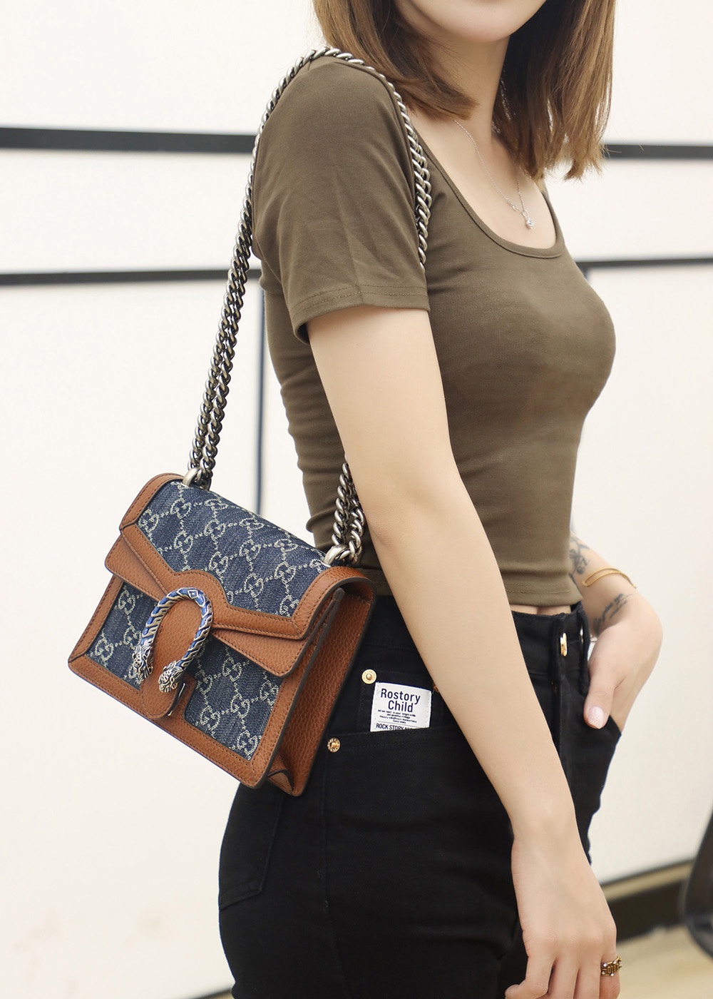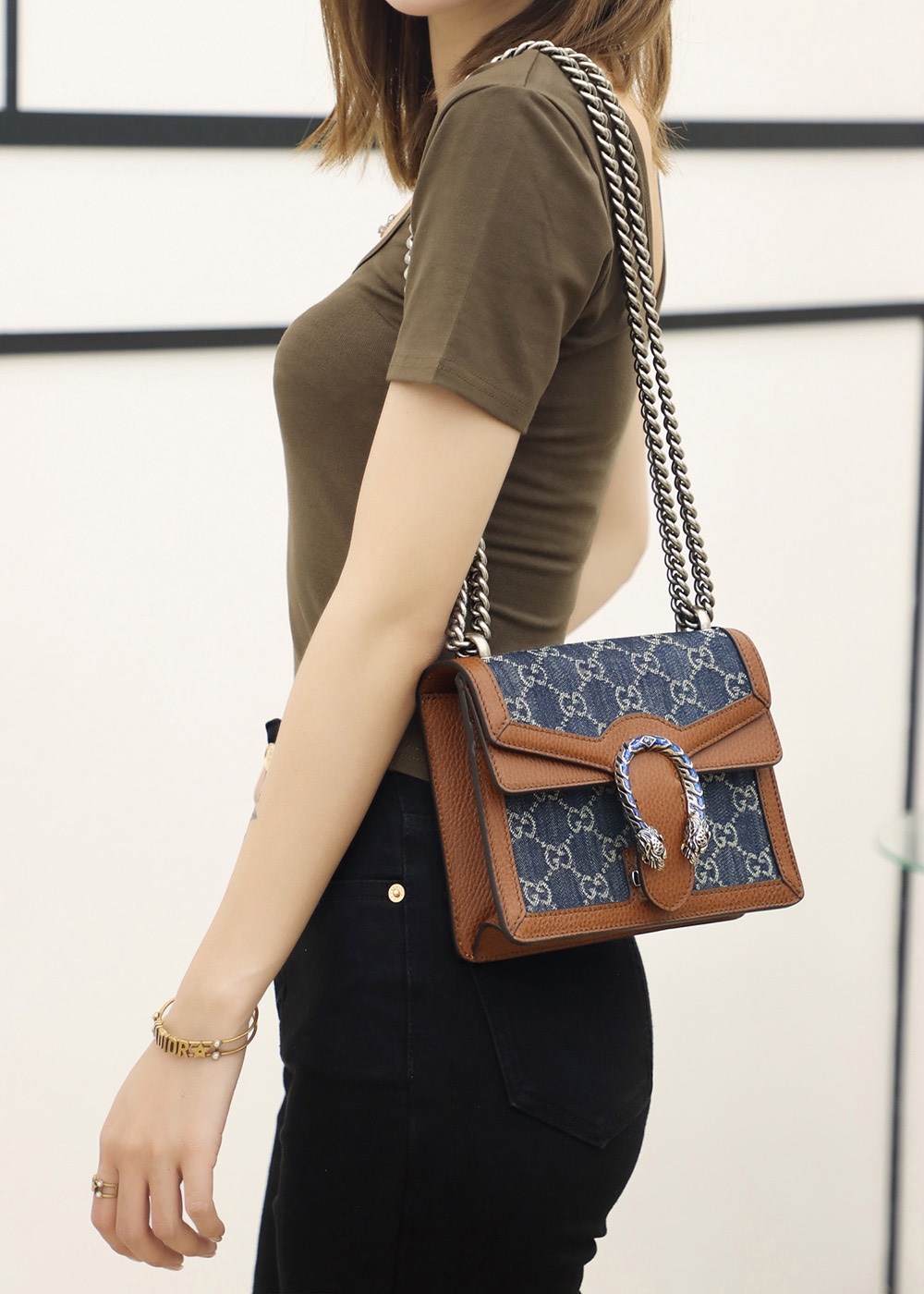 • GUCCI GG Denim Dionysus small Shoulder Bag In Nero