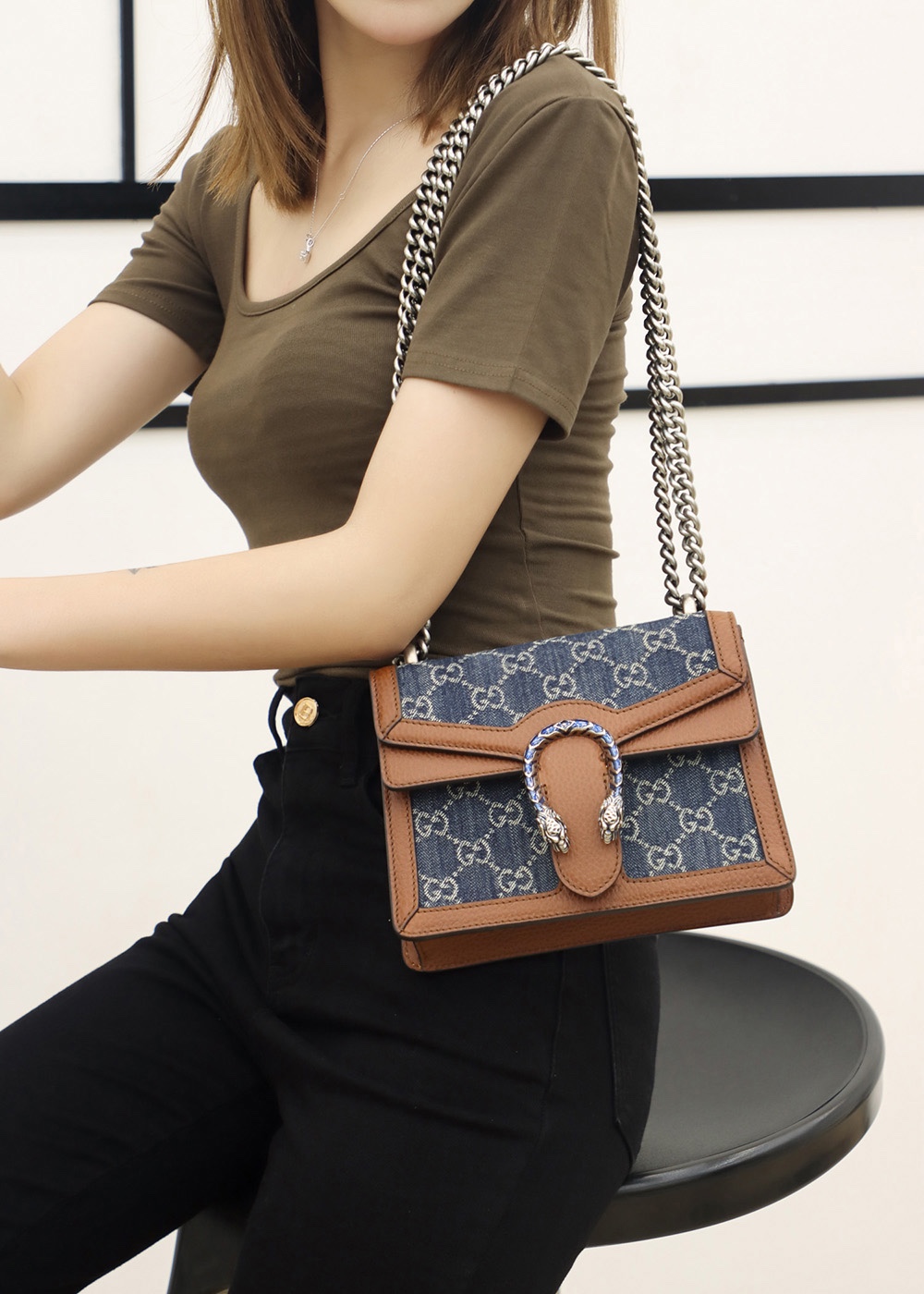 GUCCI GG Denim Dionysus small Shoulder Bag In Nero