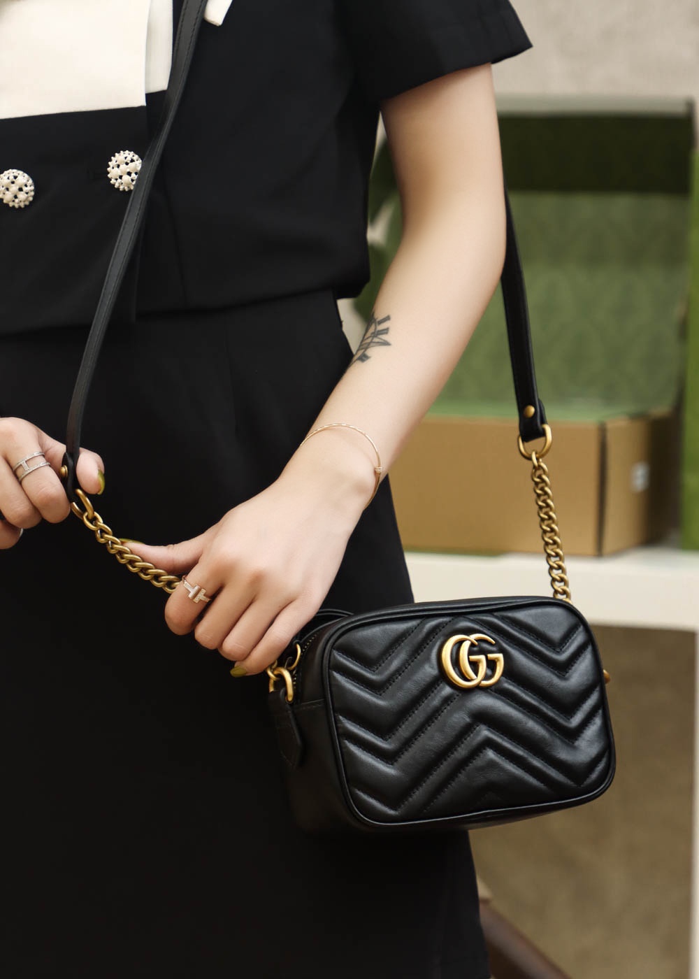 • Gucci GG Marmont small shoulder bag Black leather