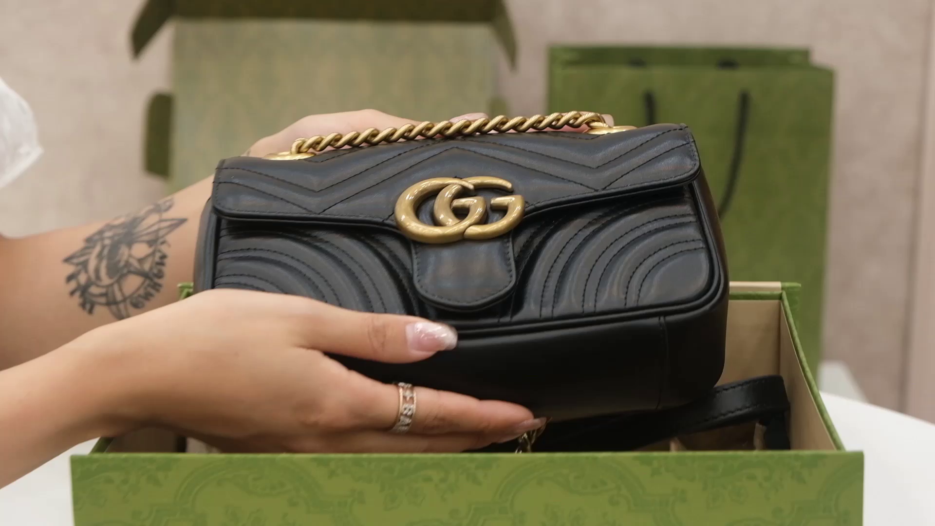 • Gucci GG Marmont small shoulder bag Black leather