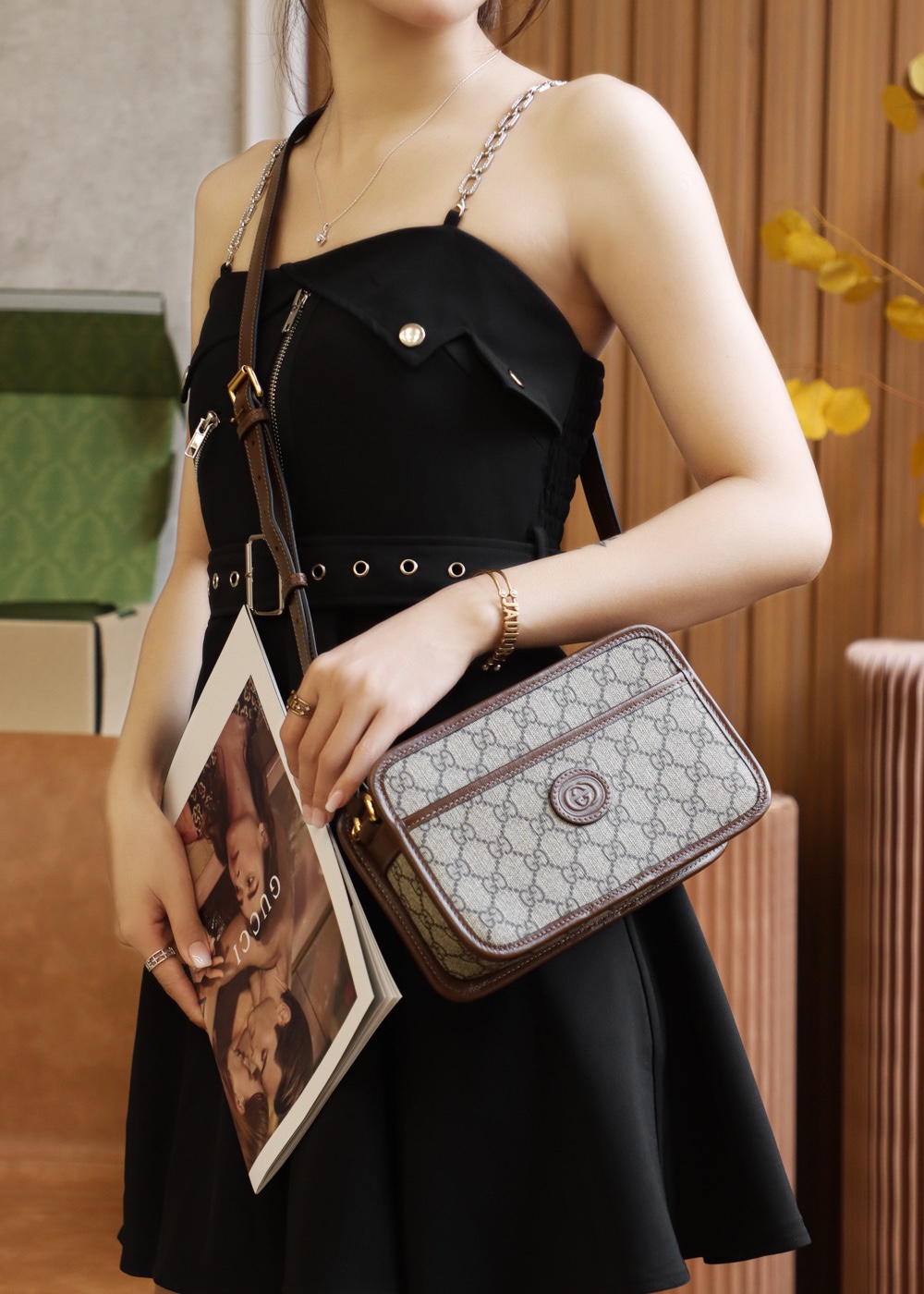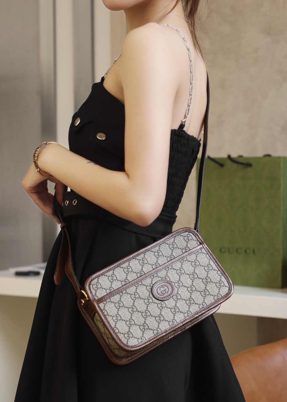 GUCCI GG Retro leather-trimmed printed coated-canvas camera bag