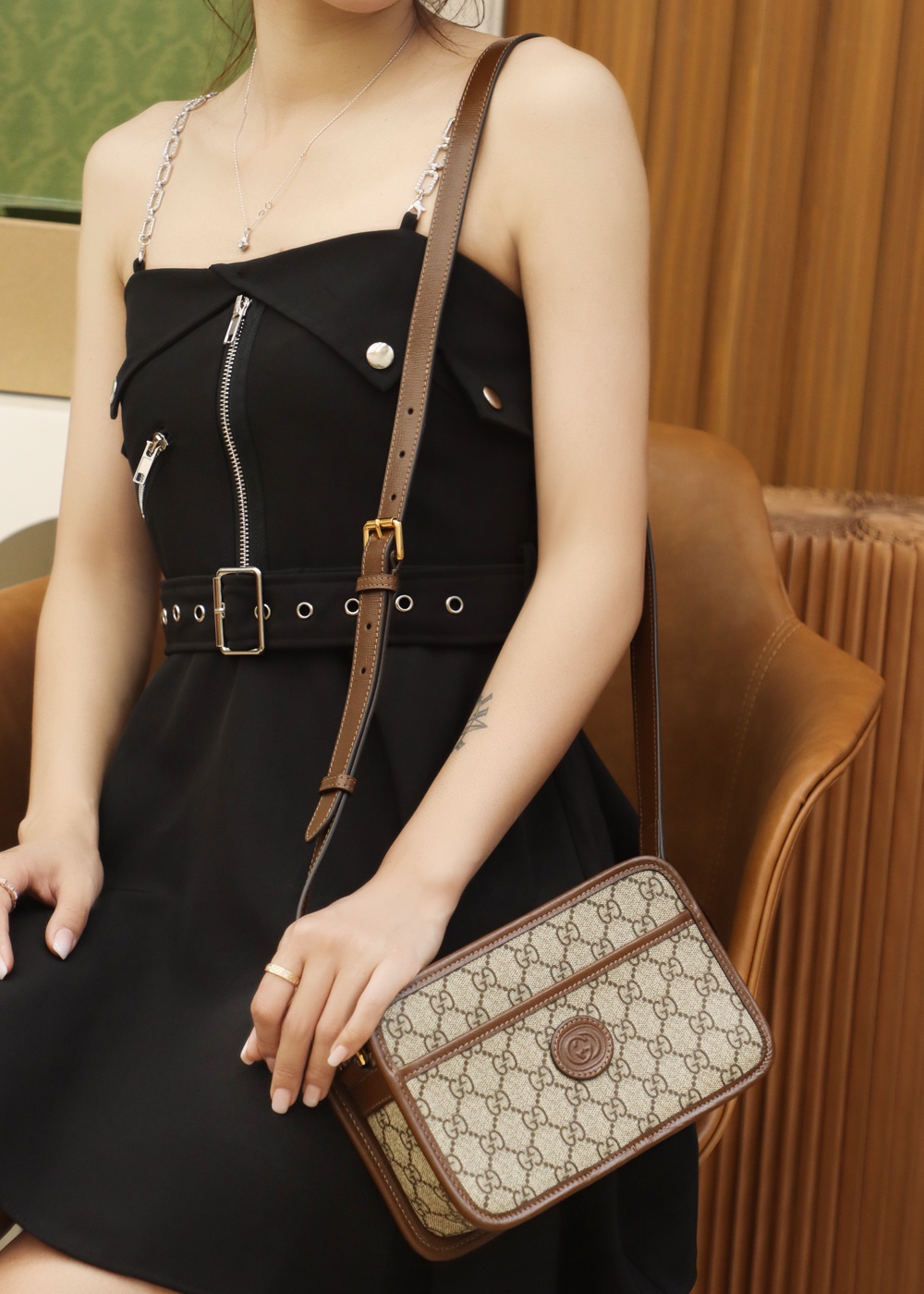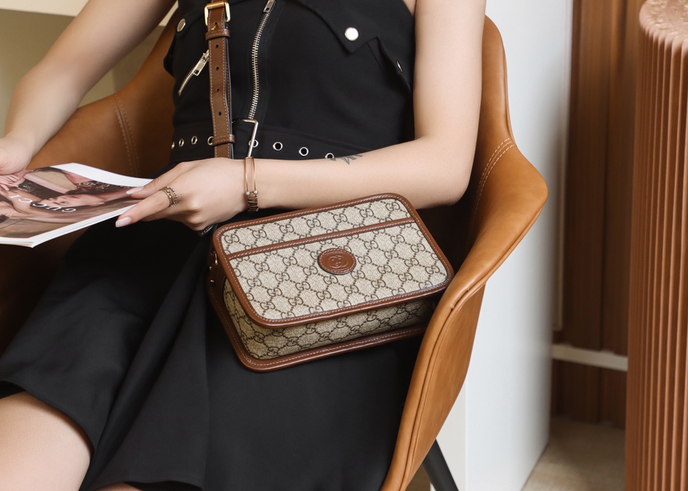 • GUCCI GG Retro leather-trimmed printed coated-canvas camera bag