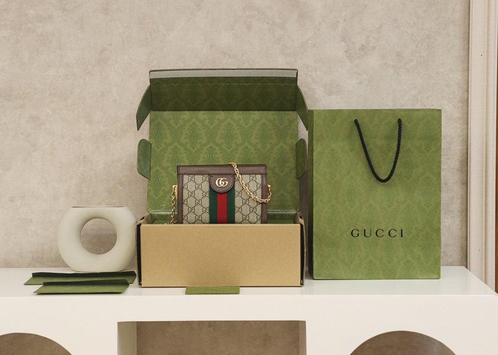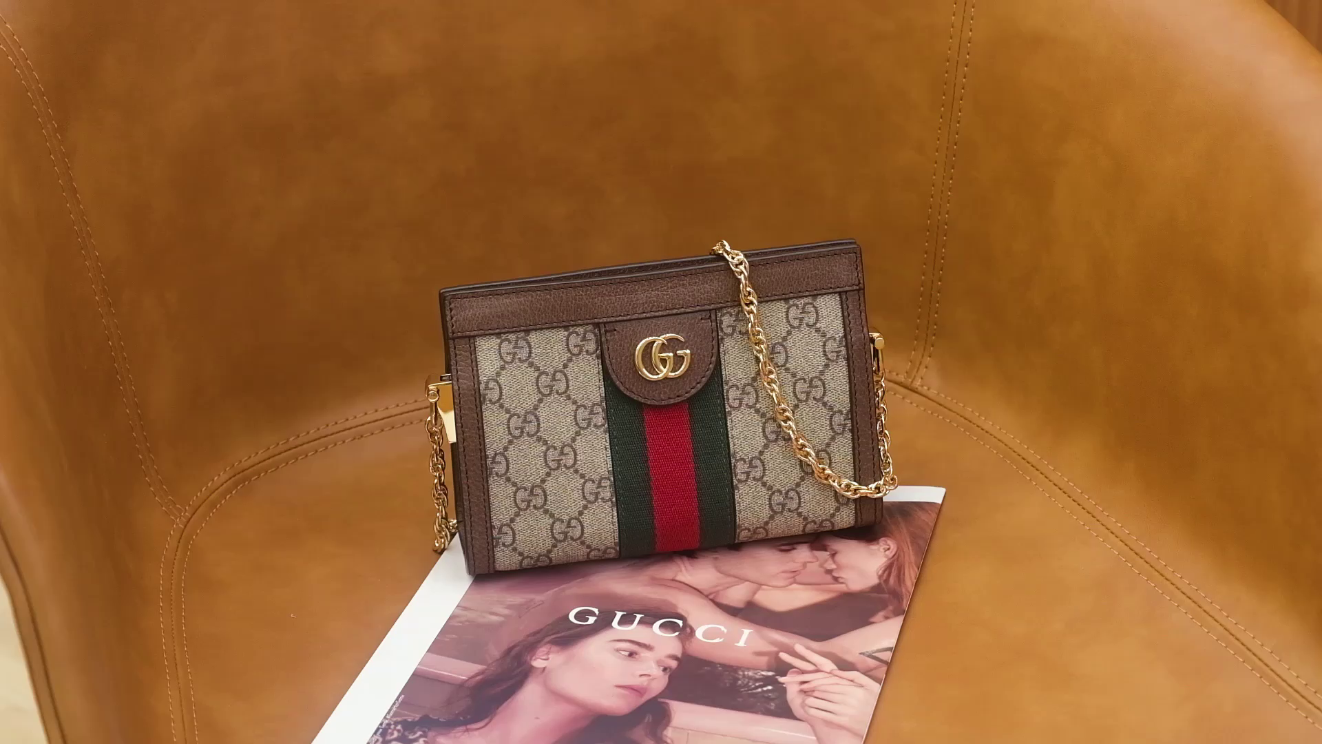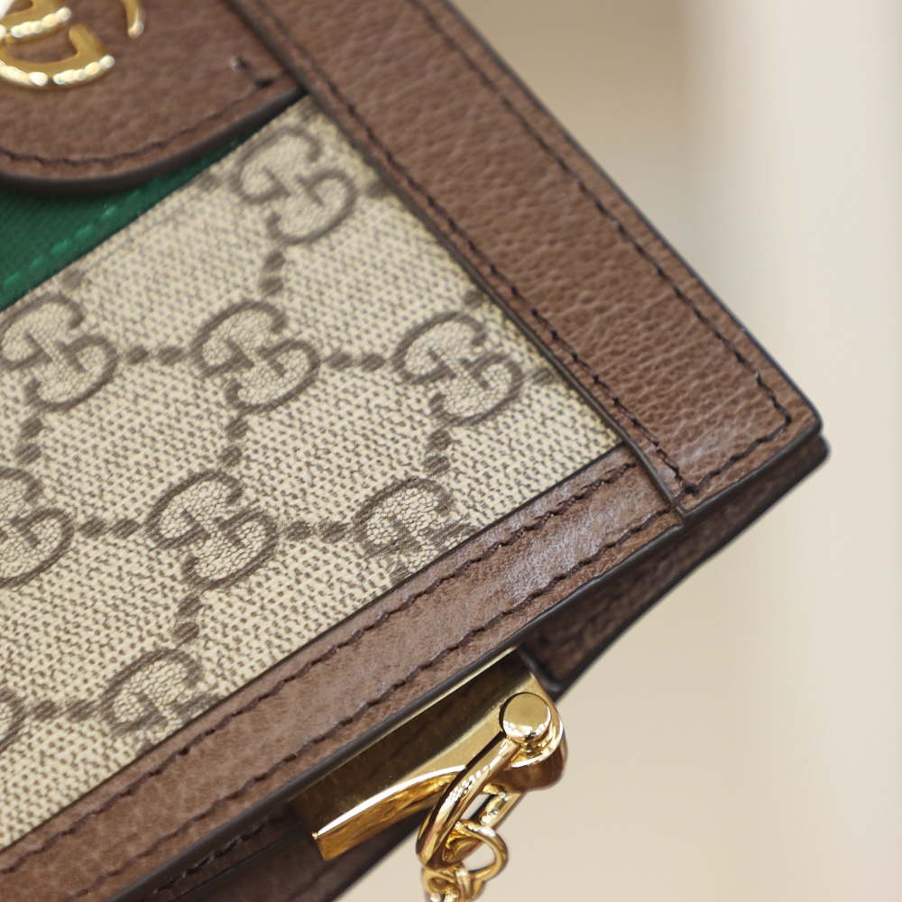 • Gucci GG Supreme Monogram Web Mini Ophidia Chain Shoulder Bag Brown