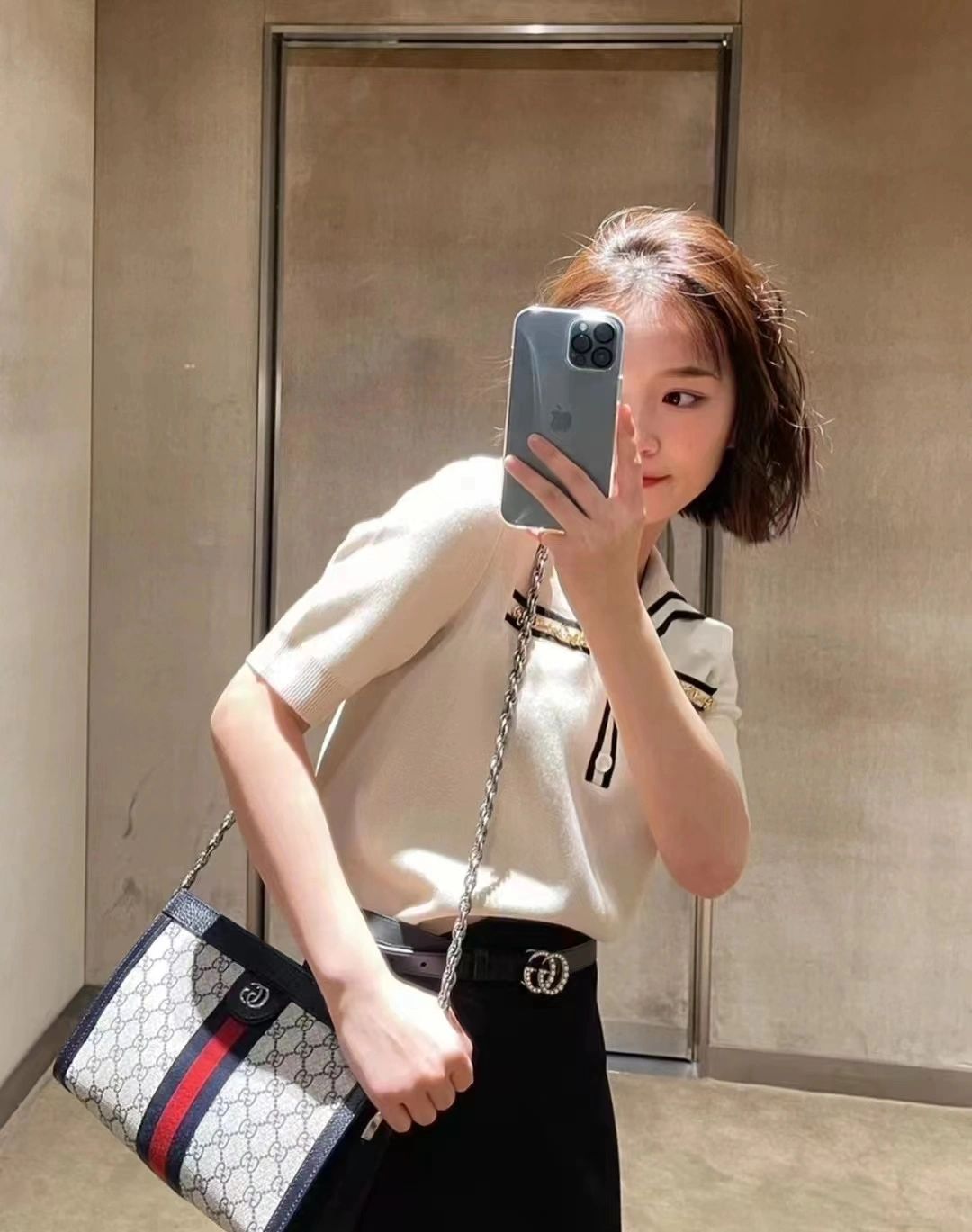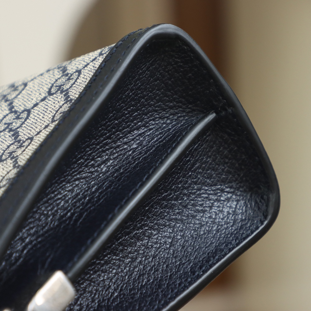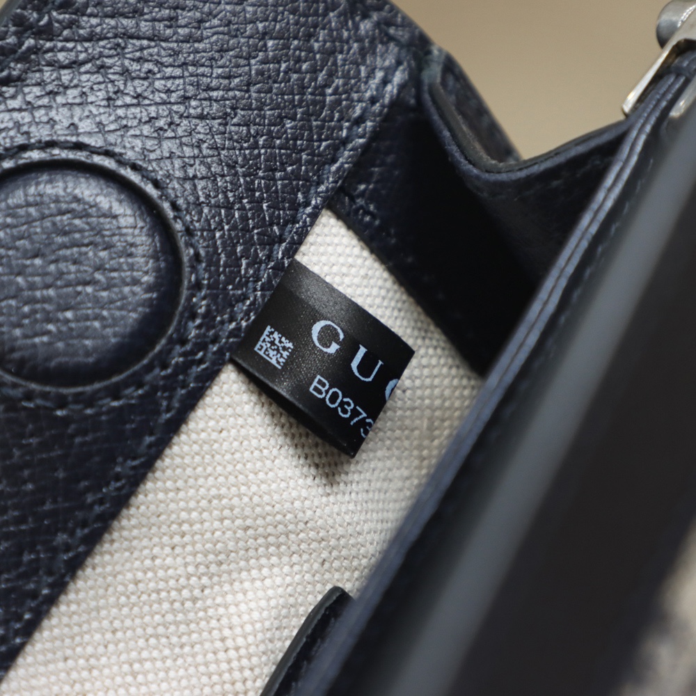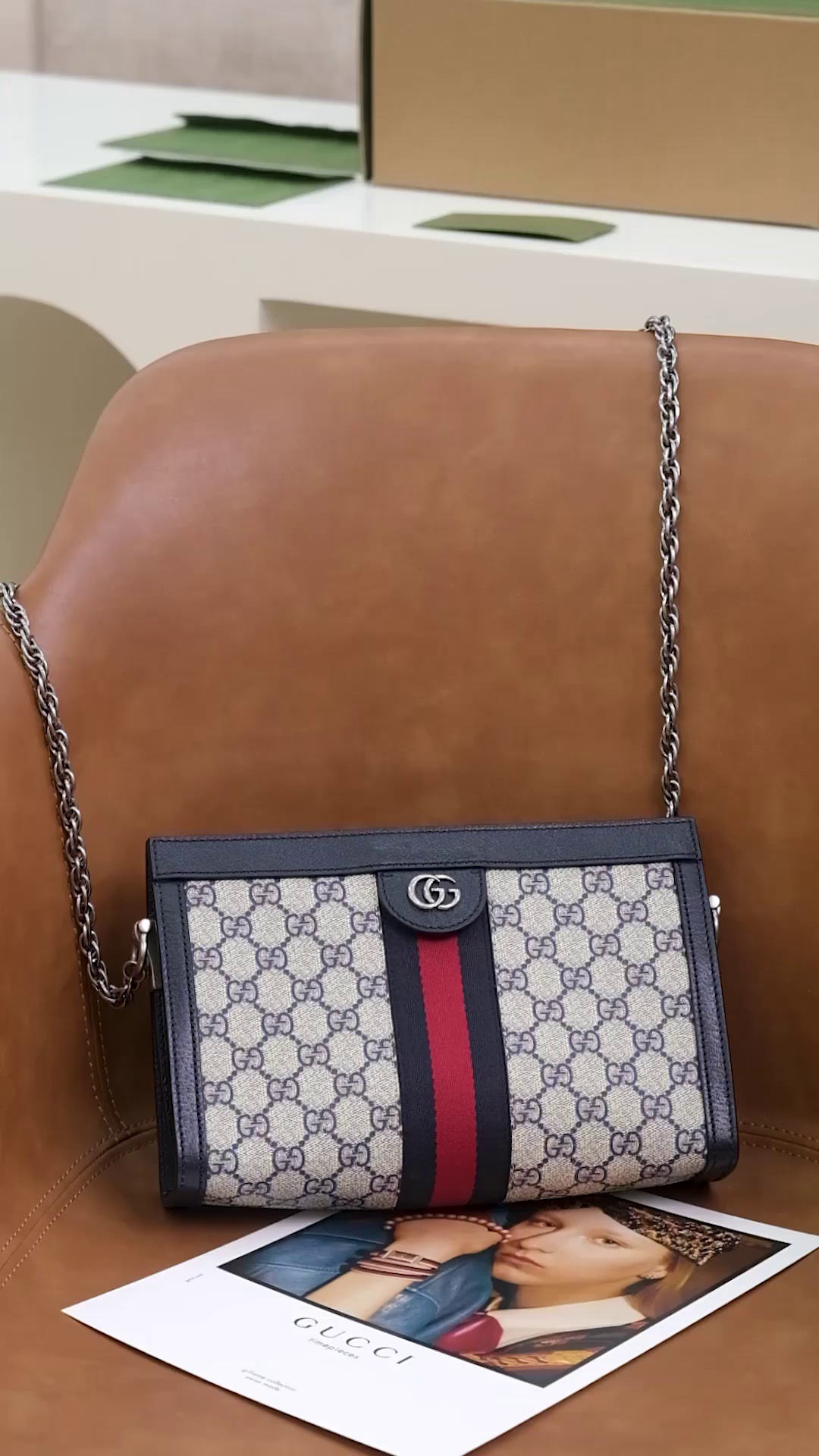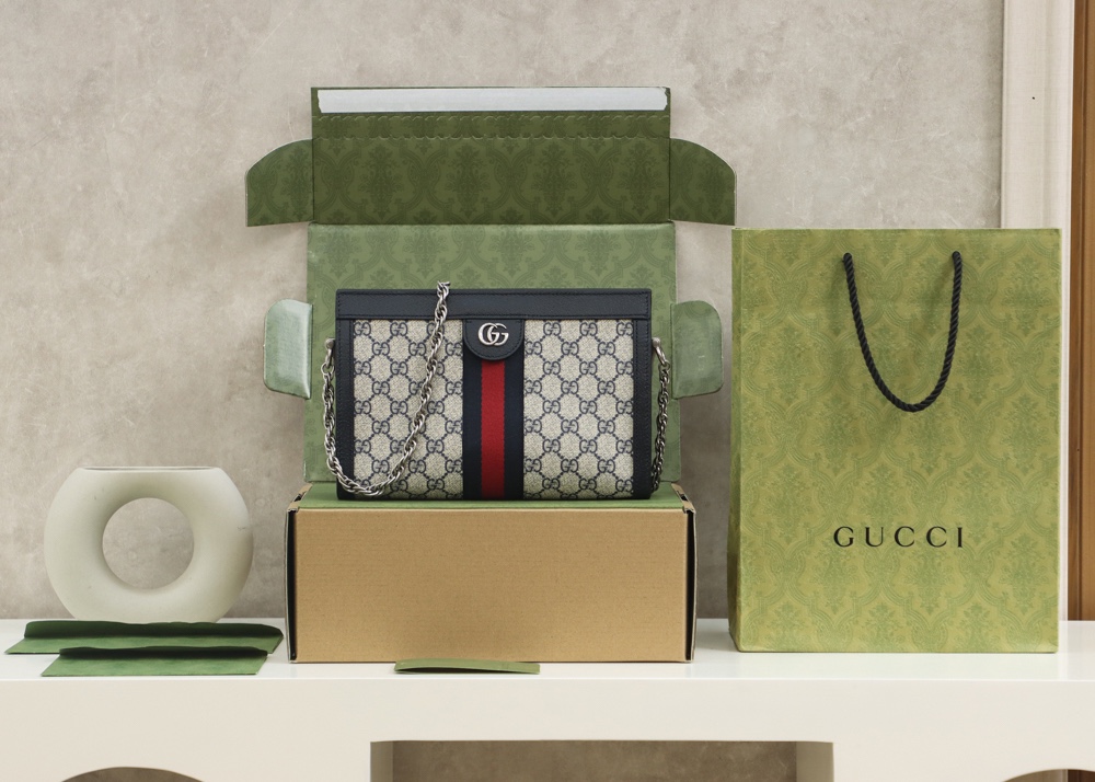 • Gucci GG Supreme Monogram Web Small Ophidia GG Chain Shoulder Bag Brown navy blue and off white