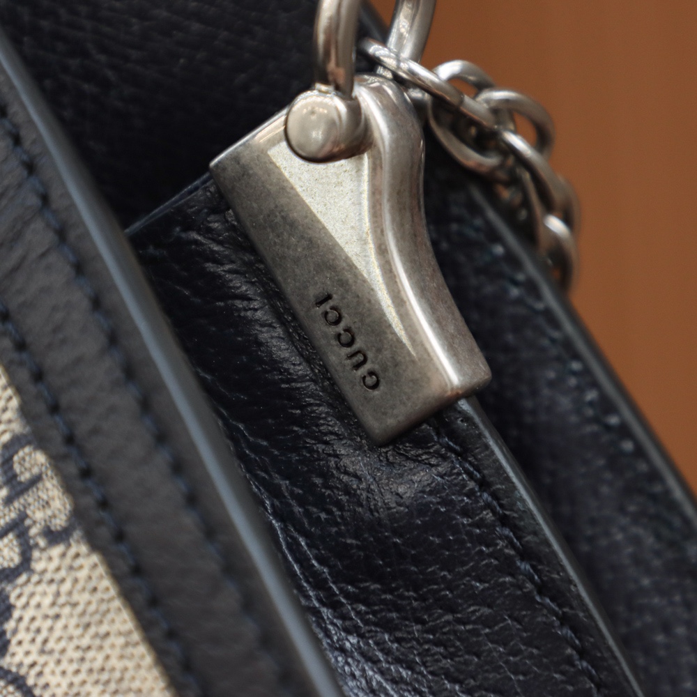 Gucci GG Supreme Monogram Web Small Ophidia GG Chain Shoulder Bag Brown navy blue and off white