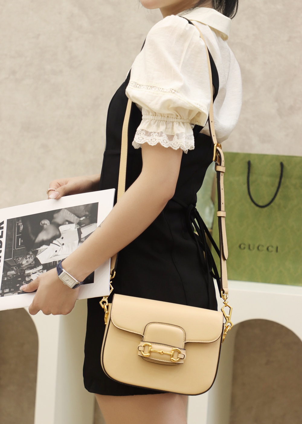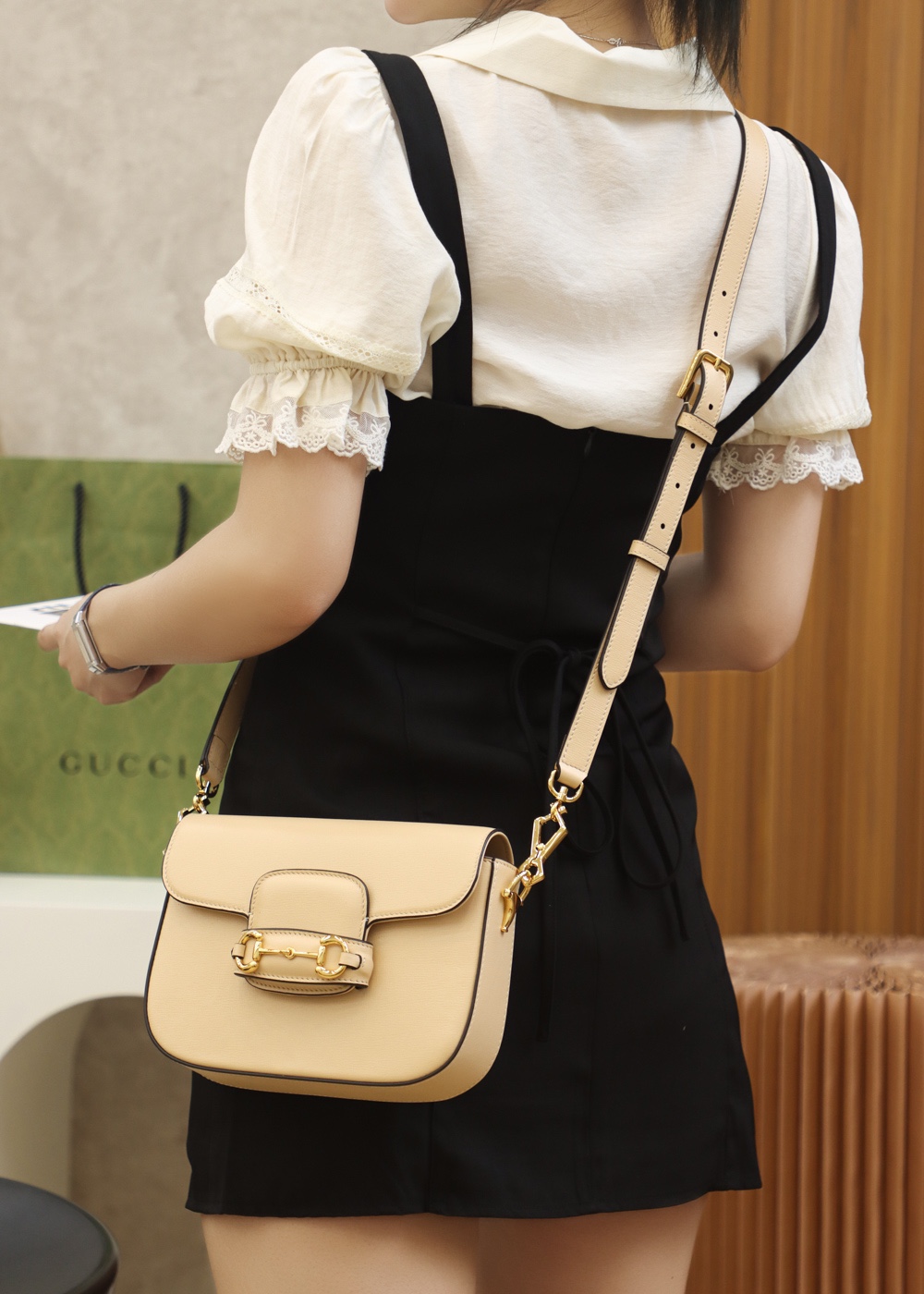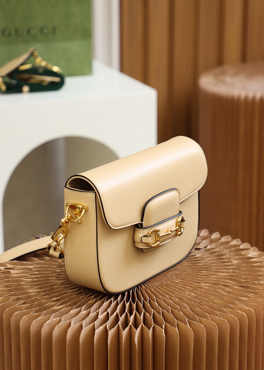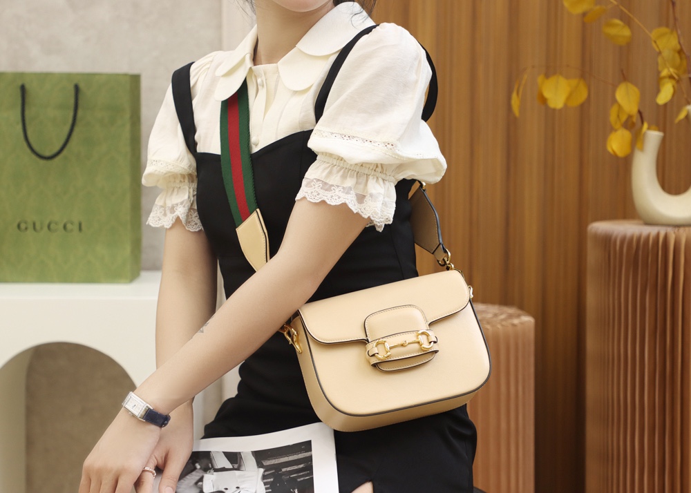 GUCCI Horsebit 1955 mini bag beige leather