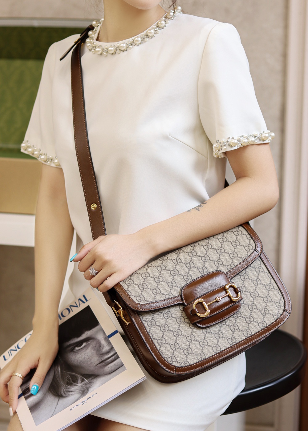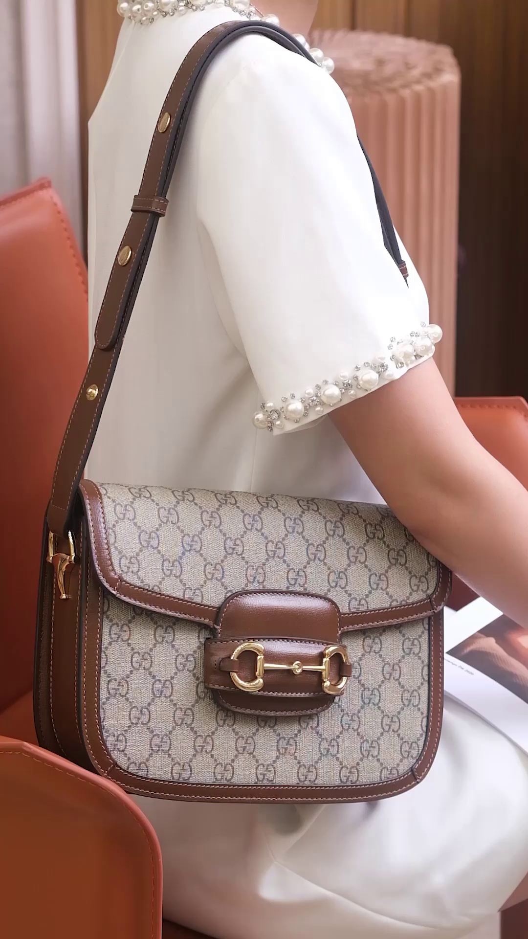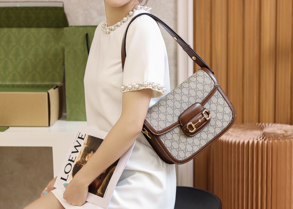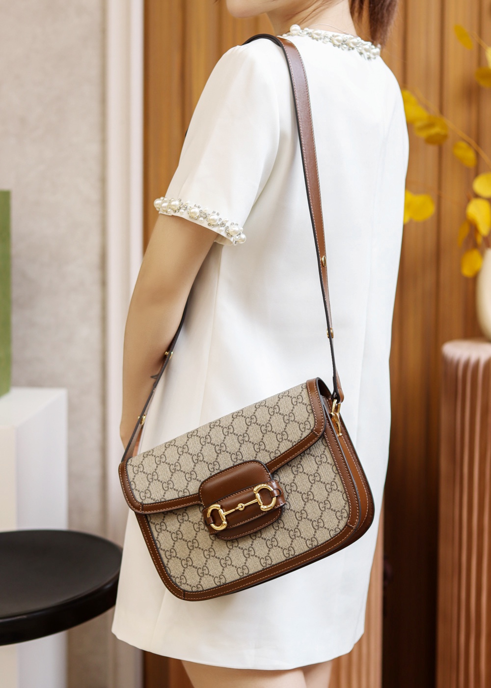 • GUCCI Horsebit 1955 shoulder bag GG Supreme/brown