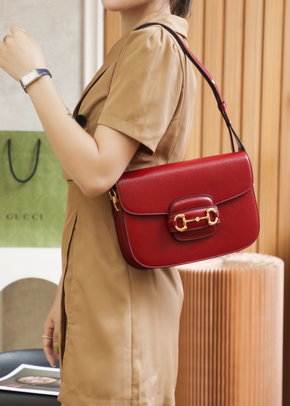 • Gucci Horsebit 1955 shoulder bag red leather