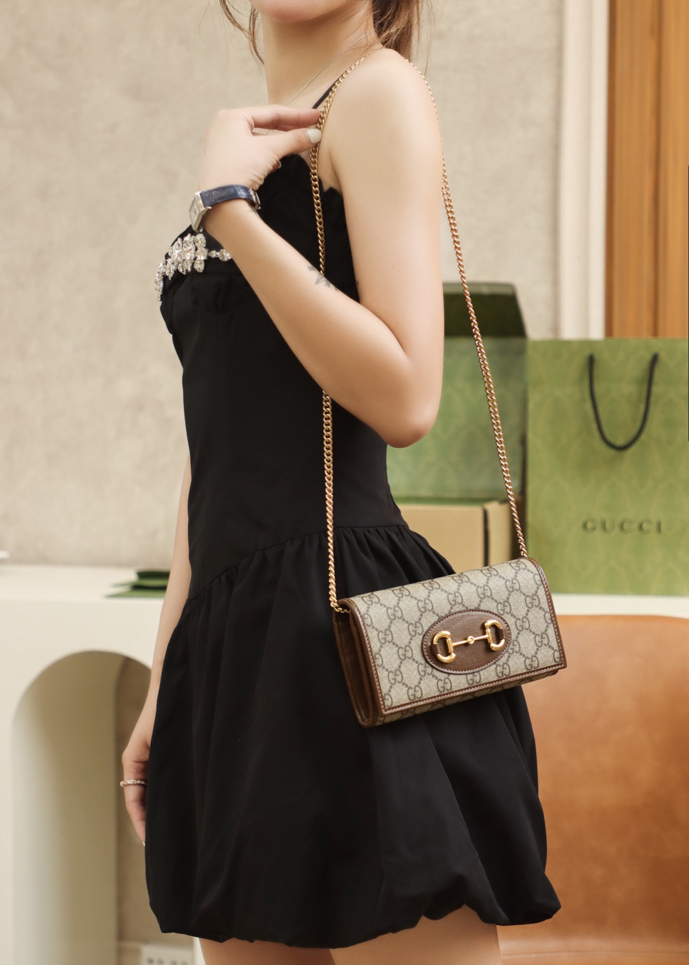 GUCCI Horsebit 1955 wallet with chain