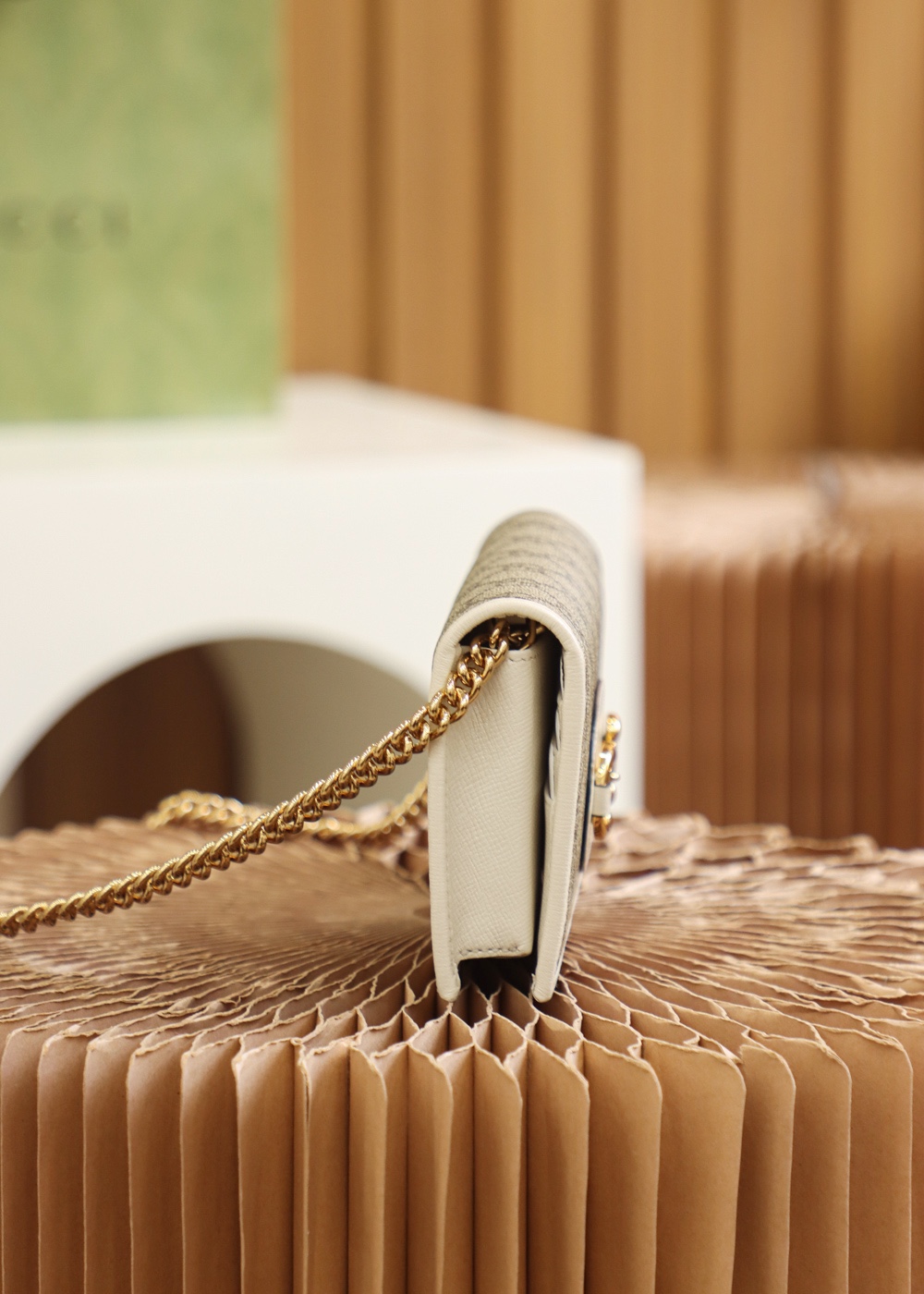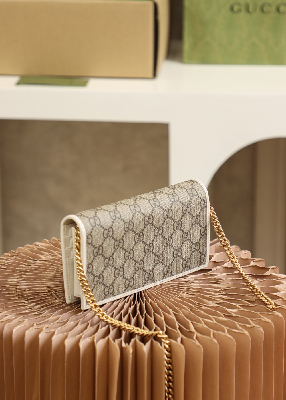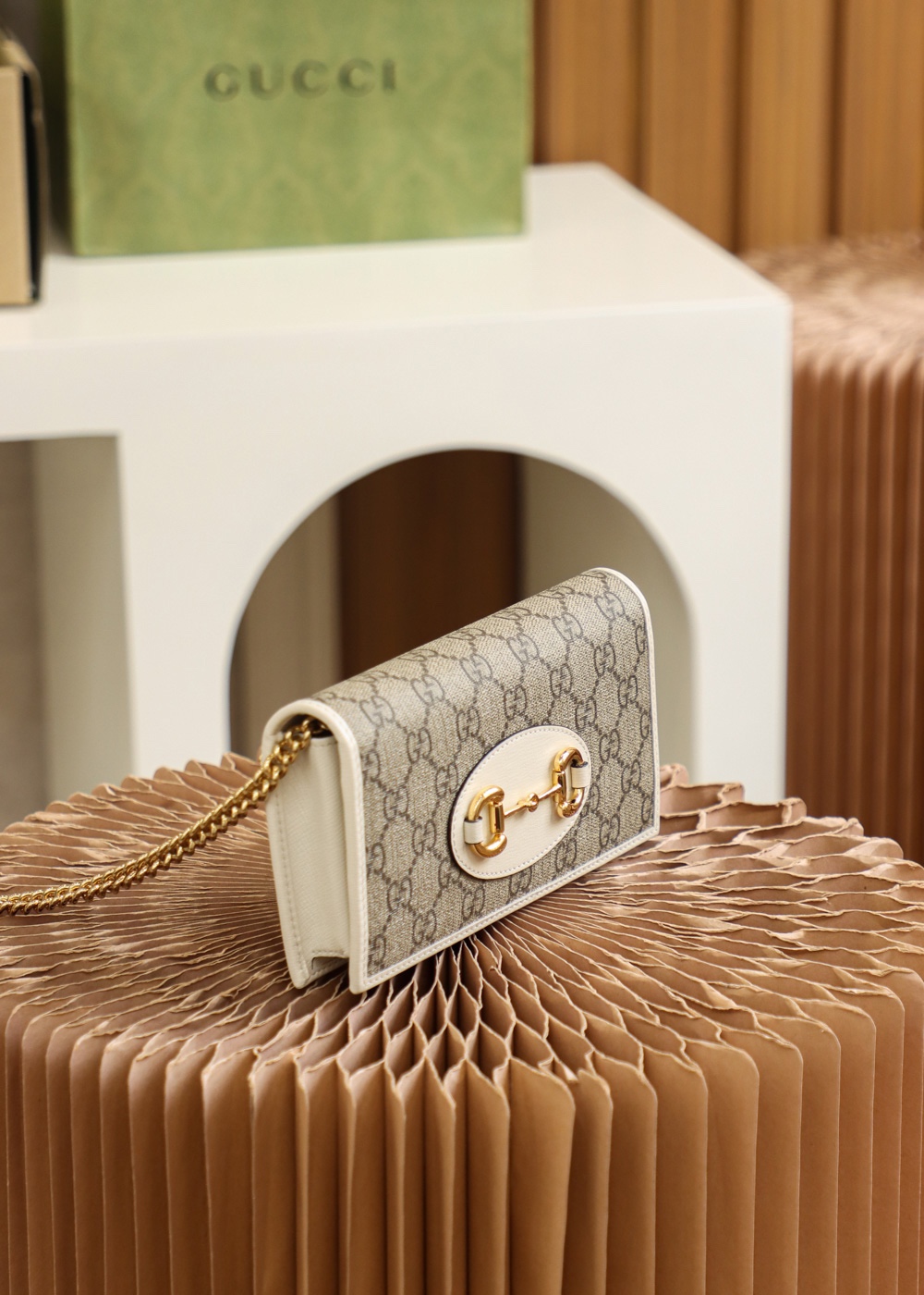 • GUCCI Horsebit 1955 wallet with chain GG Supreme/White