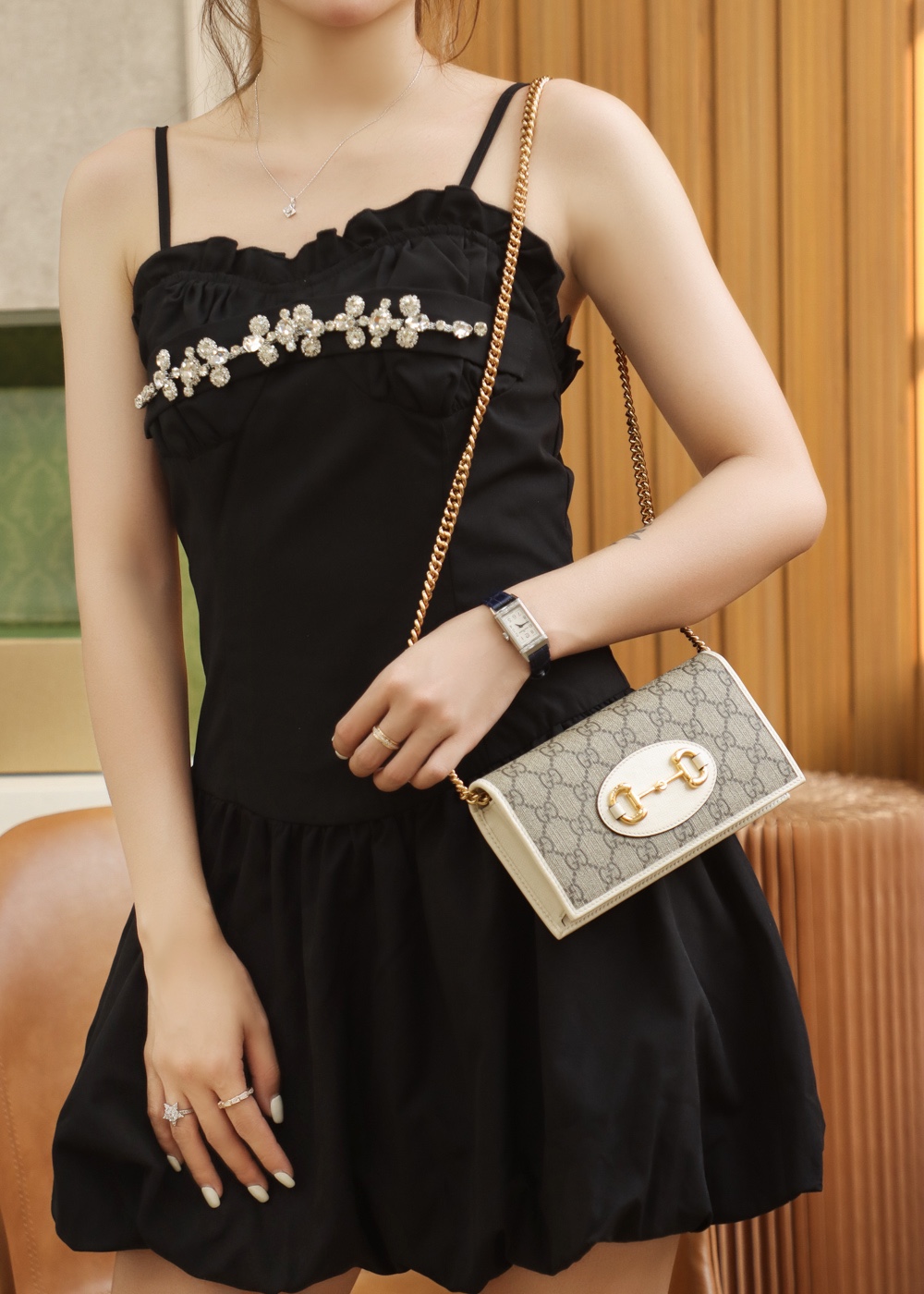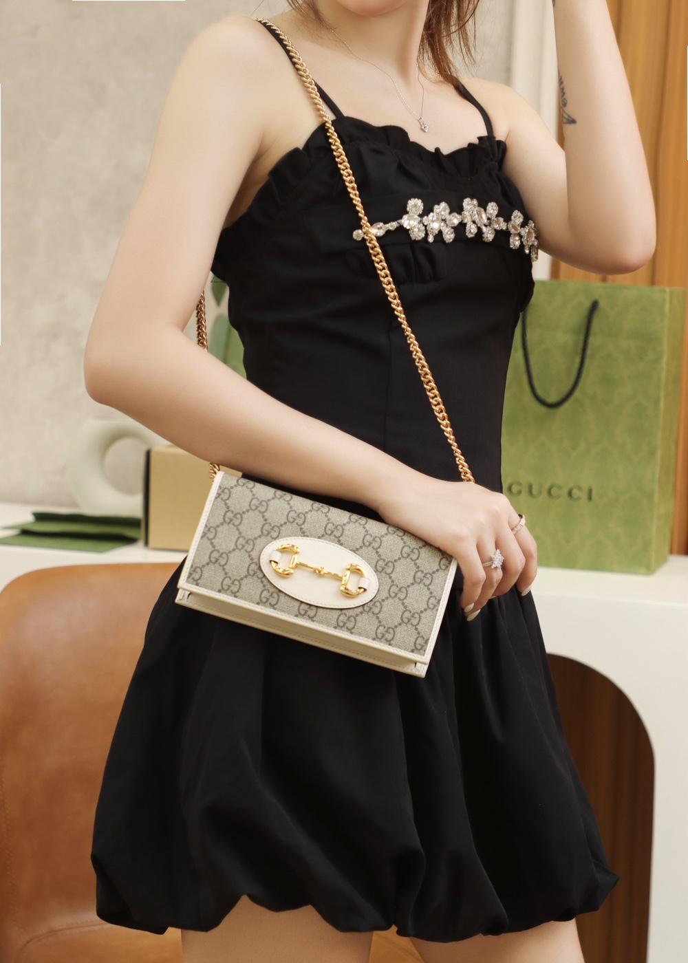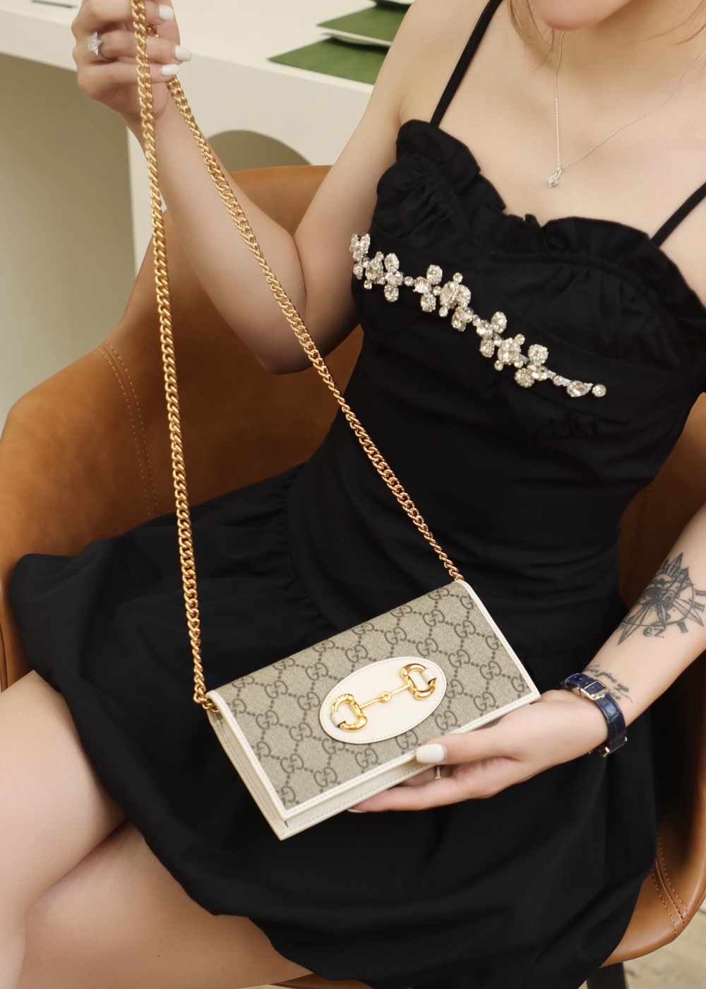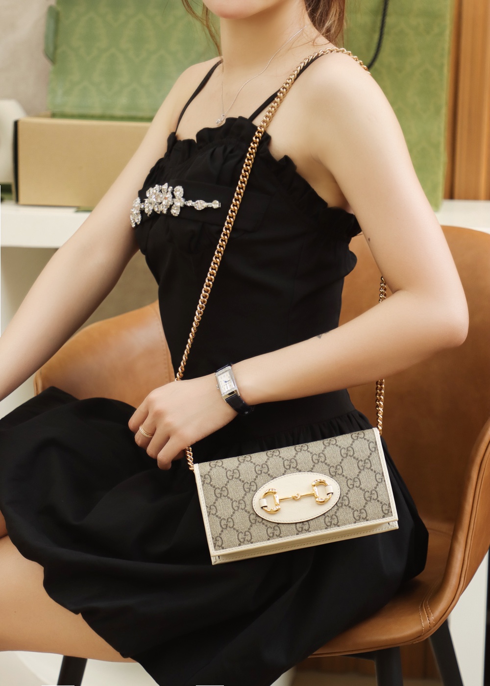 • GUCCI Horsebit 1955 wallet with chain GG Supreme/White