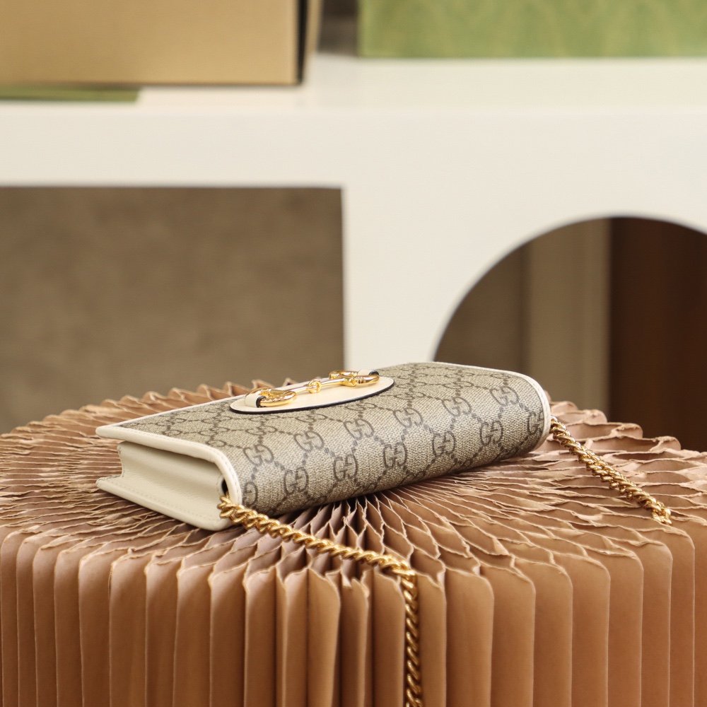 GUCCI Horsebit 1955 wallet with chain GG Supreme/White