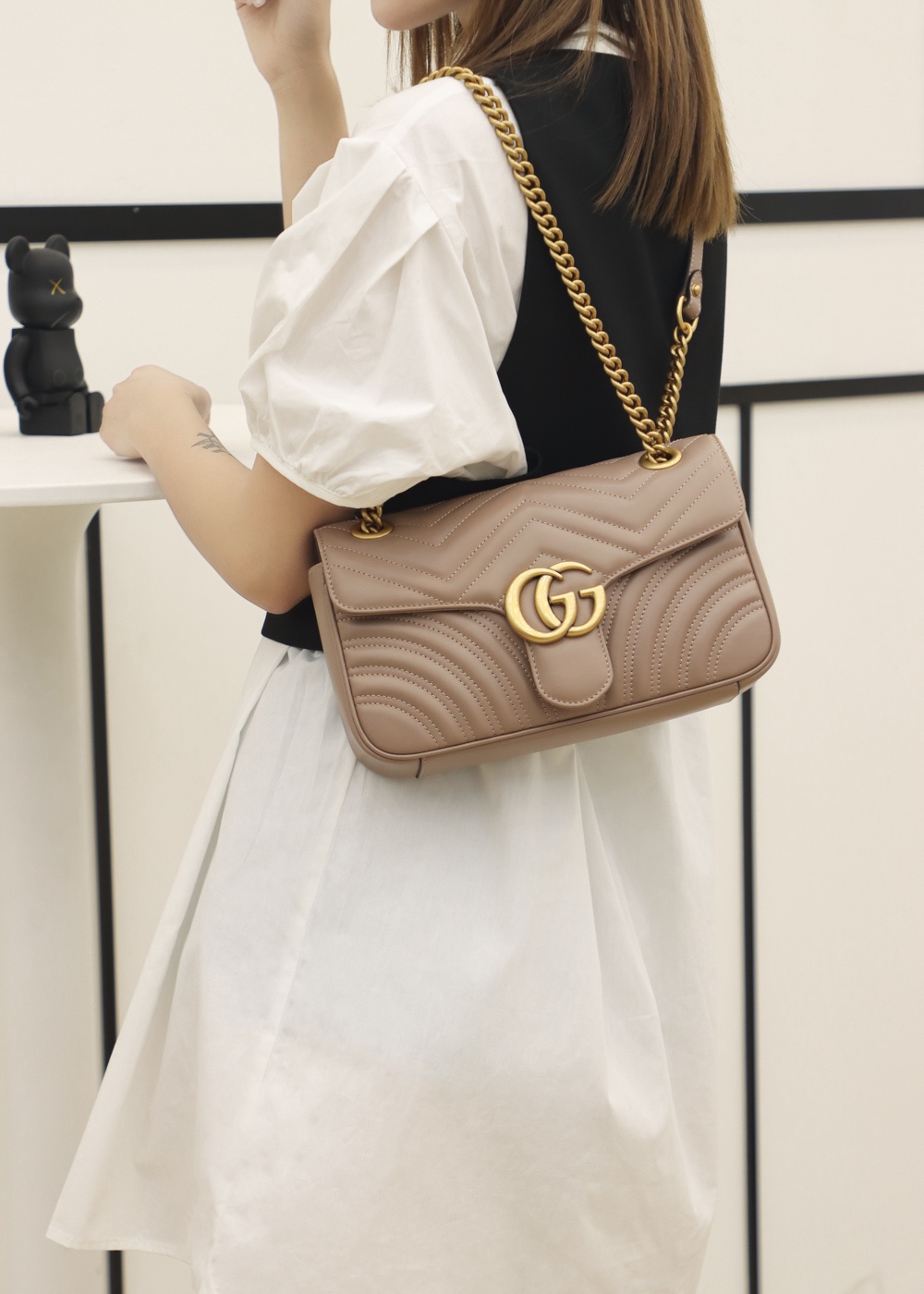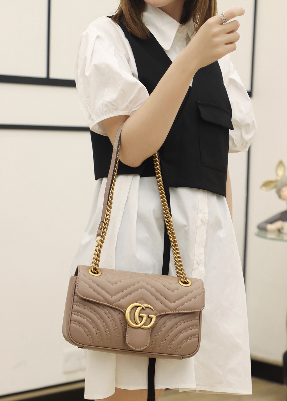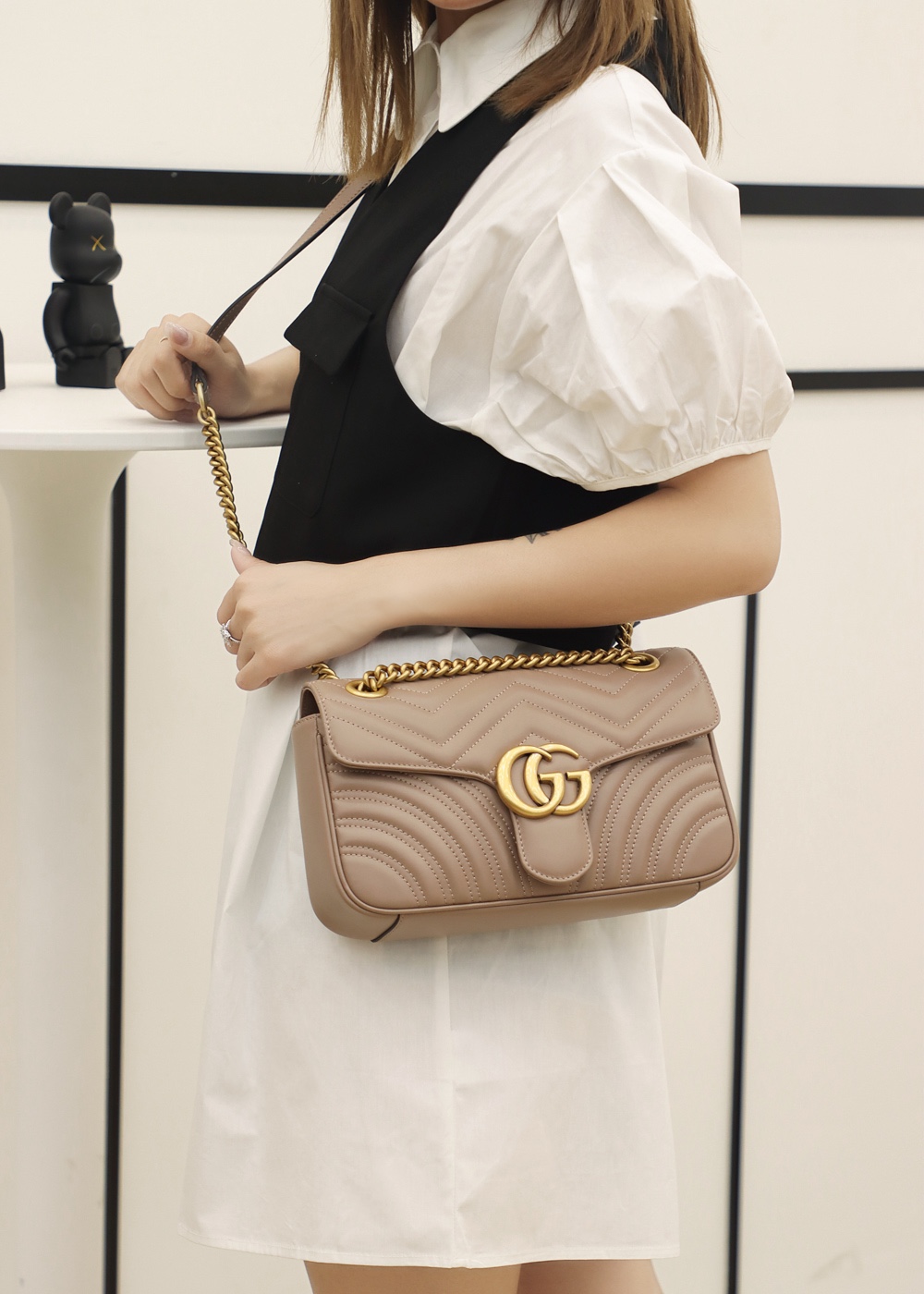 GUCCI milk tea color Small GG Marmont 2.0 Shoulder Bag