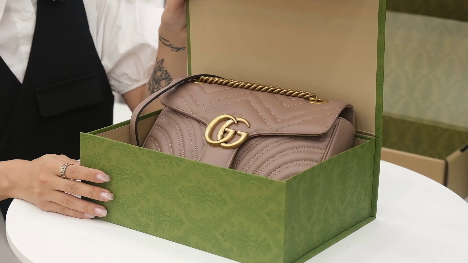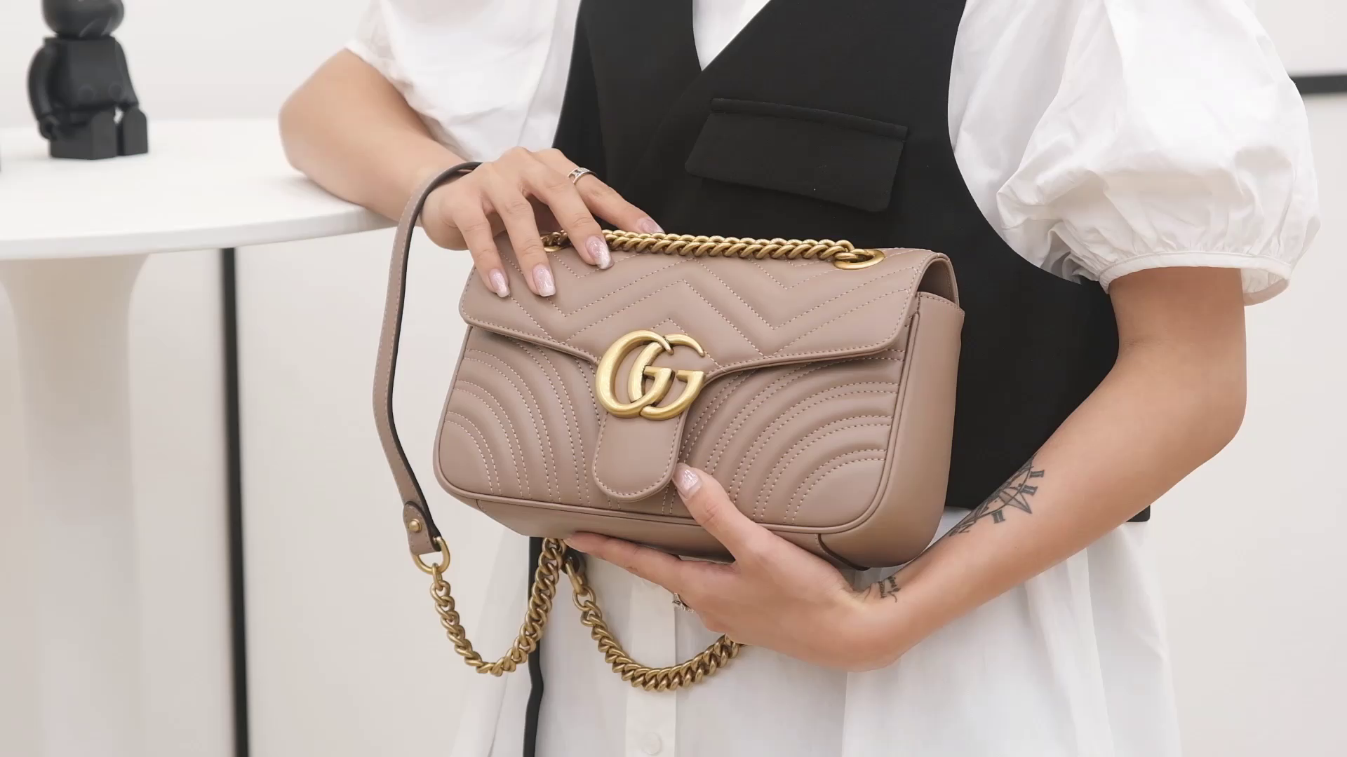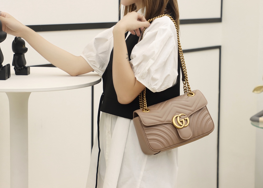GUCCI milk tea color Small GG Marmont 2.0 Shoulder Bag