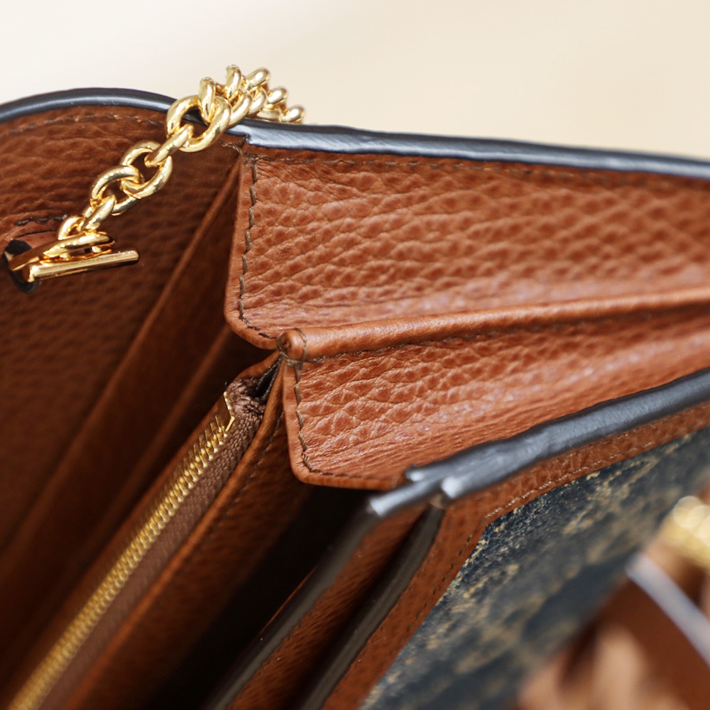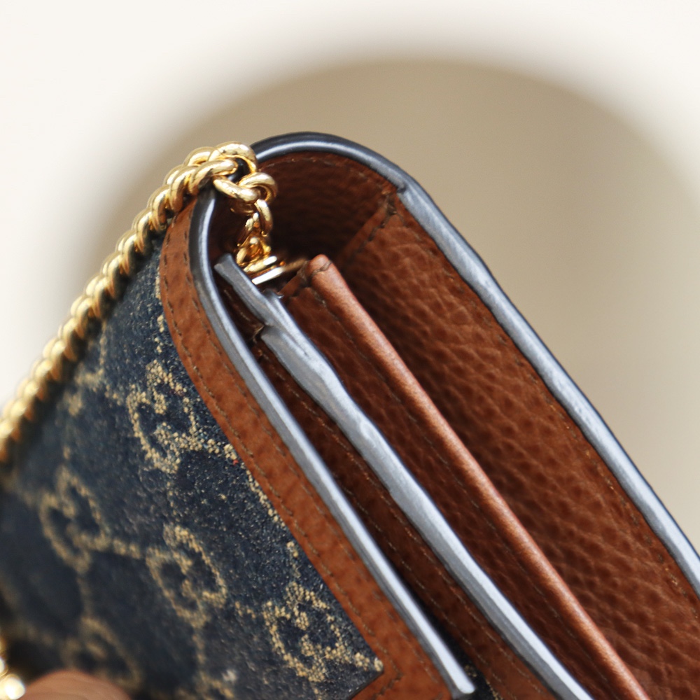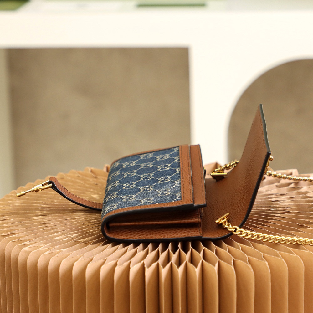 • Gucci New Denim GG Monogram Jackie 1961 Chain Wallet Blue crossbody bag NEW