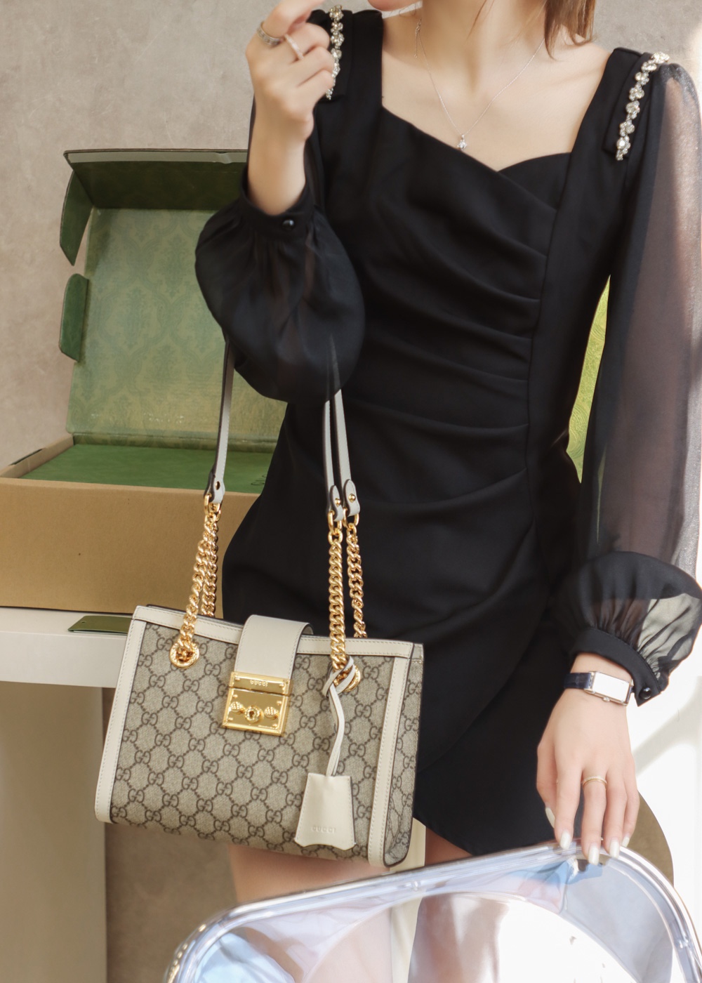 • Gucci Women's Natural Small Canvas Padlock Shoulder Bag