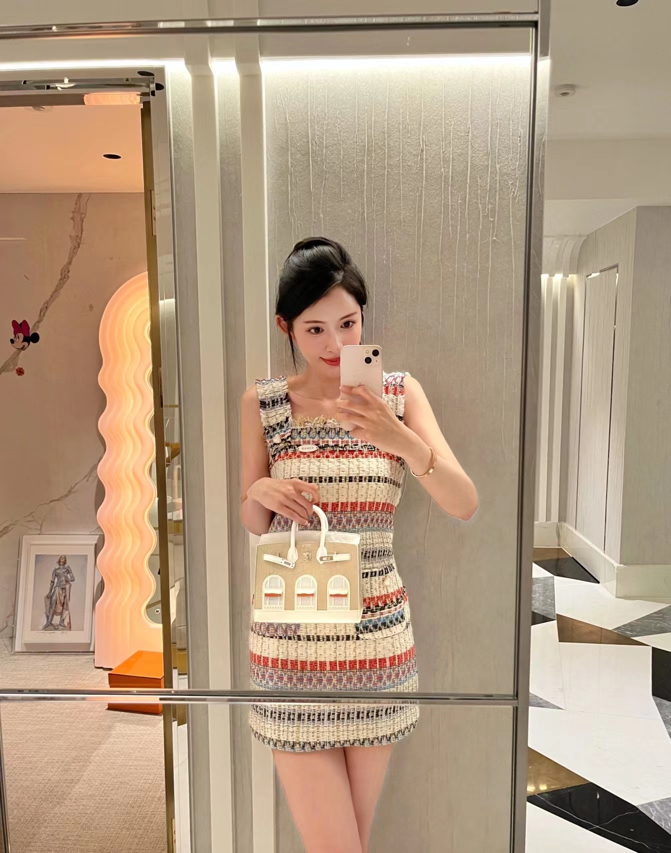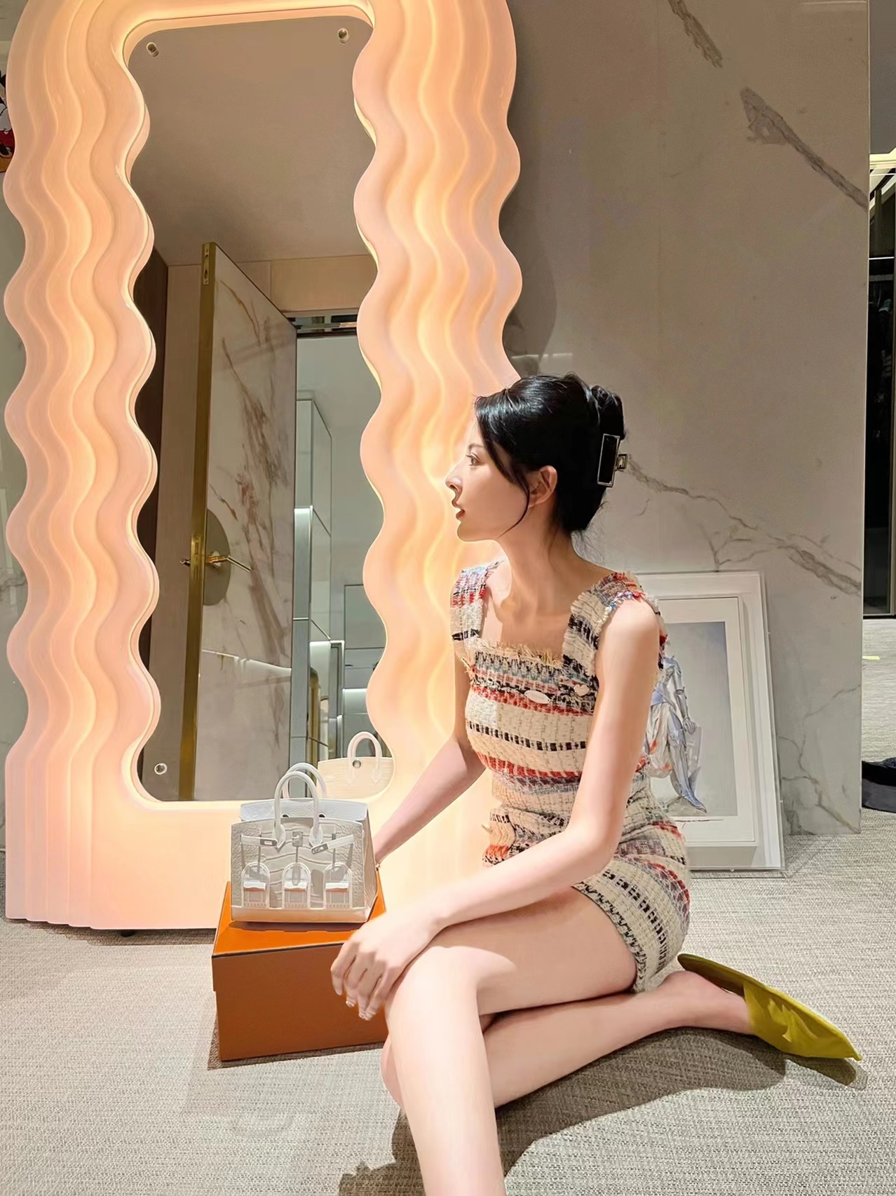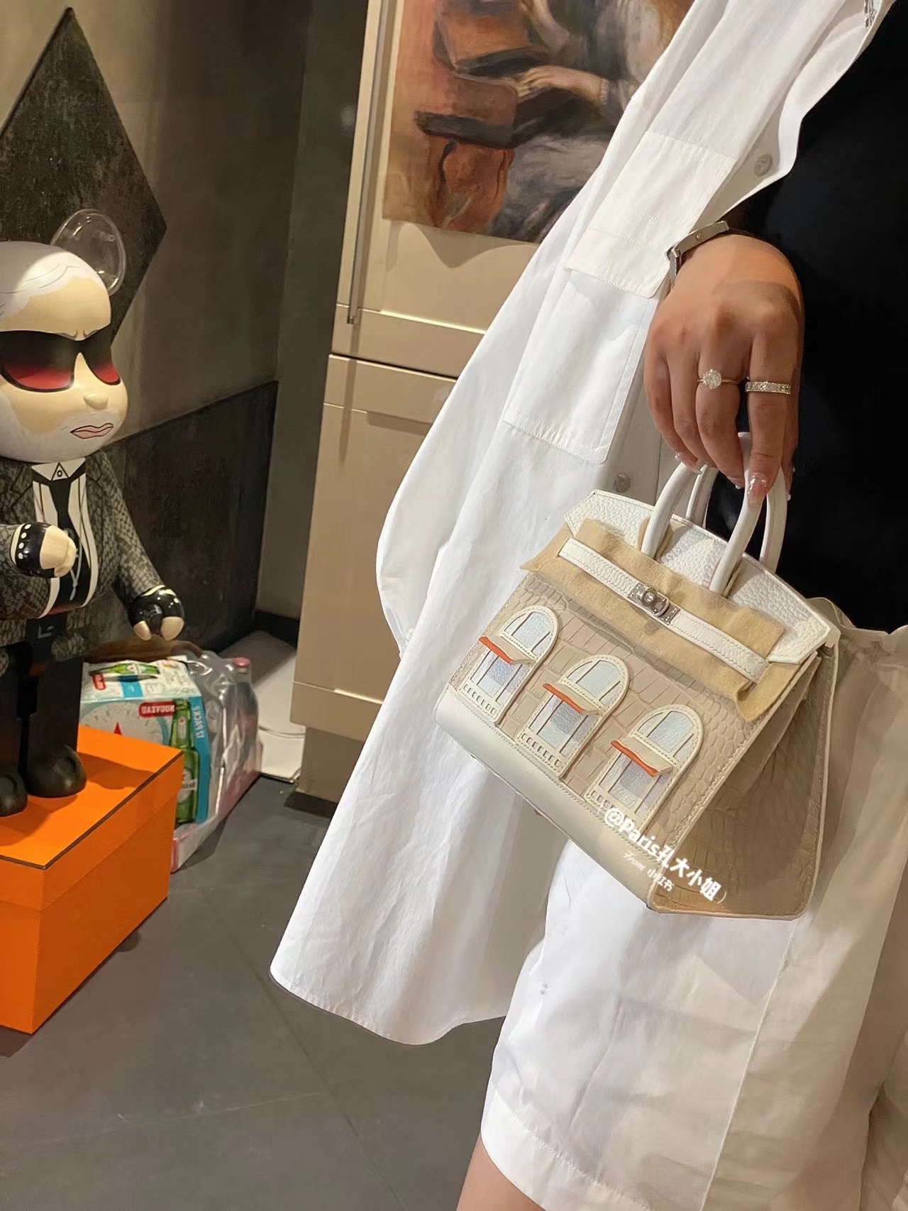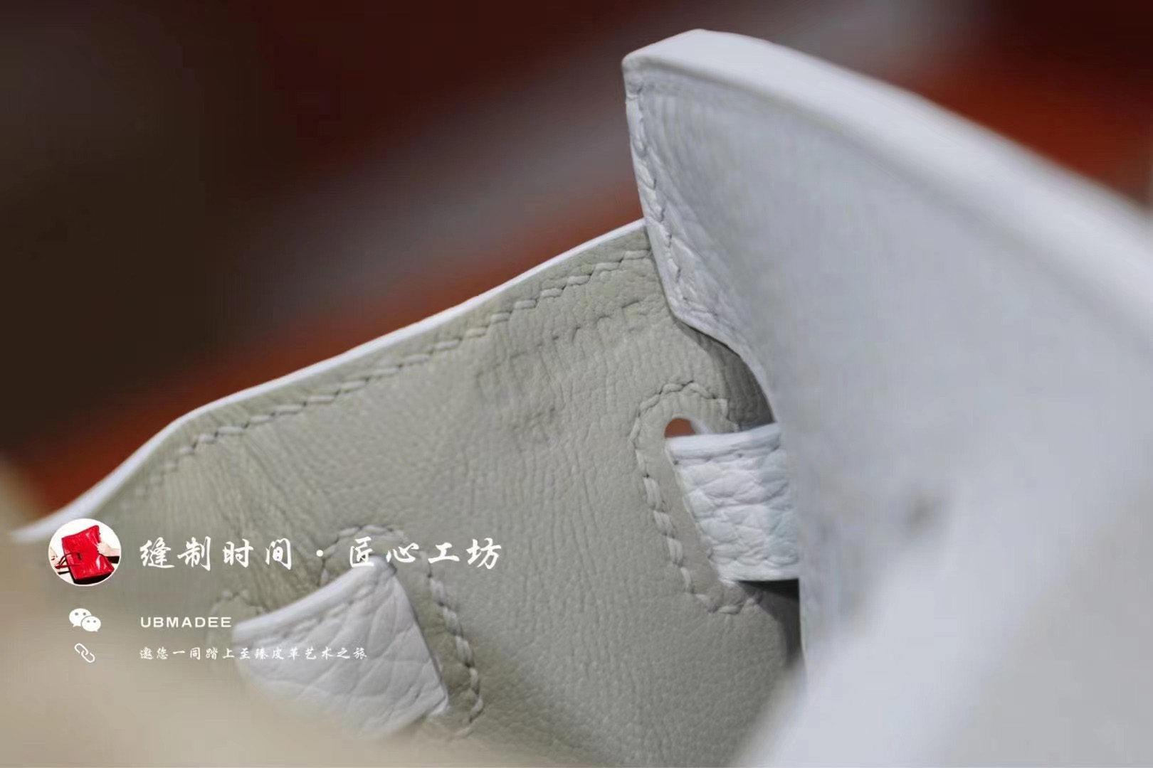• Hermes Birkin 20 Sellier Neige (Snow) White Faubourg House Alligator 8L Beton+blanc+T0 Bleu Brume Bag