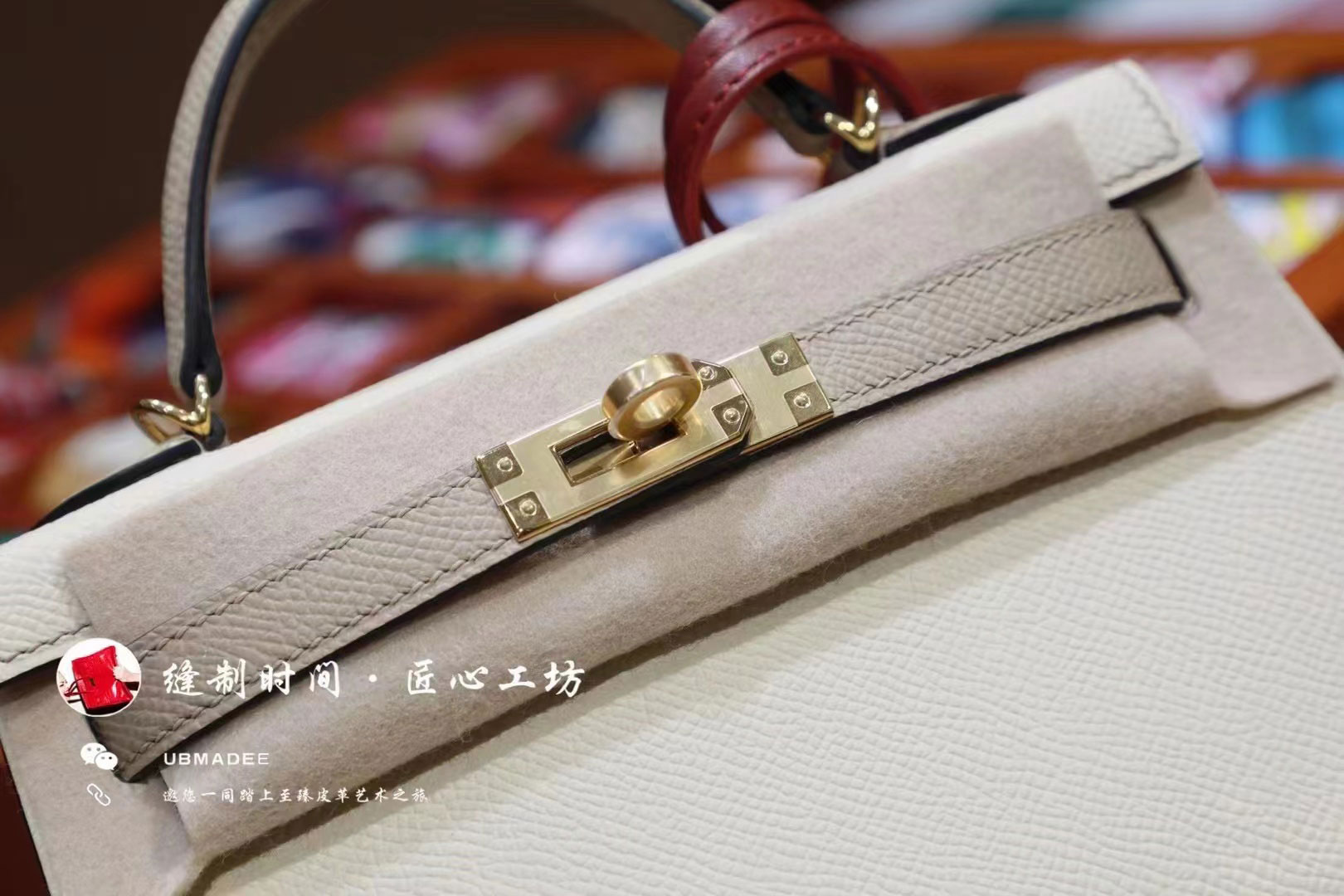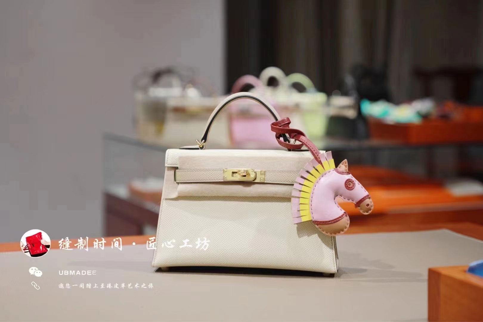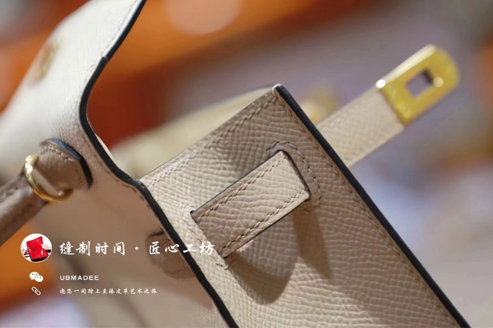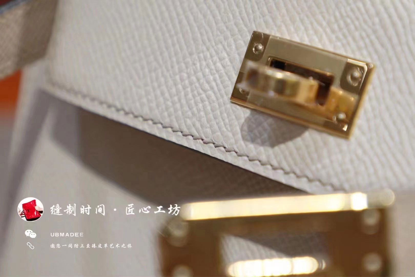 • Hermes Kelly 20 Mini Sellier Bag Craie Epsom Leather argent Hardware