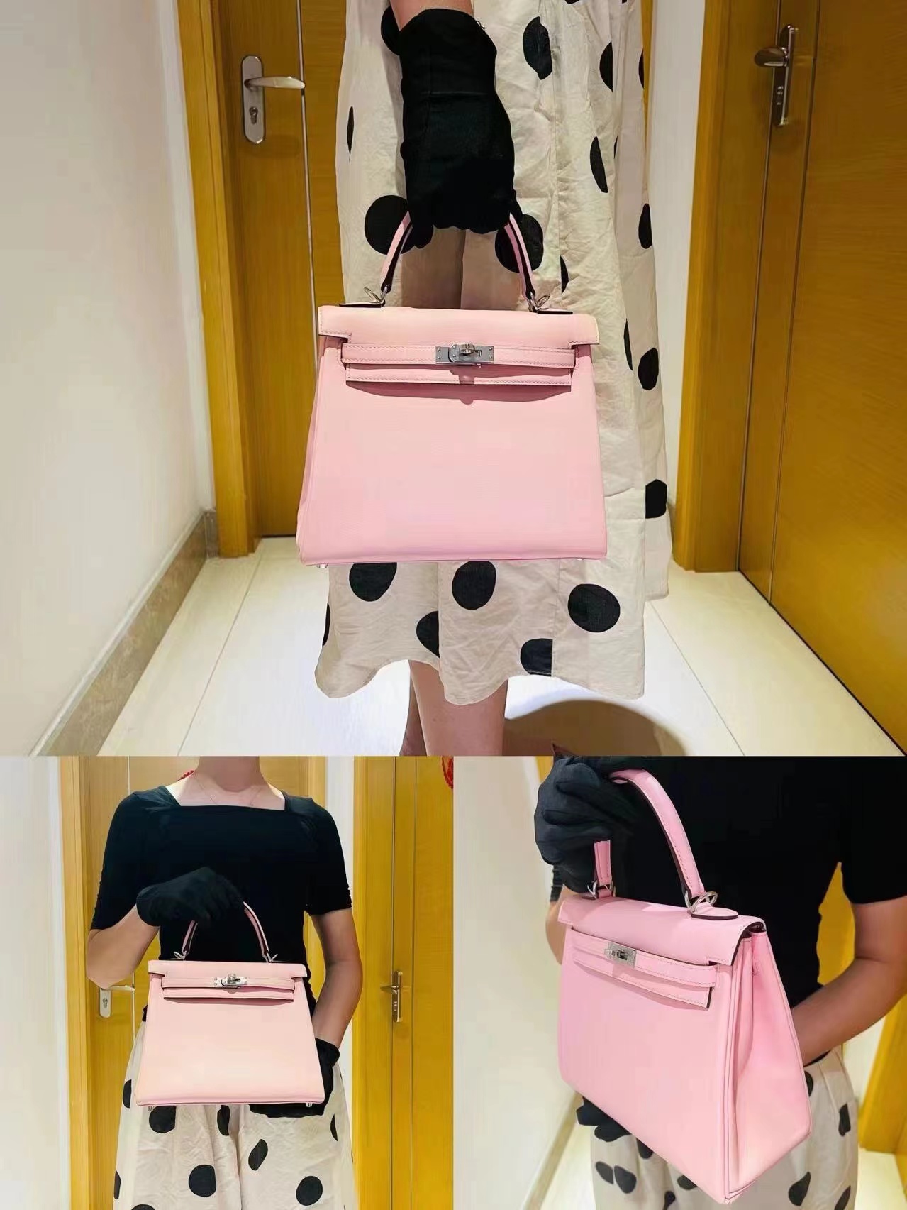 • Hermes kelly 25 3Q Rose Sakura swift silver buckle
