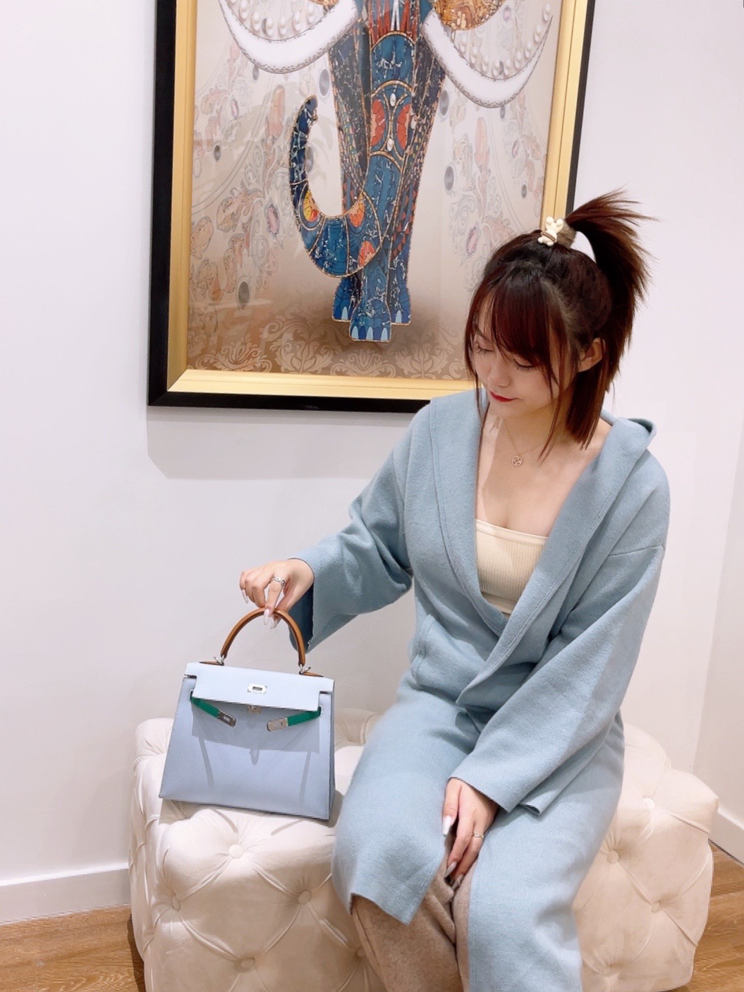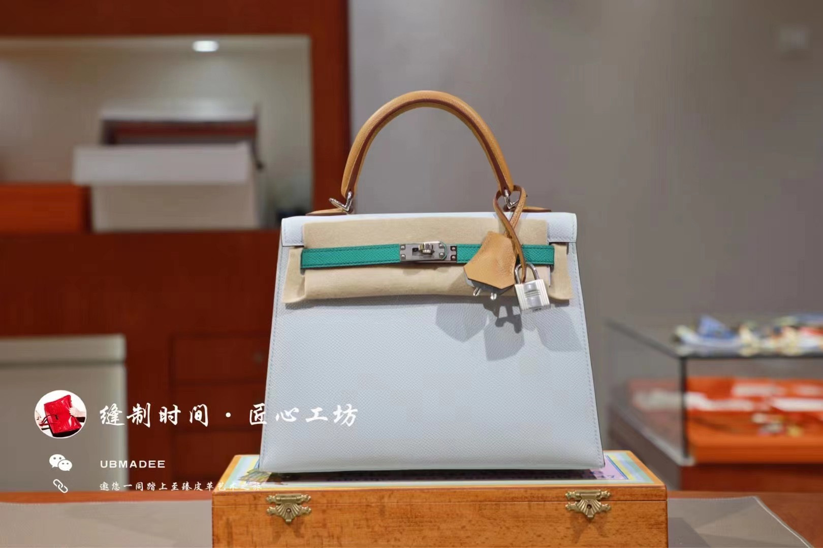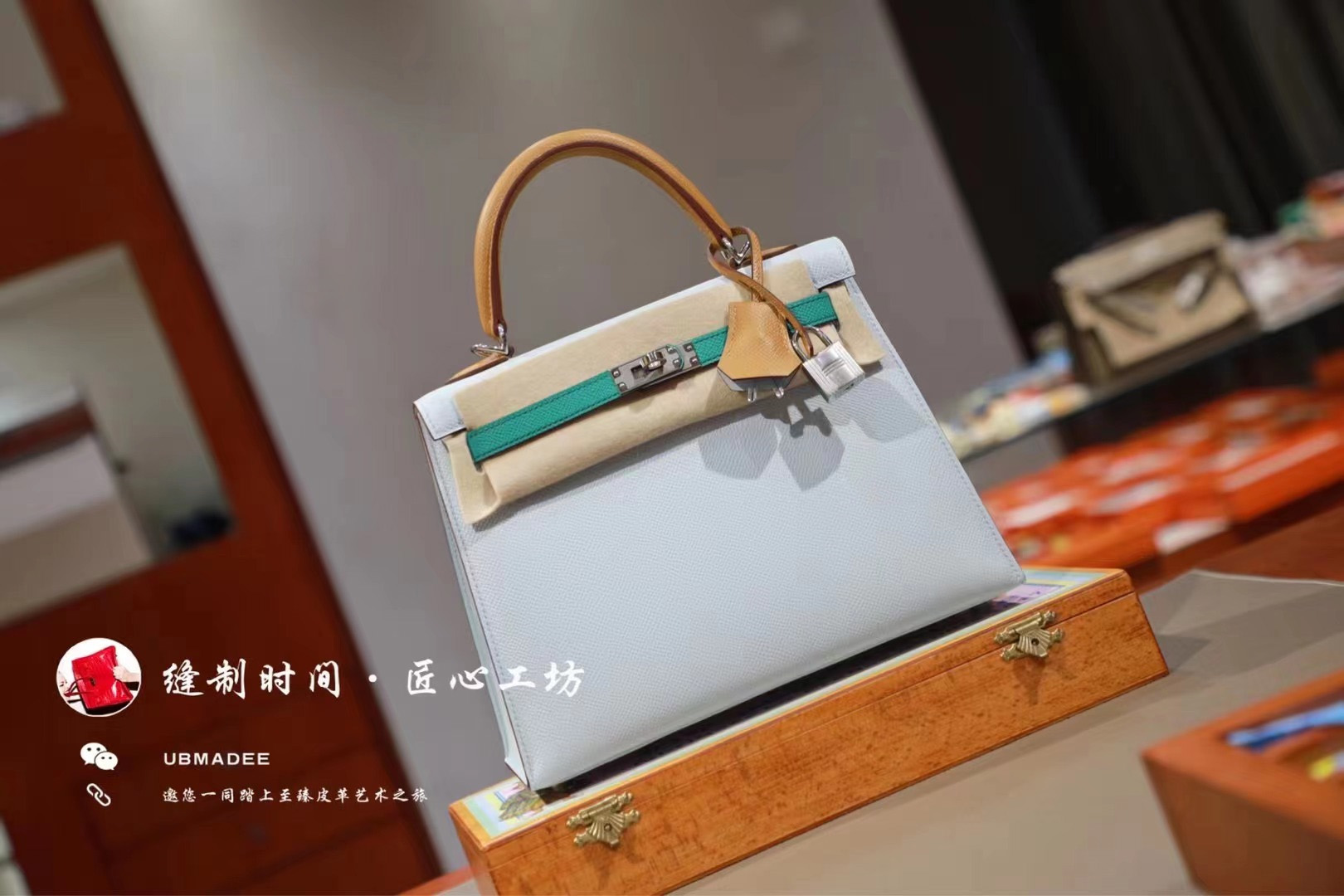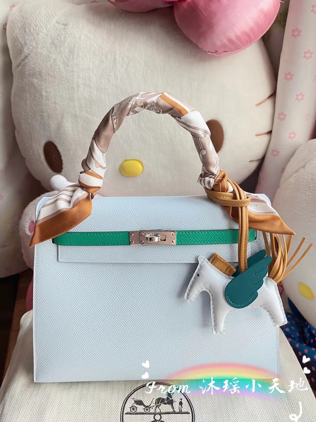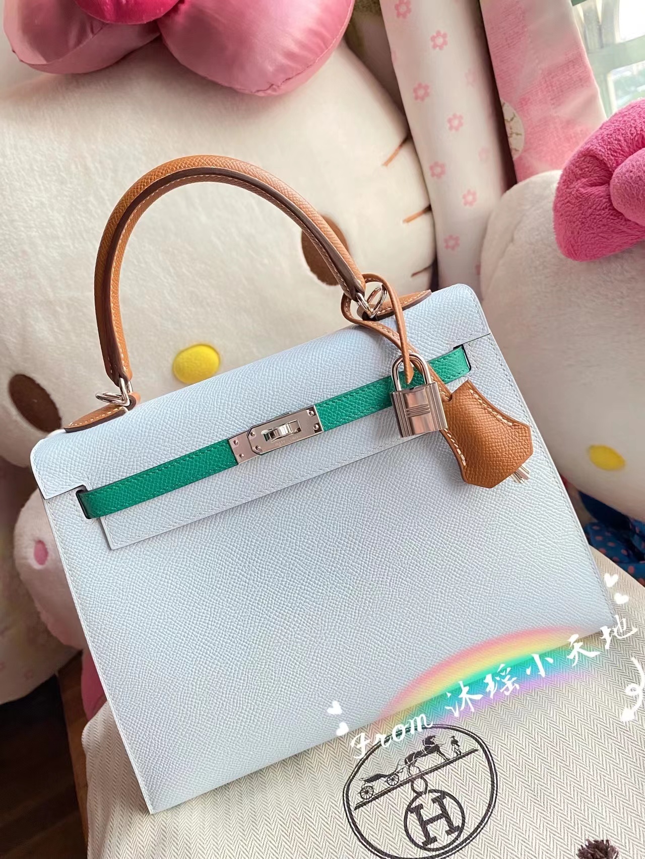 • Hermes kelly 25 T0Bleu Brume+2S Sesame+O6 Vert Jade Epsom PHW