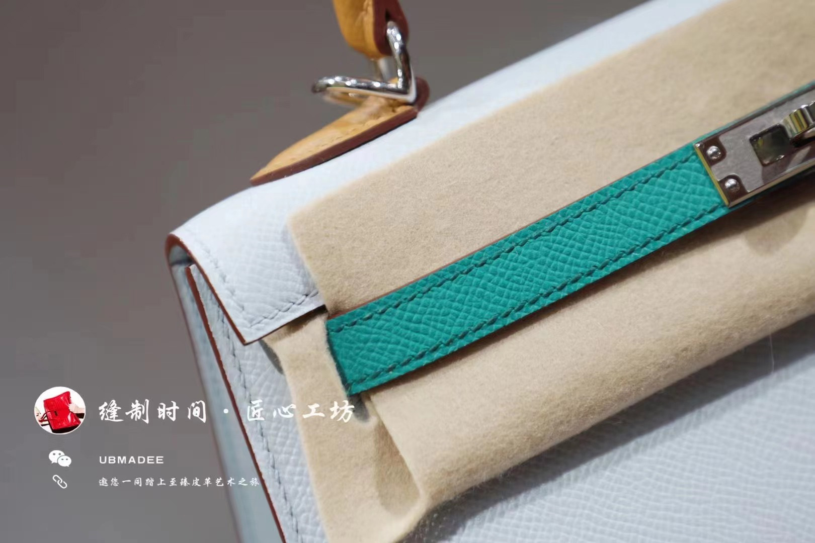 Hermes kelly 25 T0Bleu Brume+2S Sesame+O6 Vert Jade Epsom PHW