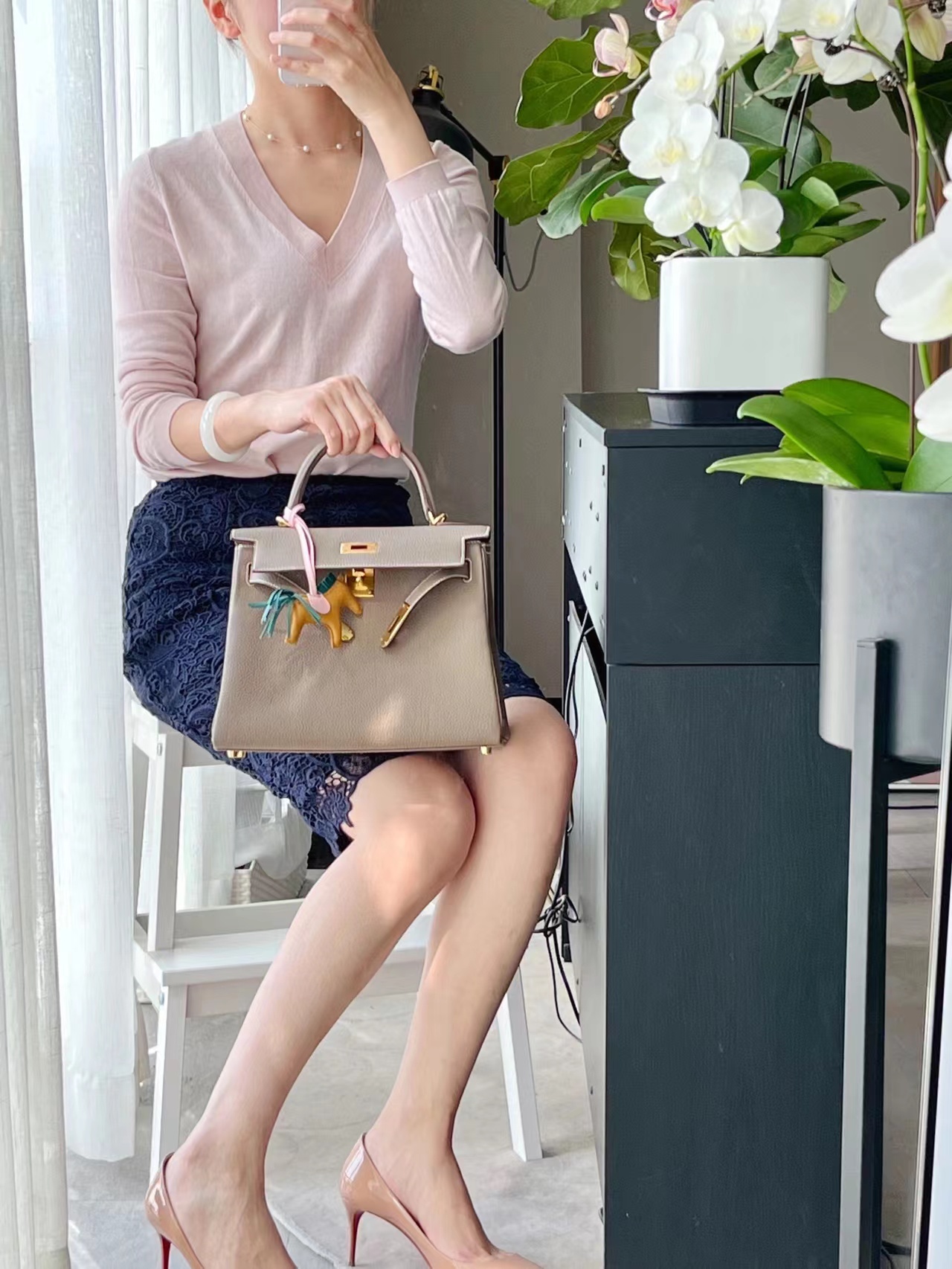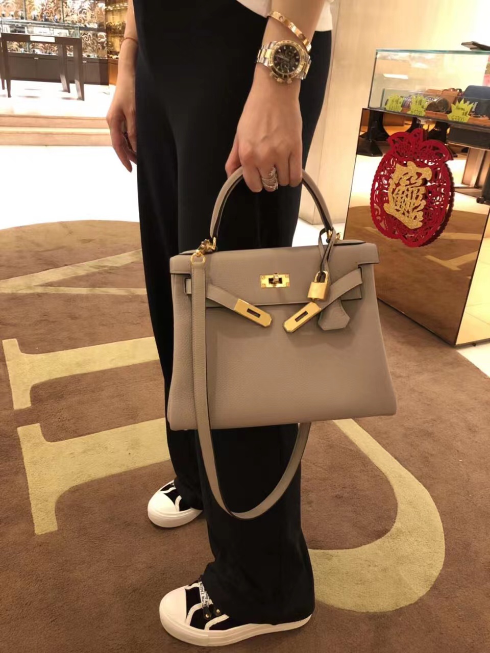 • Hermes Kelly 28cm TOGO ck81 gris tourterelle GHW