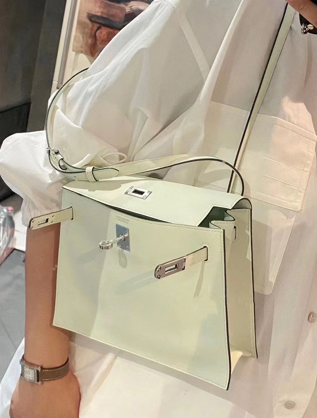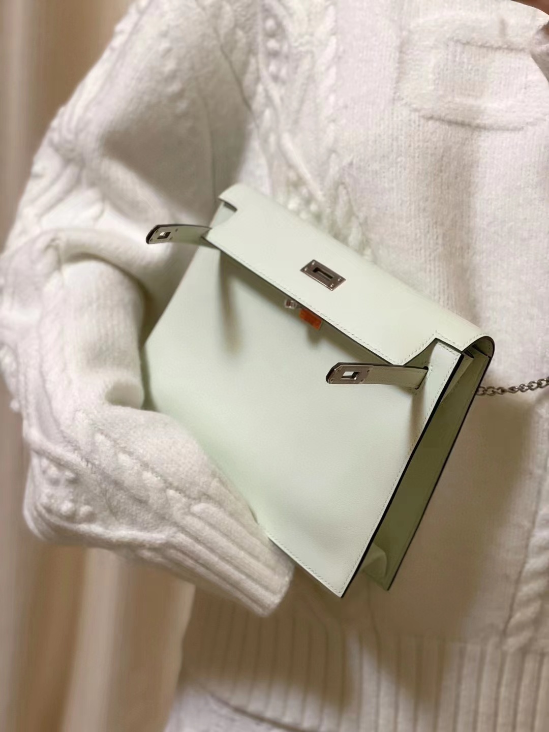 Hermes Kelly Danse 0S Shoulder Bag in Vert Fizz Swift leather with Palladium hardwareout of stock