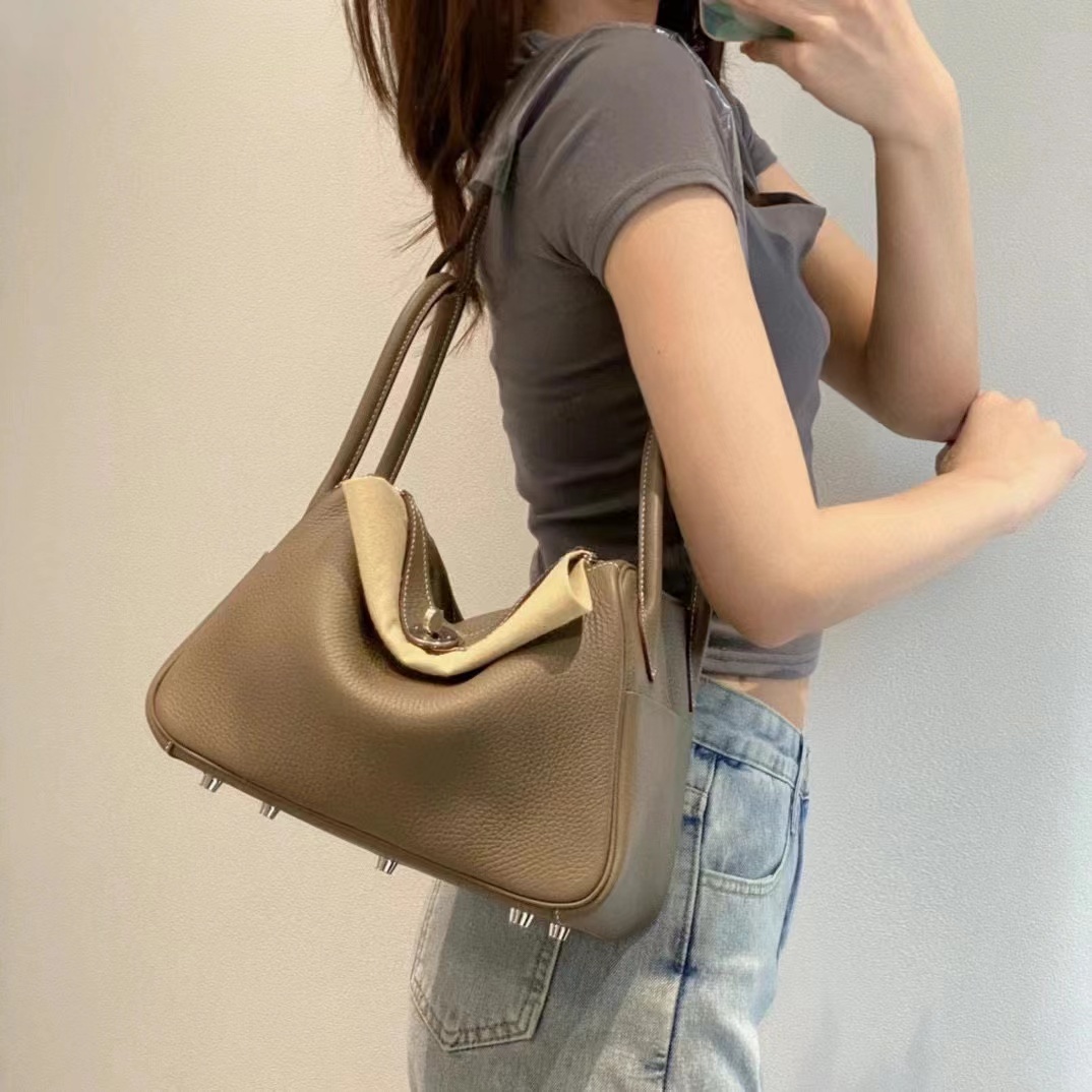 Hermes Lindy 26 Bag in Chocolat CK47 Clemence Leather Handstitched