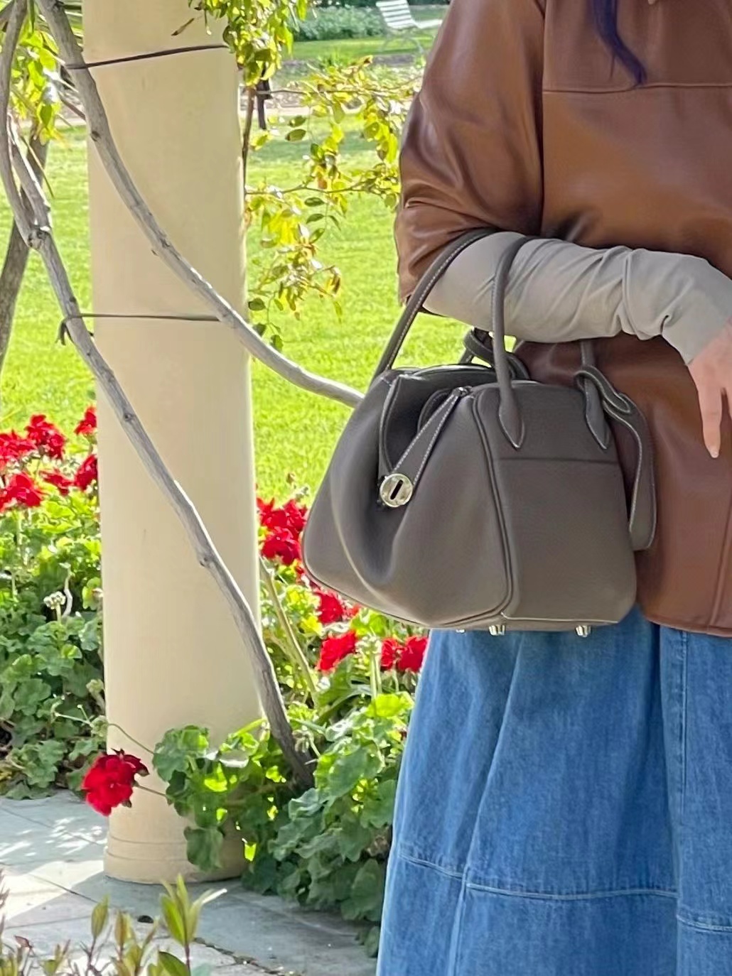 • Hermes Lindy 26 Bag in Chocolat CK47 Clemence Leather Handstitched
