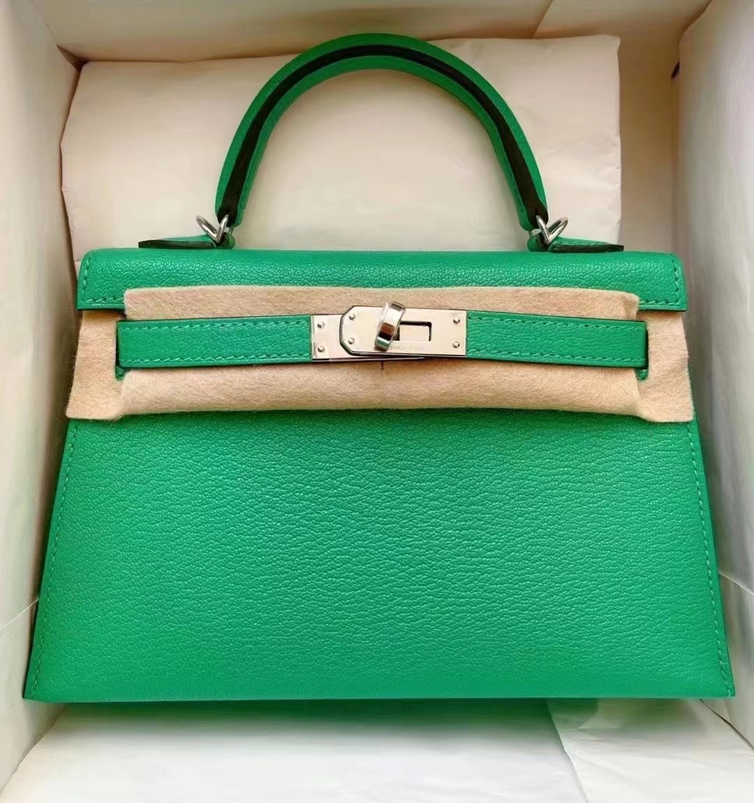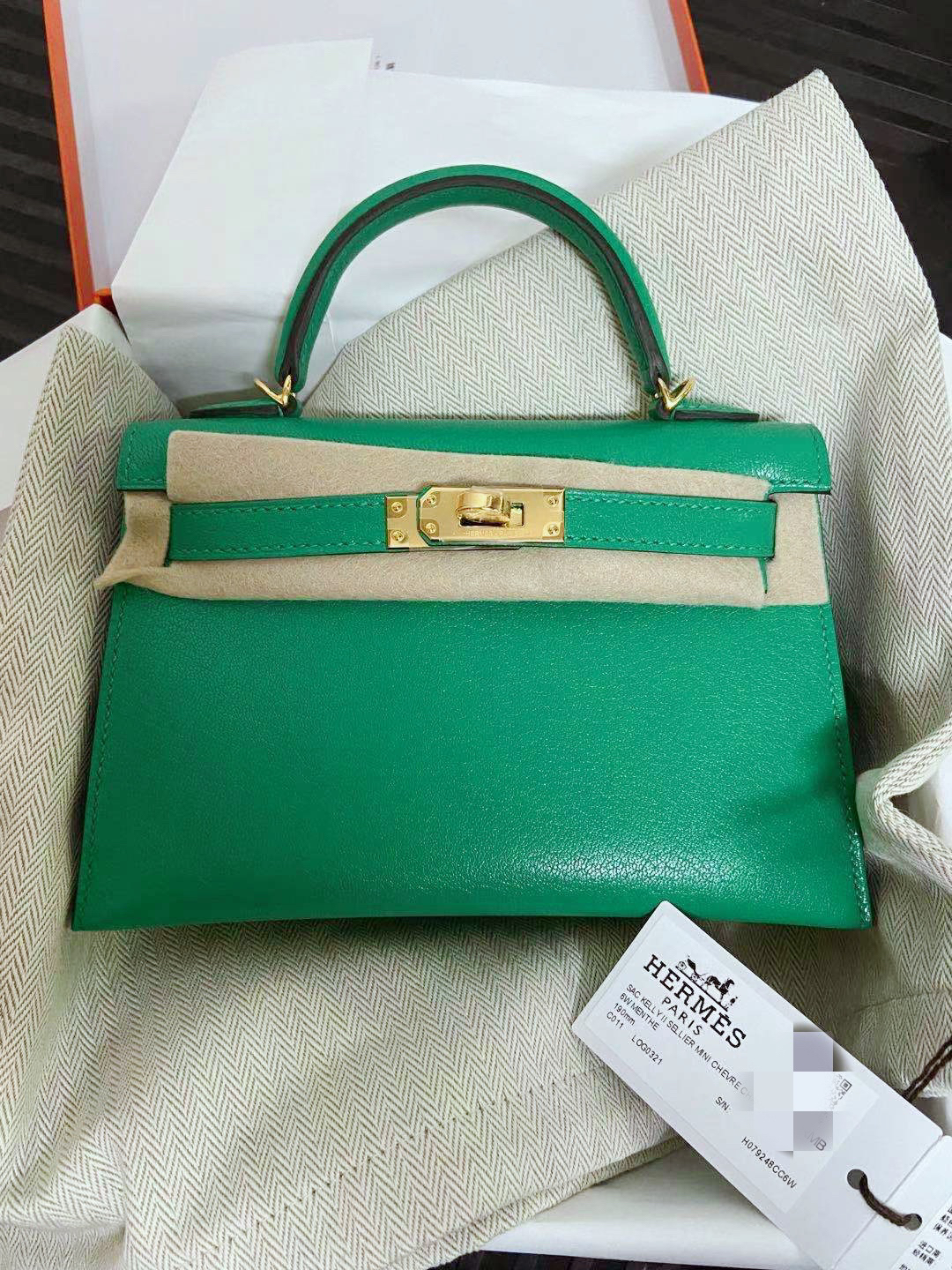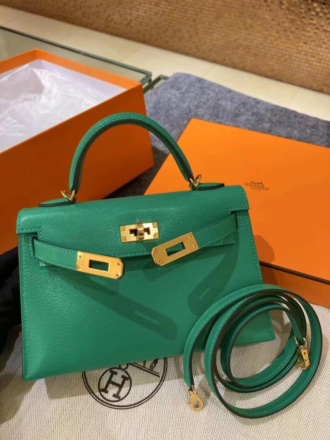 • Hermes mini kelly 2 19CM Chevre 6W menthe Metalgold buckle