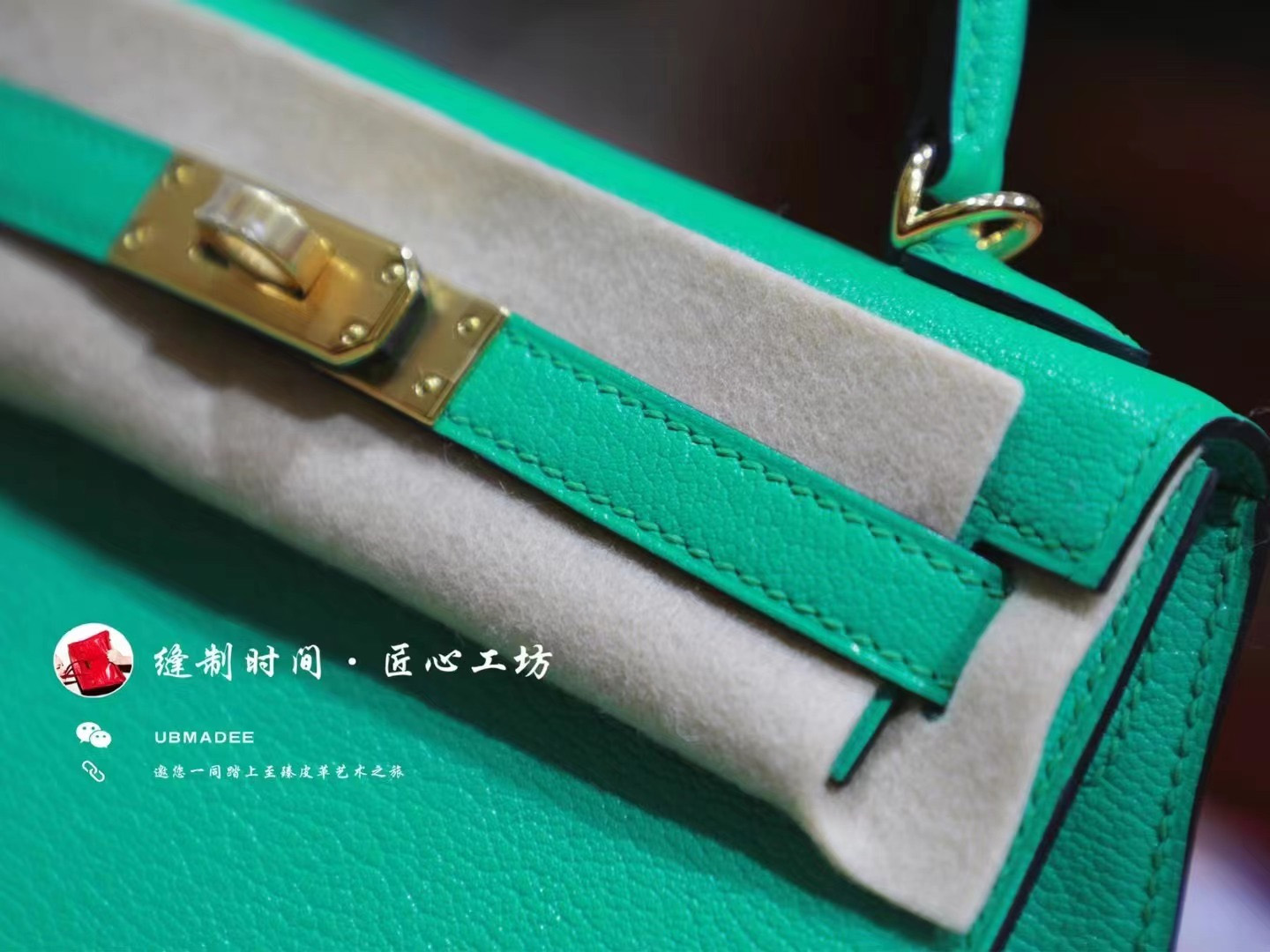 Hermes mini kelly 2 19CM Chevre 6W menthe Metalgold buckle