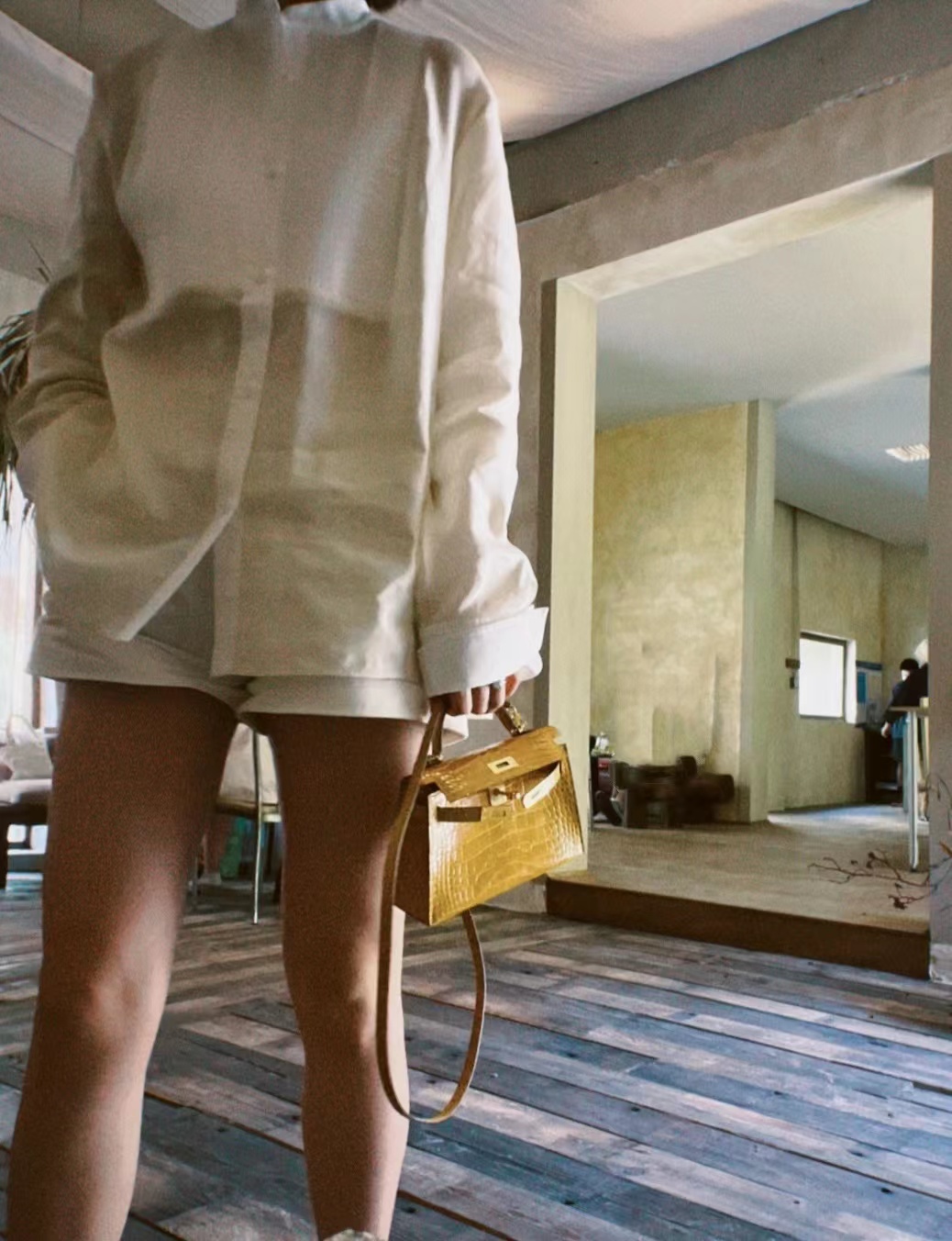 • Hermes Mini Kelly 20 II Bag in 9D Miel Scheherazade american catfish Croc gold buckle