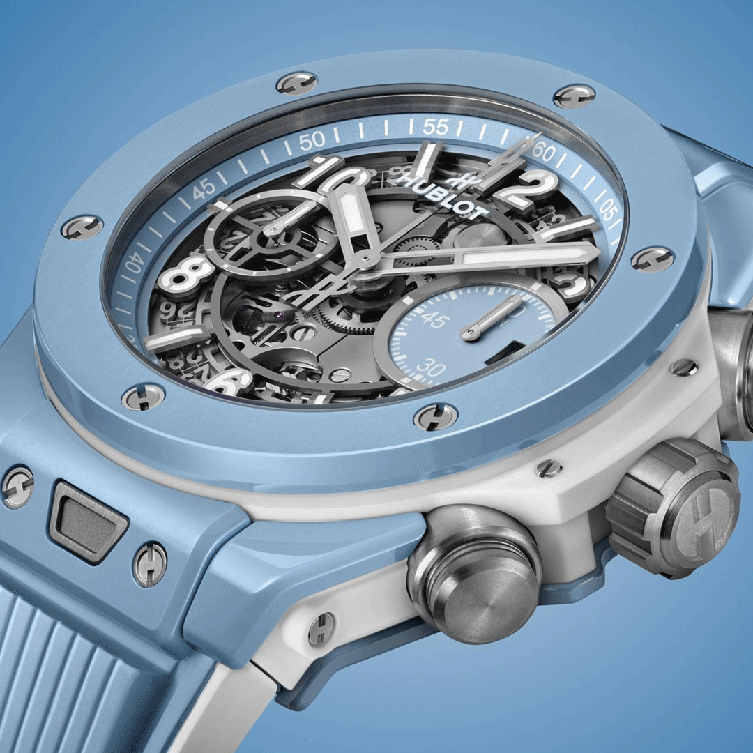 In 2019, Hublot created brightly coloured ceramic in a patented world first. Since then, the brand has had almost every Pantone colour at its disposal. The Big Bang Unico Sky Blue has turned this feat of innovation into your new go-to material.