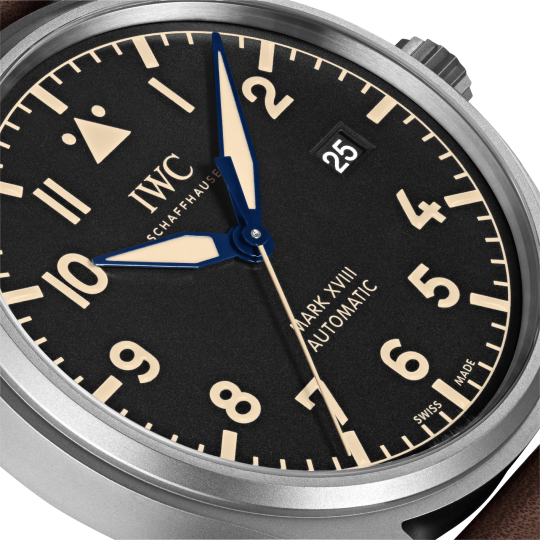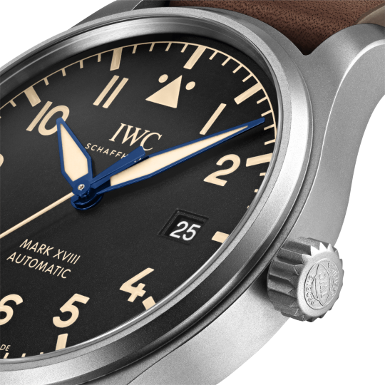 Titanium case, Automatic, self-winding, Diameter 40.0 mm, Black dial with luminescence, Brown calfskin strap, Strap width 20.0 mm.