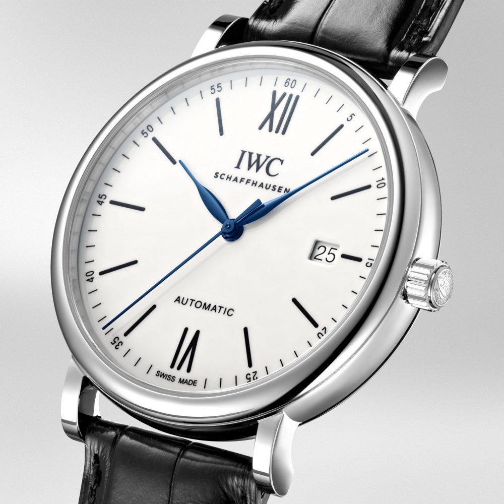 Portofino series. Luxury watch style. Watch label: Swiss Made. IWC Portofino Automatic "150th Anniversary" Blue Dial Men's Watch IW356519.