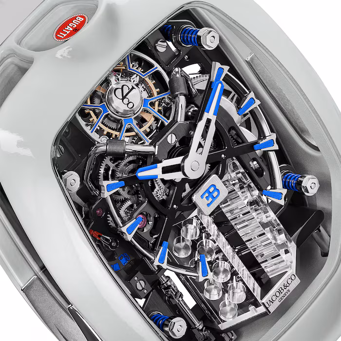 Dial: Rhodium-plated Dial with Blue Indices and Blue "EB" Logo