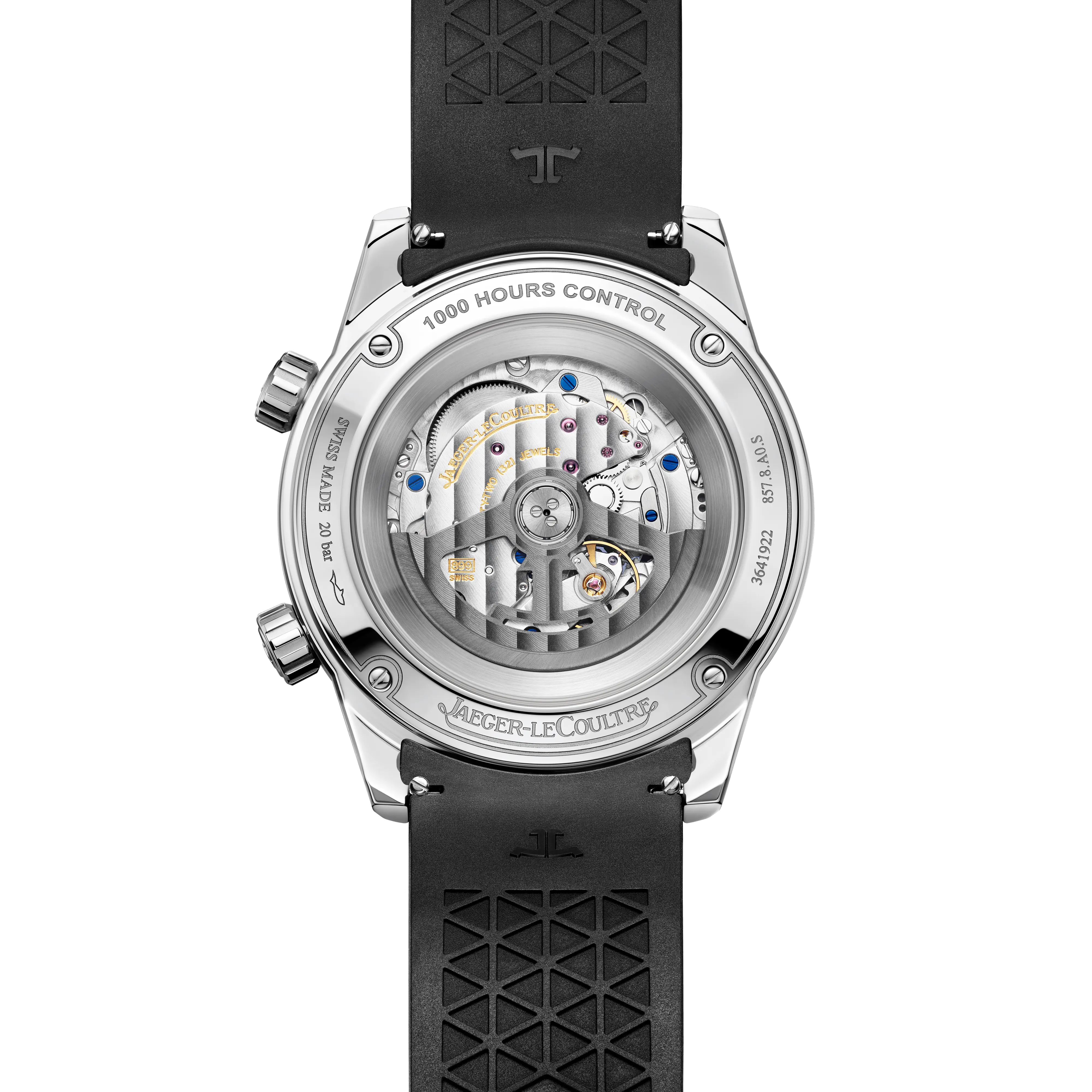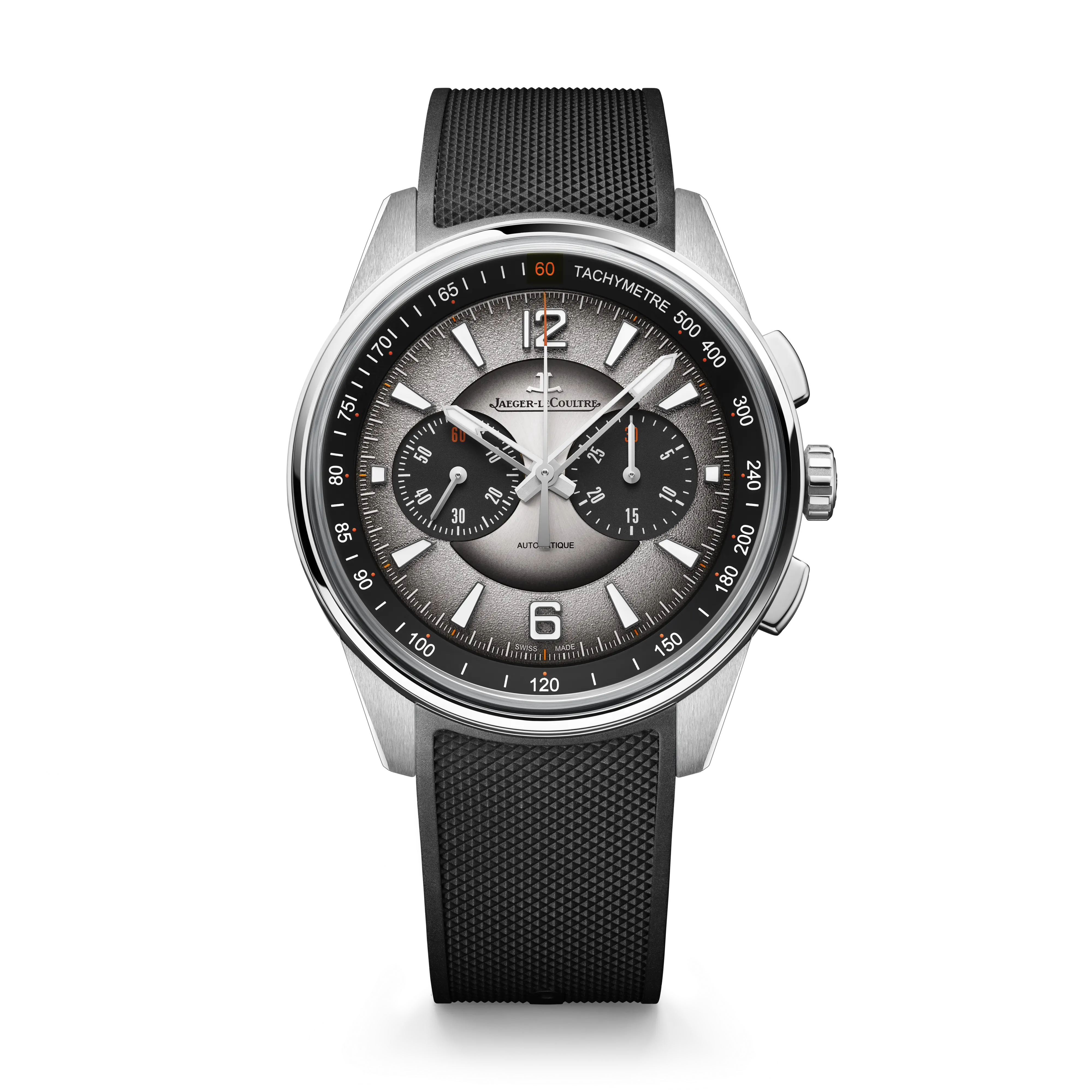 The Polaris Chronograph features a superb signature dial in lacquered grey. From the lightest to the darkest, the gradation of multiple nuances is achieved thanks to a process that consists of applying almost 40 layers of varnish followed by colored and transparent lacquer to the dial before the final step: polishing. In its 42 mm steel case, the dial has three levels of finishing: an internal opaline bezel, a grained circle for the hours and indexes, as well as a sunray-brushed center. Perfectly legible, the chronograph stands out for its iconic attributes: central second, tachymeter and 30-minute counter at 3 o’clock. Highlighting the Maison’s watchmaking expertise, its Jaeger-LeCoultre Calibre 761 features an integrated chronograph mechanism, equipped with a column-wheel with vertical clutch. The Polaris Chronograph promises 65 hours of power reserve - very welcome for a watch built for adventure. Graced with sporty and functional elegance, it comes with a beige fabric strap and another in black rubber.