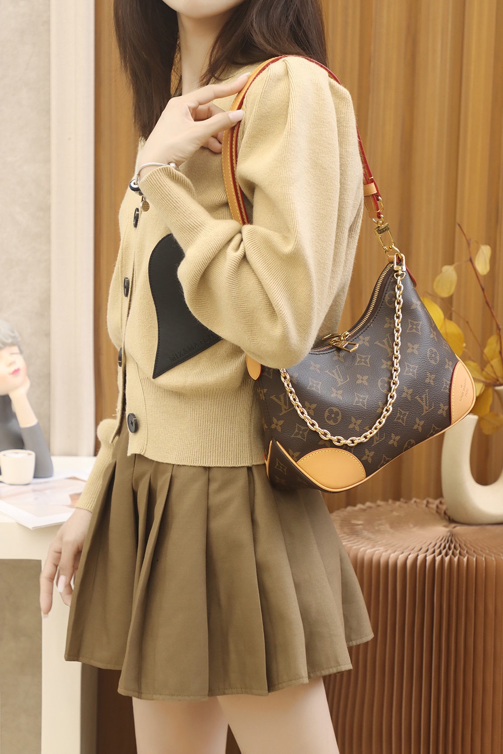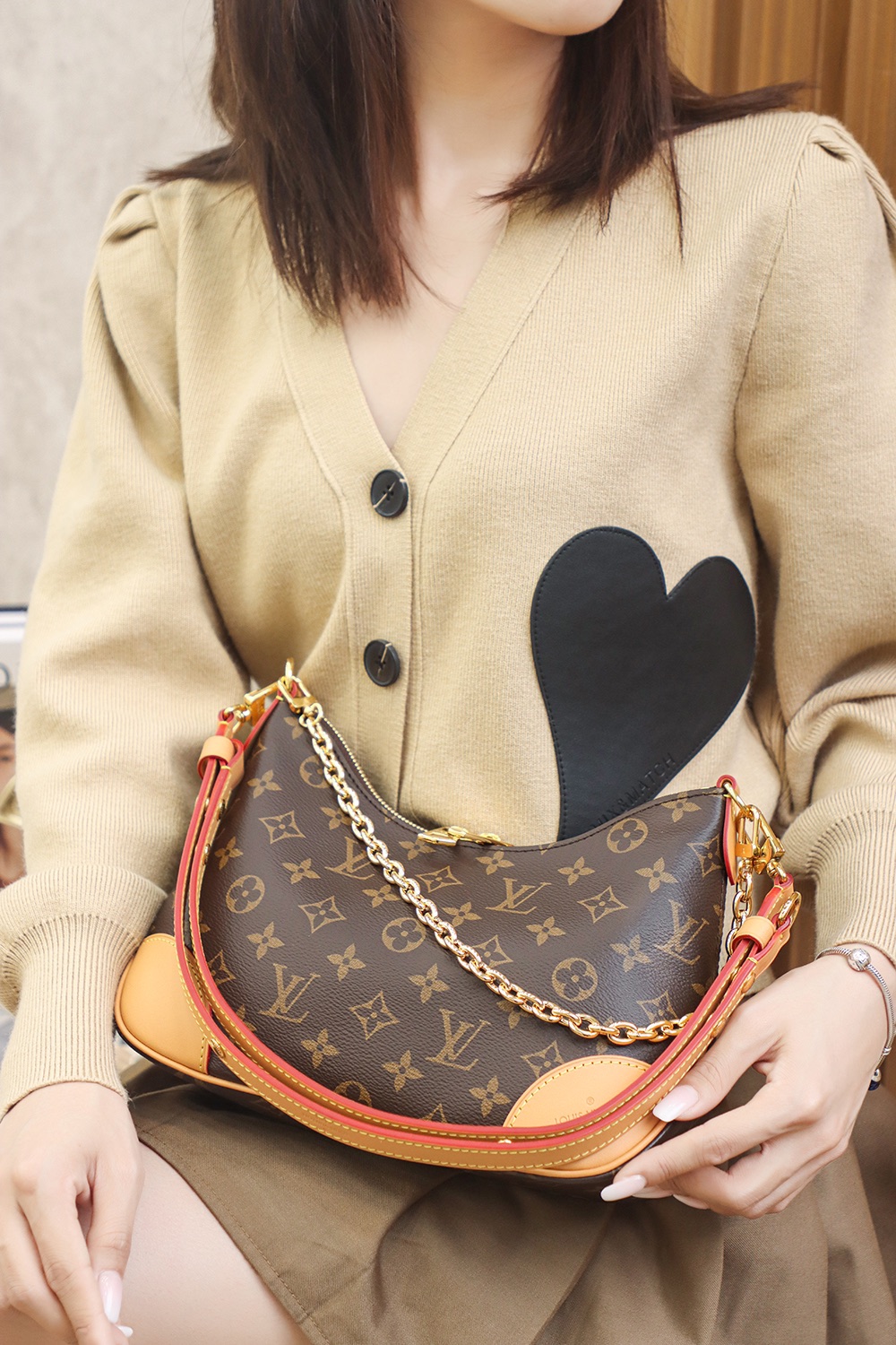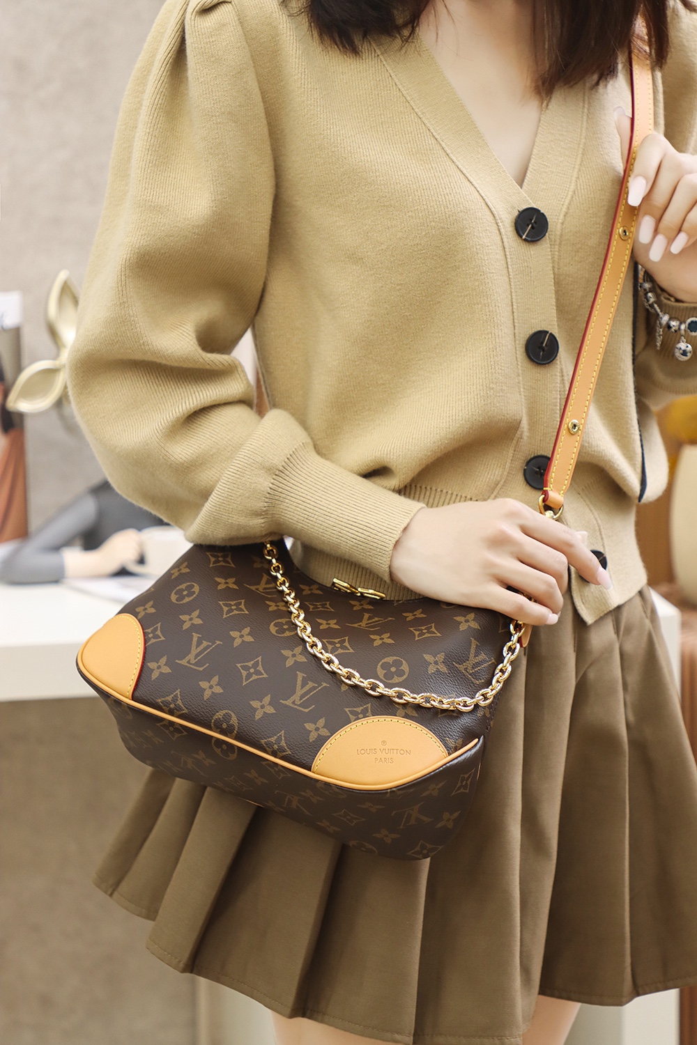 Louis Vuitton Boulogne Nm M45832 Rfid Tags Shoulder Bag Chain Monogram Brown Gol